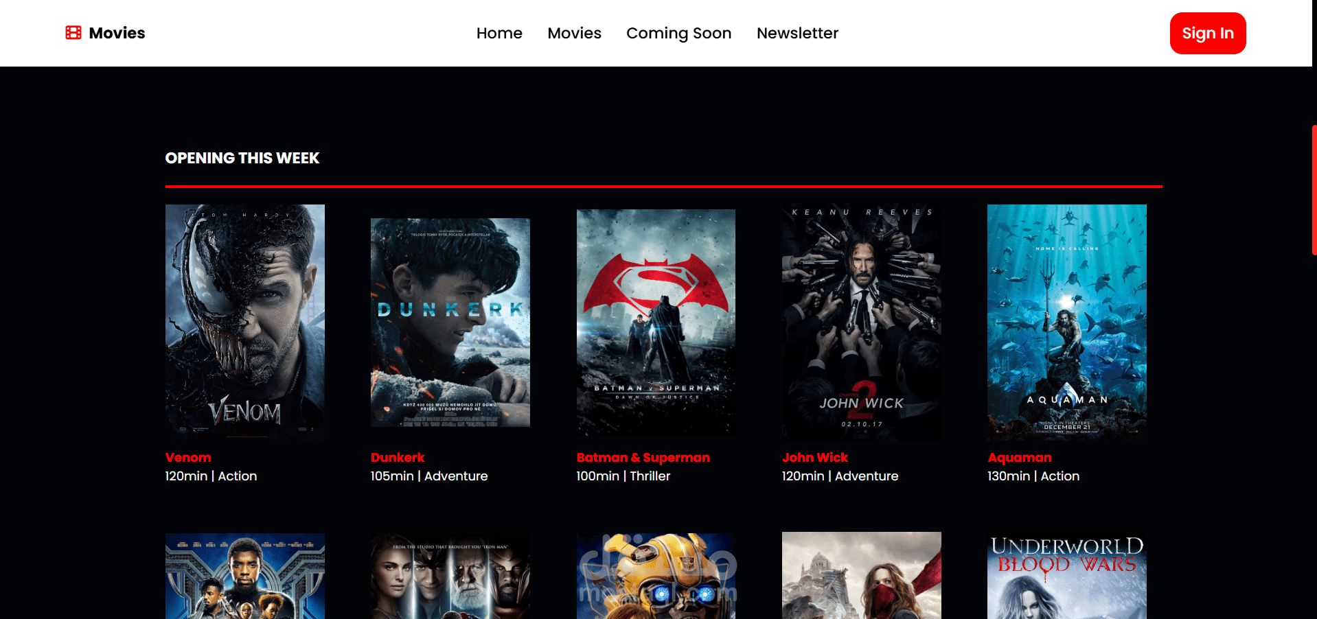 قمت بتطوير تطبيق ويب عصري يسمح للمستخدمين بتصفح الأفلام والبحث عنها بسهولة من خلال واجهة بسيطة ومتجاوبة.