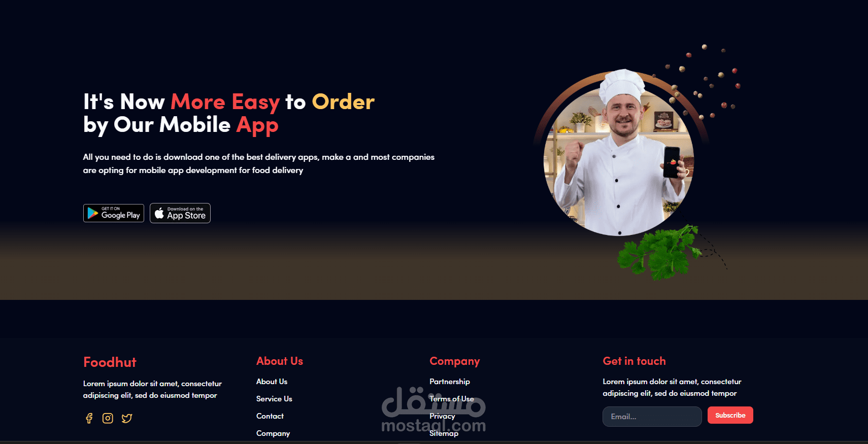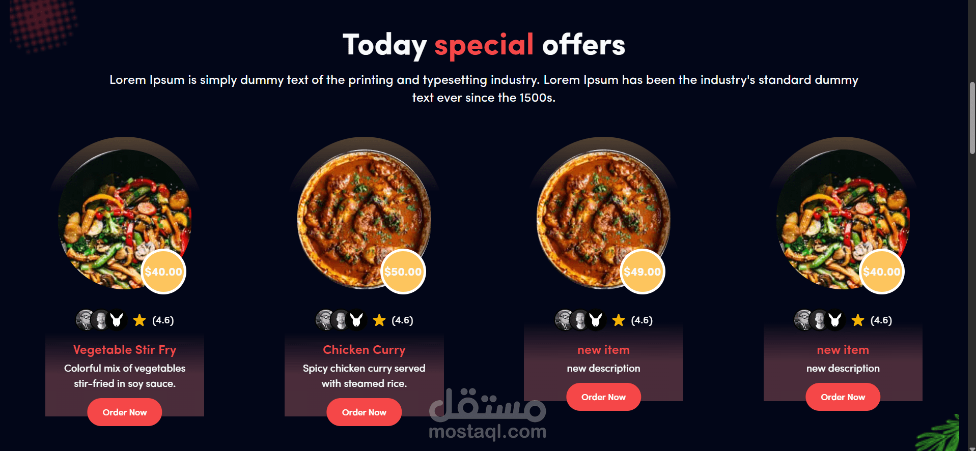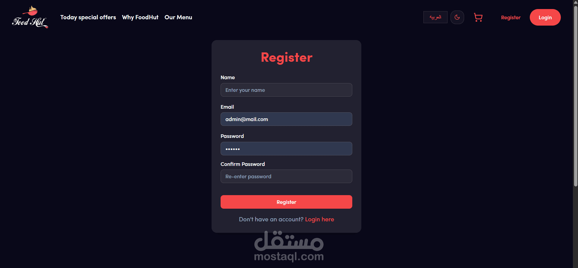 موقع للعملاء: استعراض الأطعمة، إضافة للسلة، وطلب بسهولة.