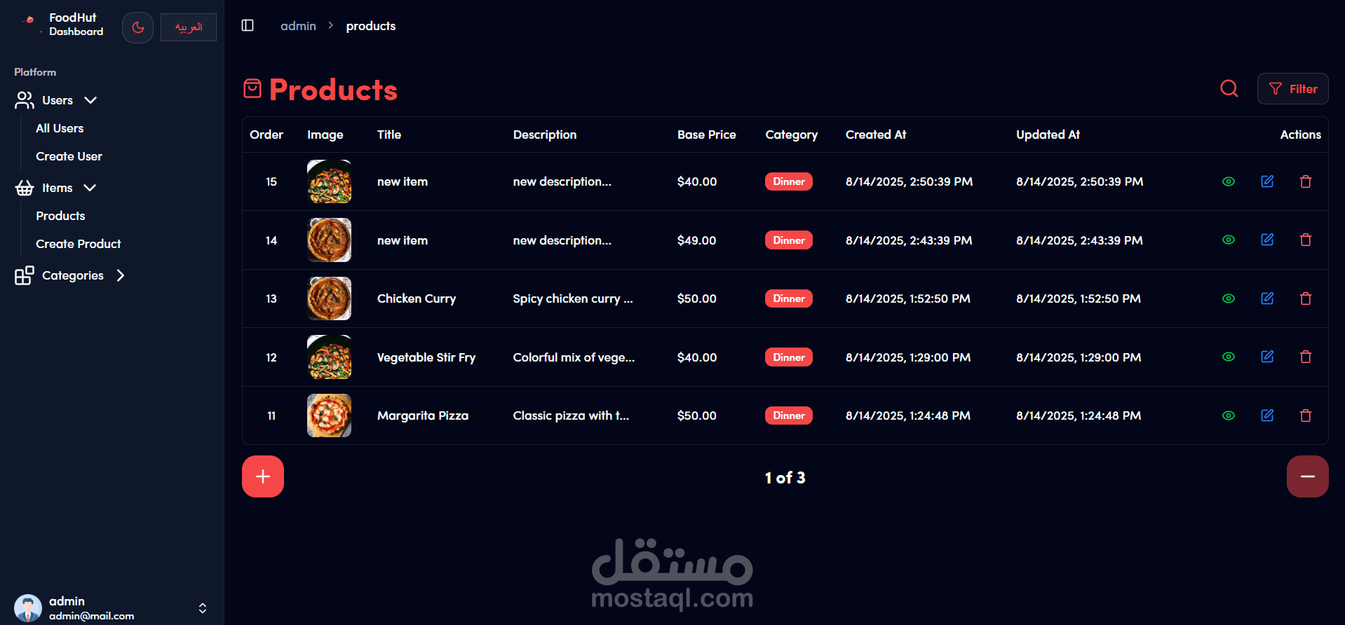 لوحة تحكم للإدارة (Dashboard): إدارة كاملة للمنتجات، التصنيفات، والمستخدمين مع CRUD كامل.
