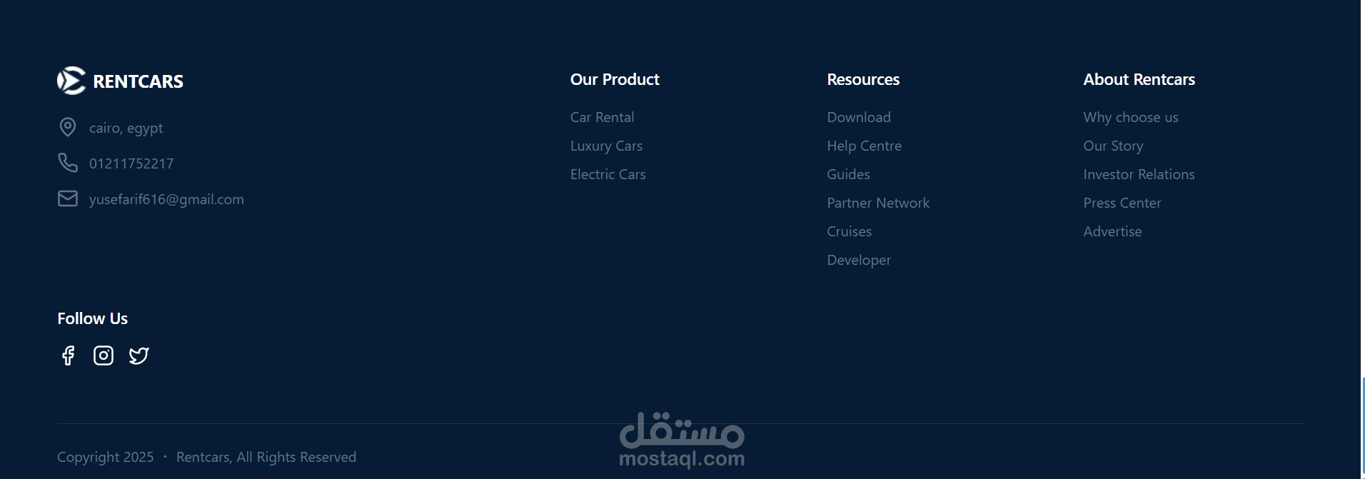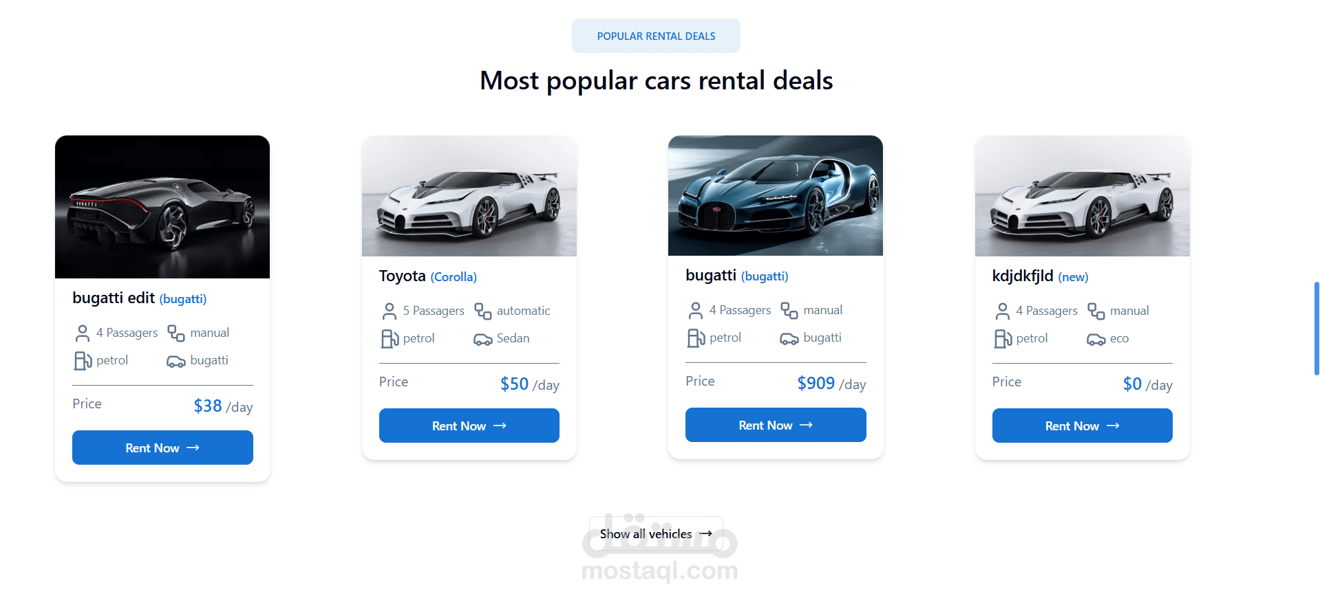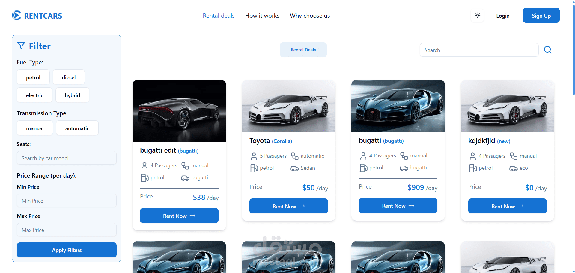 طورت منصة كاملة (Full Stack) لإيجار السيارات، تشمل موقع عام + لوحات تحكم متعددة (مستخدم – مالك – أدمن) مع نظام حجز وإدارة مرن.