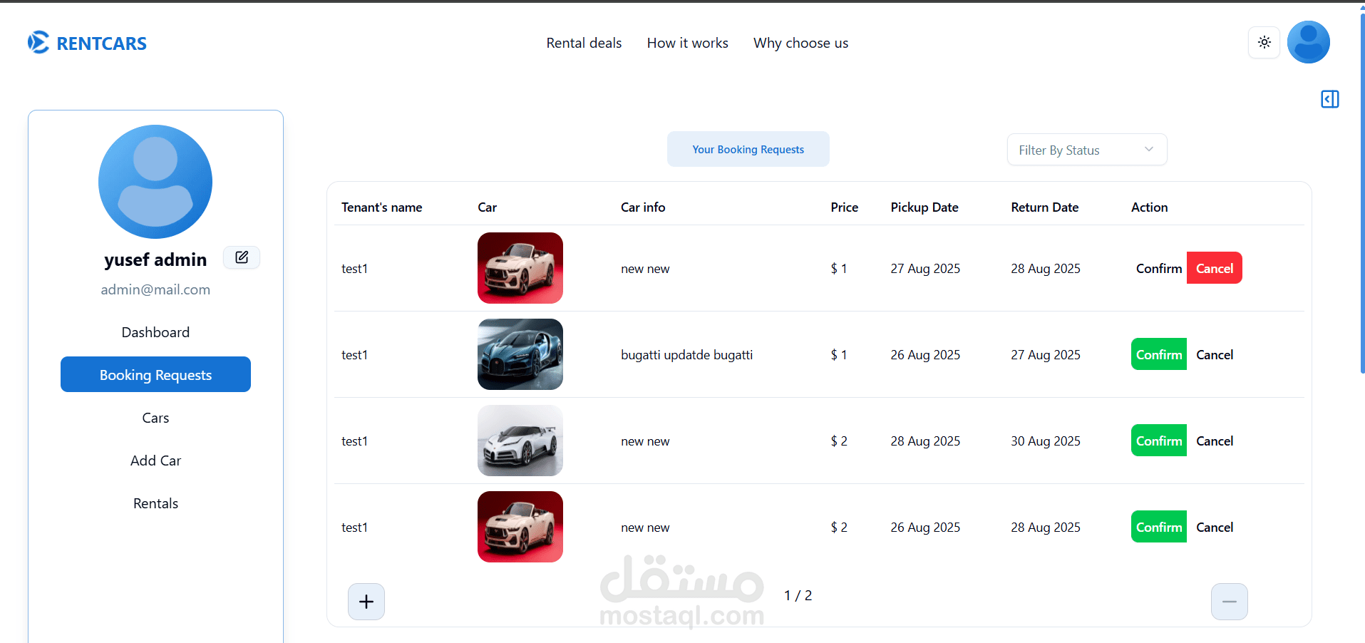 المشروع يوضح قدرتي على تنفيذ منصات معقدة متعددة الأدوار تناسب شركات التأجير، الأسواق الإلكترونية، أو أي خدمة تعتمد على مستخدمين بأدوار وصلاحيات مختلفة.