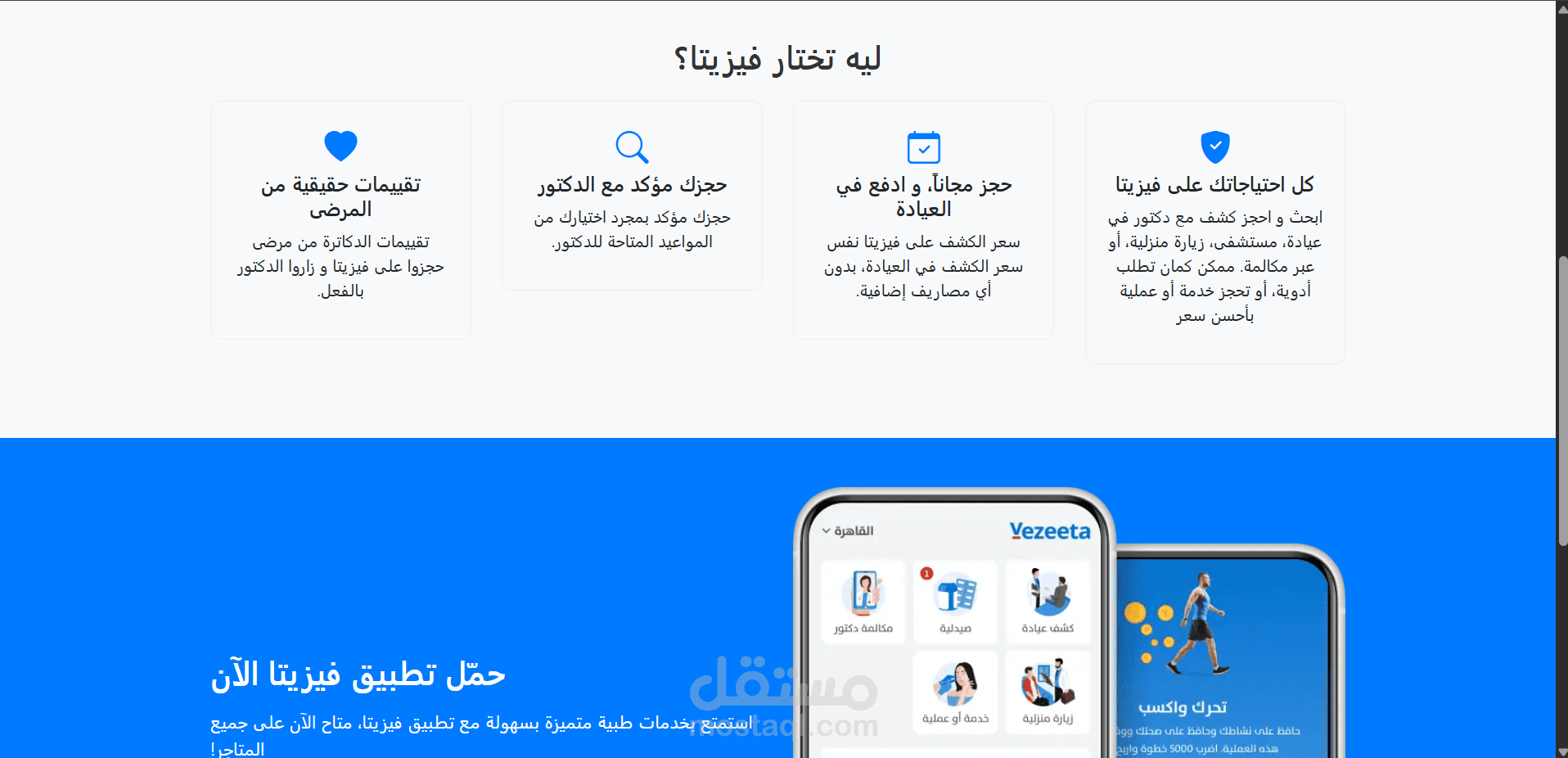 موقع حجز مواعيد طبية شبيه بفيزيتا يتيح للمرضى البحث عن الأطباء حسب التخصص أو الموقع أو التقييم، مع إمكانية حجز المواعيد وإدارتها بسهولة. يحتوي الموقع على لوحة تحكم خاصة بالأطباء لإدارة المواعيد والبيانات، ولوحة تحكم للإدارة لمتابعة النظام بالكامل، مما يوفر تجربة متكاملة واحترافية للمرضى والأطباء.