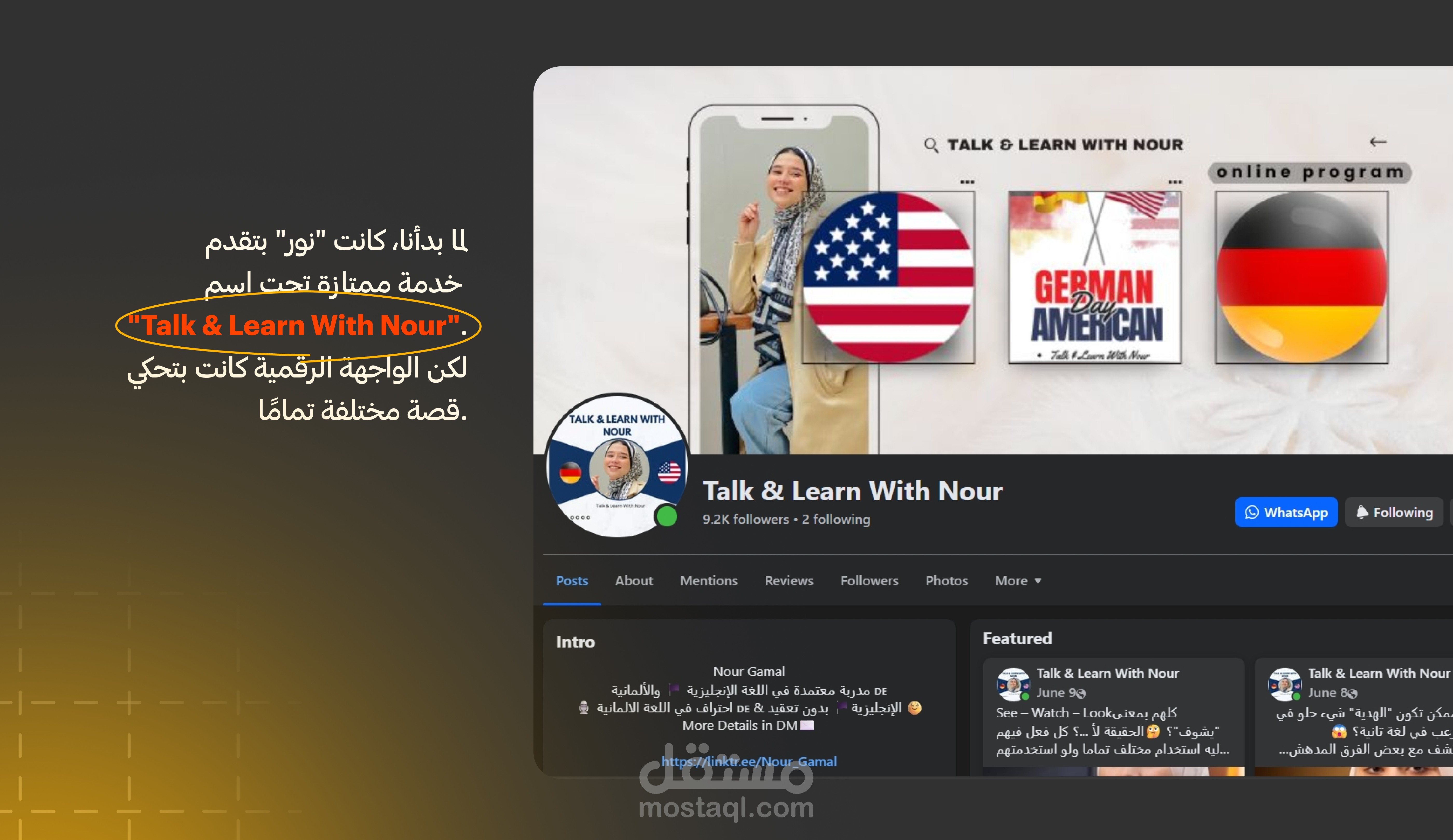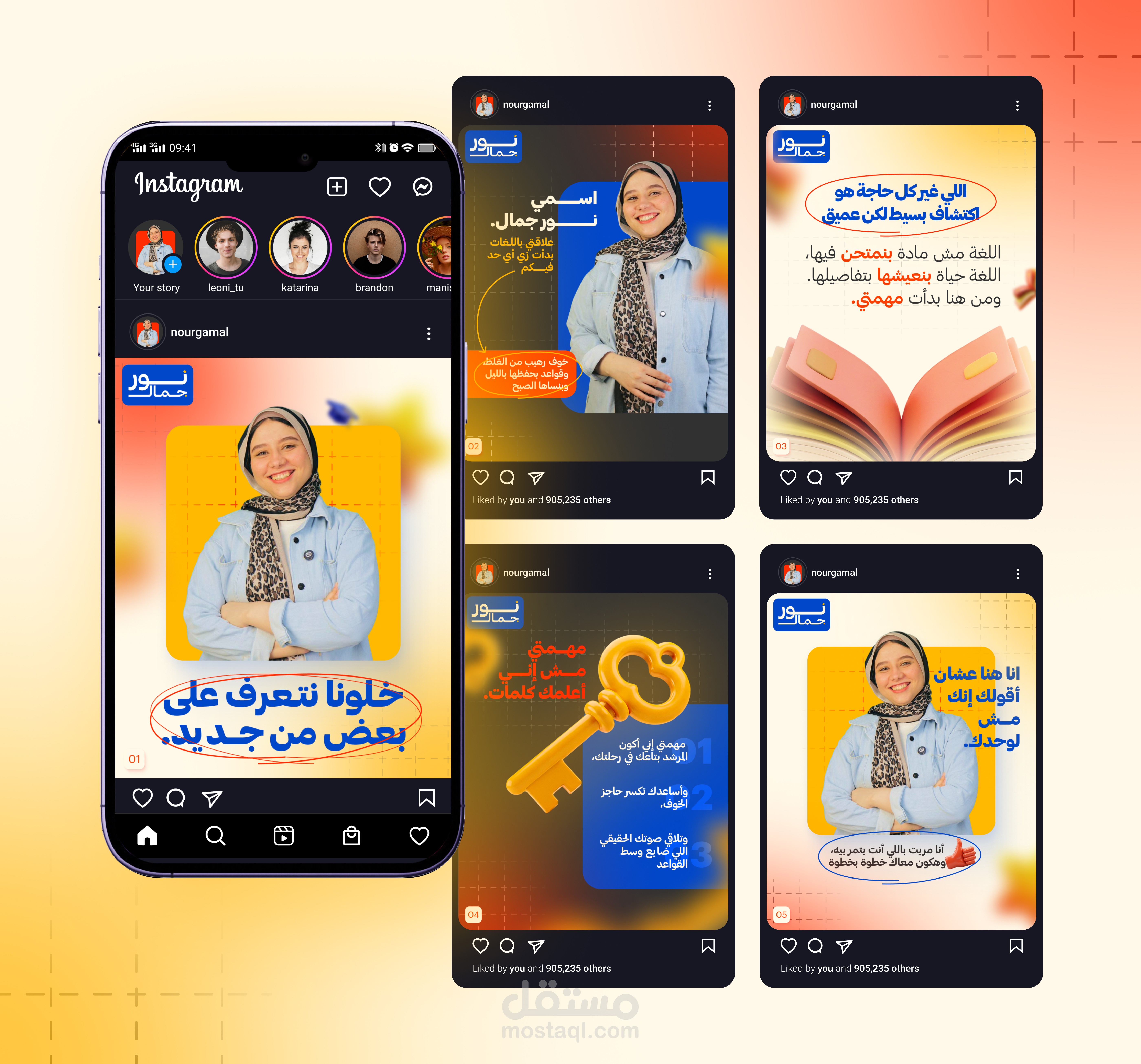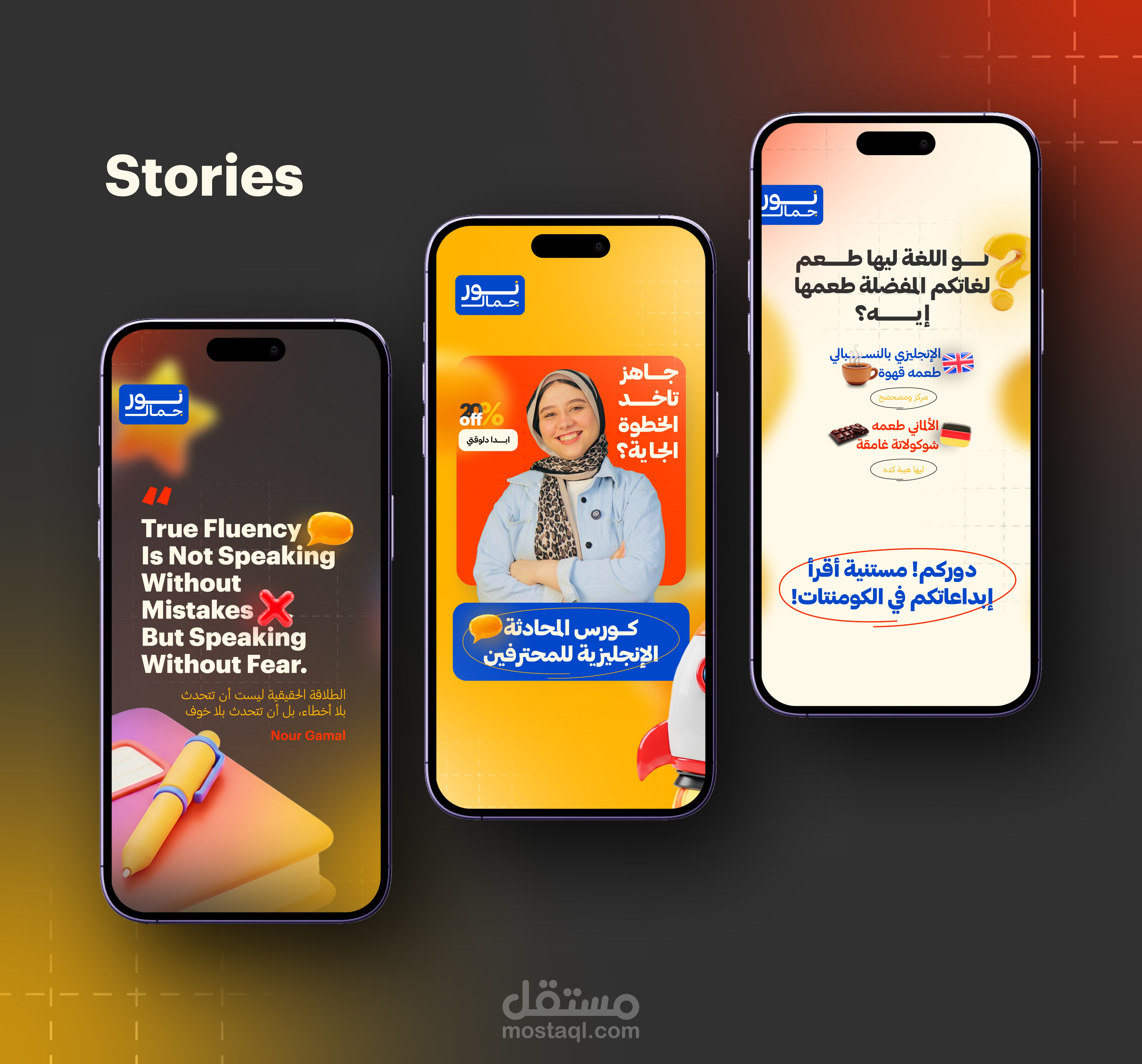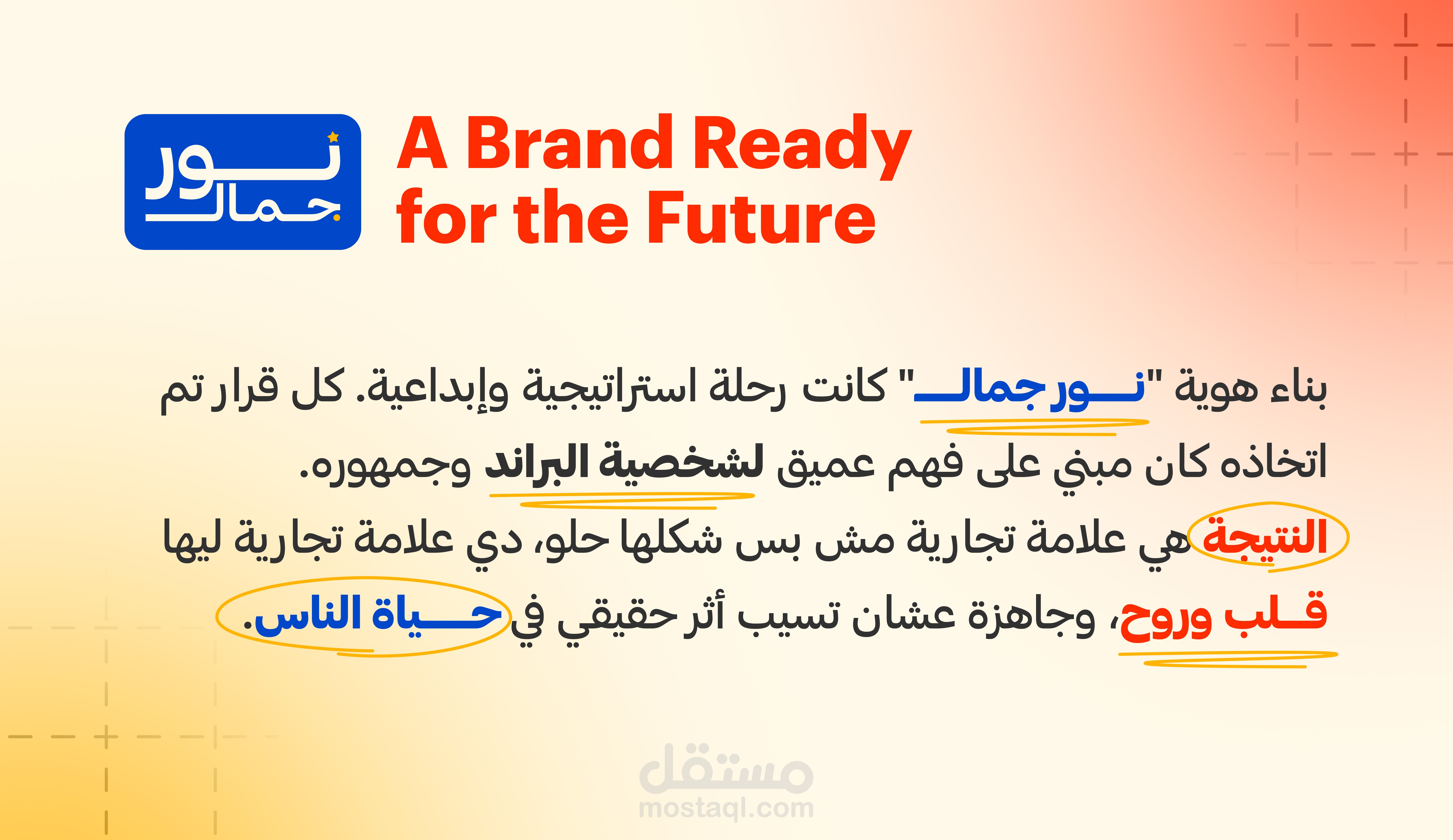 النتيجة كانت تحول كامل من "صفحة بتقدم خدمة" لـ "براند ملهم ليه قصة ومجتمع". الهوية الجديدة مش بس زودت ثقة جمهور نور الحالي، دي كمان بقت أداة جذب قوية لعملاء جدد بيقدروا الاحترافية والجودة.