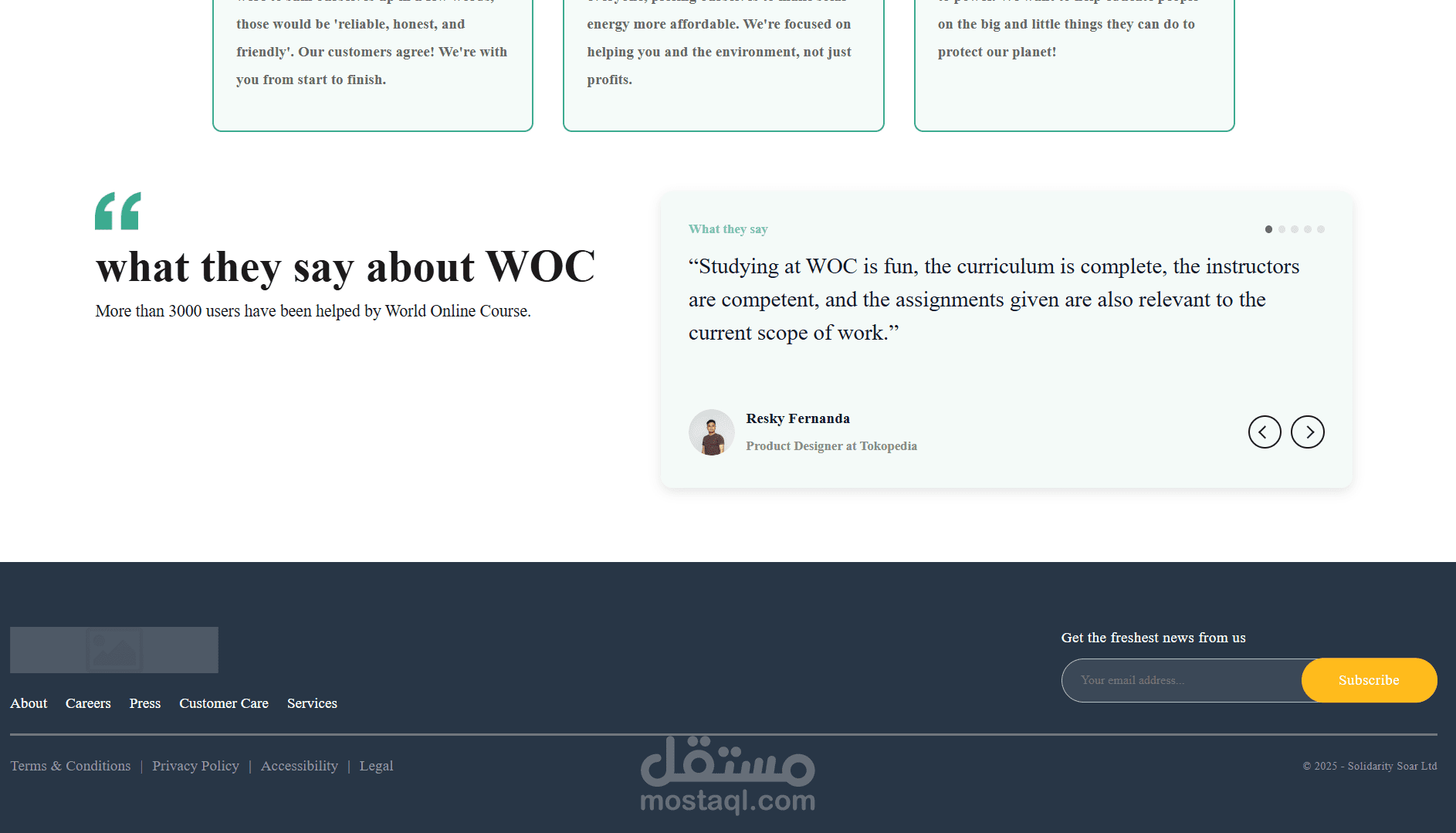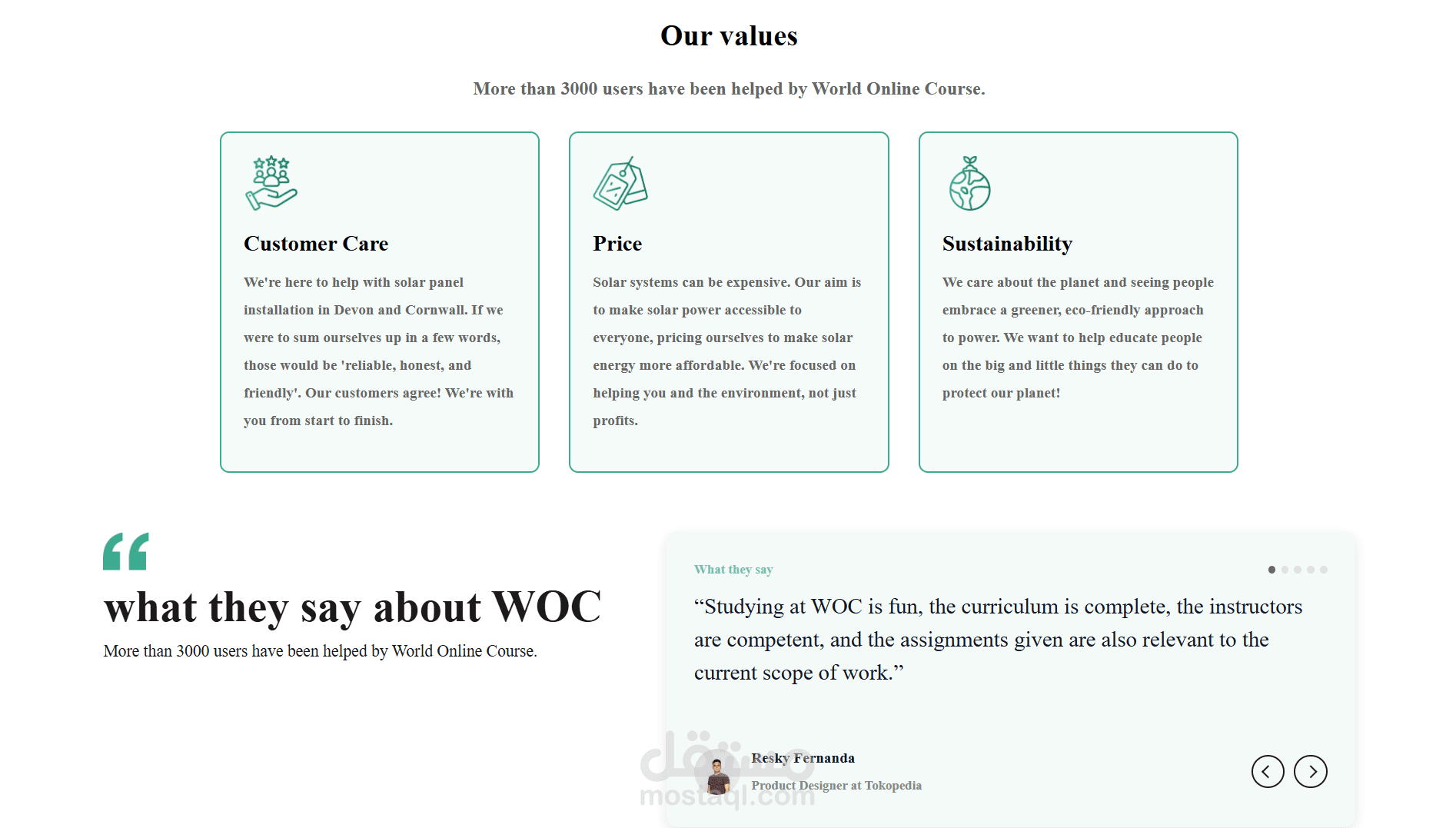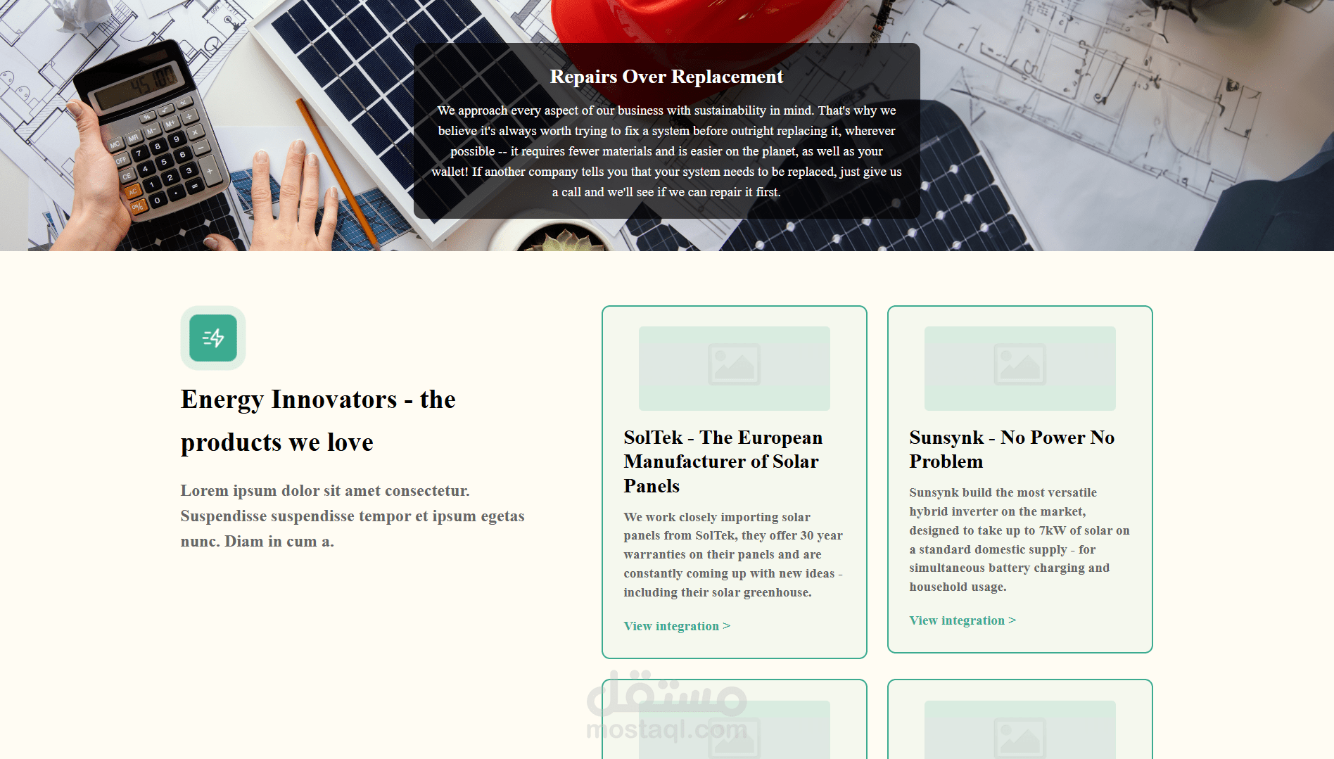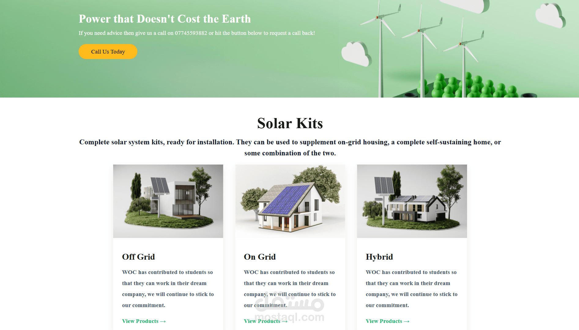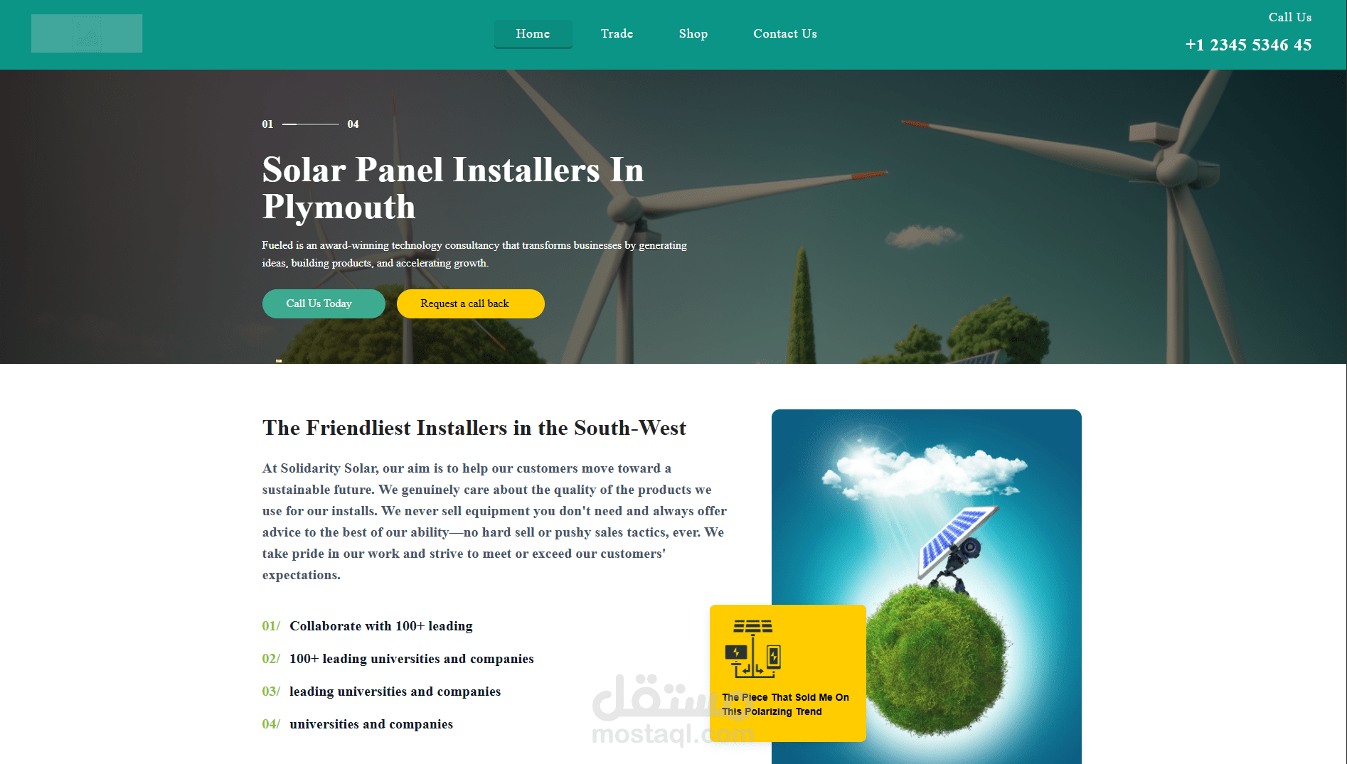 landing page لشركة Solidarity Solar المتخصصة في تركيب الألواح الشمسية بالجنوب الغربي.