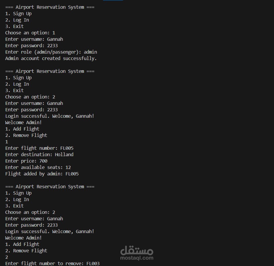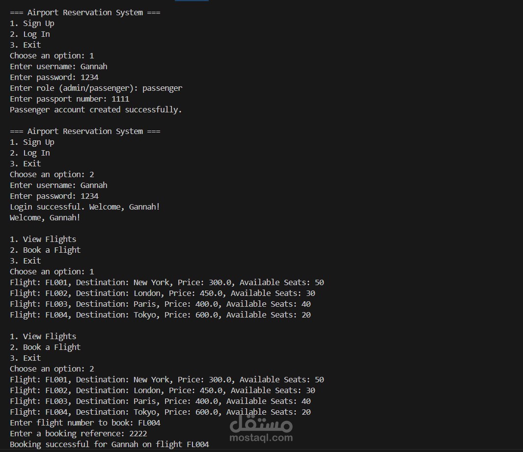 قمت بالمشاركة في تطوير نظام إدارة مطار مطوَّر بلغة Java، بيحاكي الوظائف الأساسية لإدارة الرحلات الجوية. النظام يعمل بواجهة نصية (Console-based) ويوفر تفاعل سهل لكل من المسؤول (Admin) والركاب (Passengers).