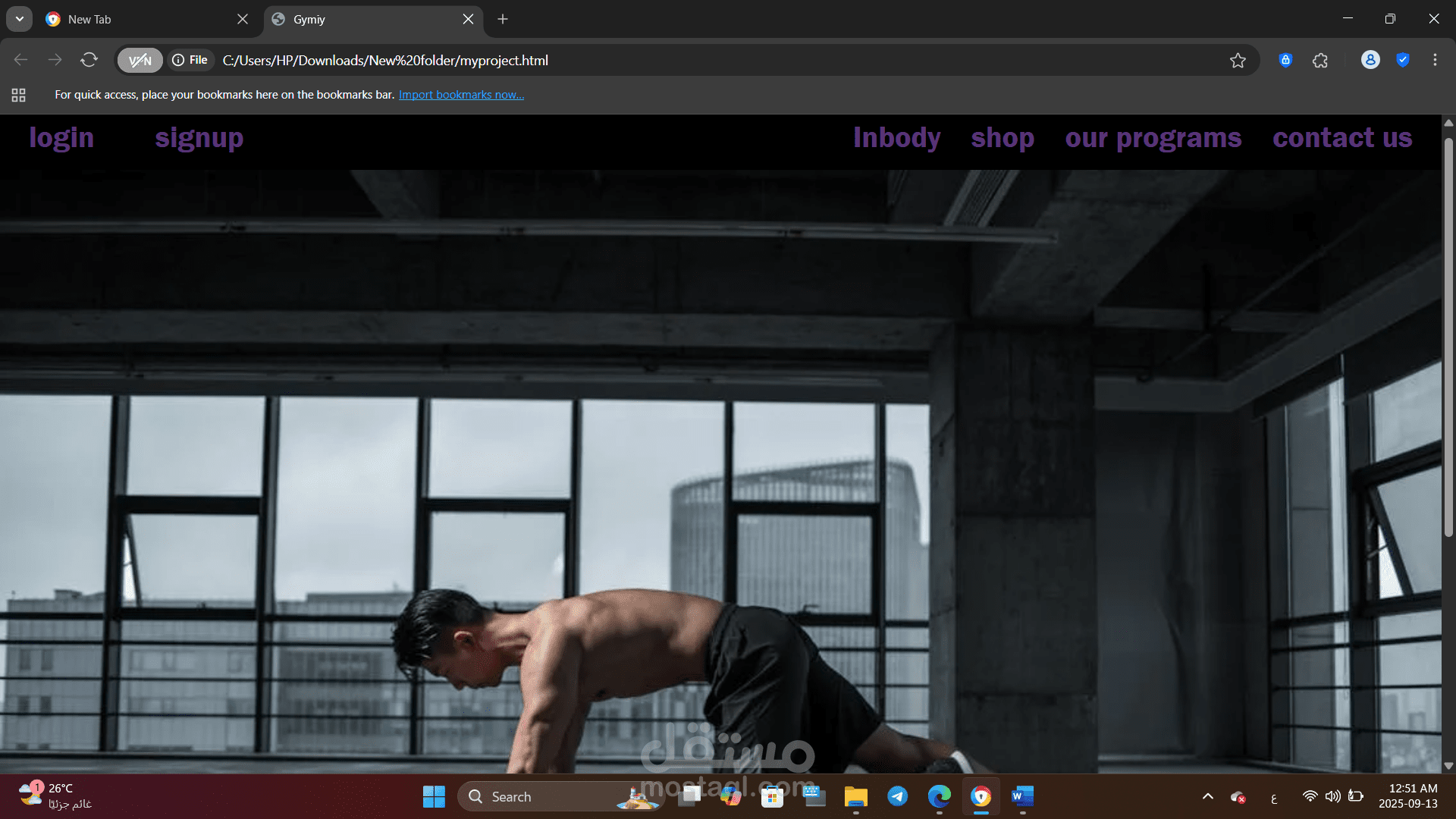 ويب تصميم وتطوير موقع ويب حديث واحترافي خاص بجيم باستخدام HTML, CSS, JavaScript وReact.