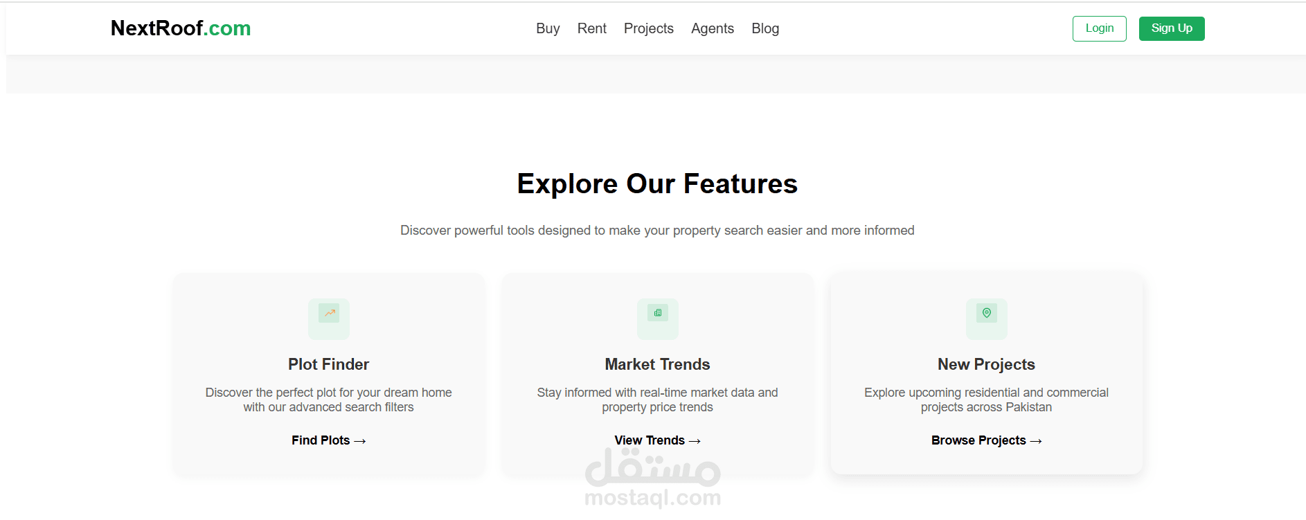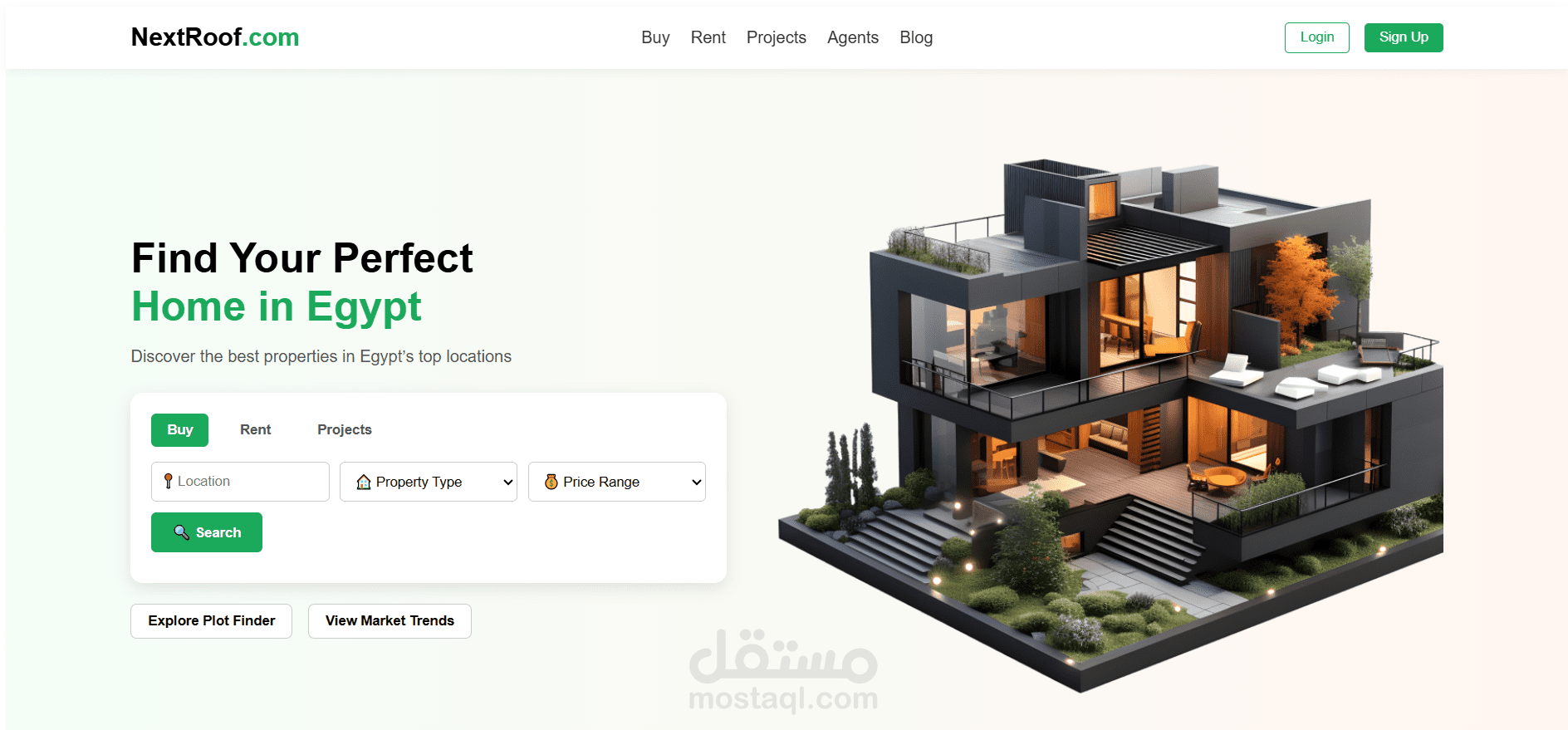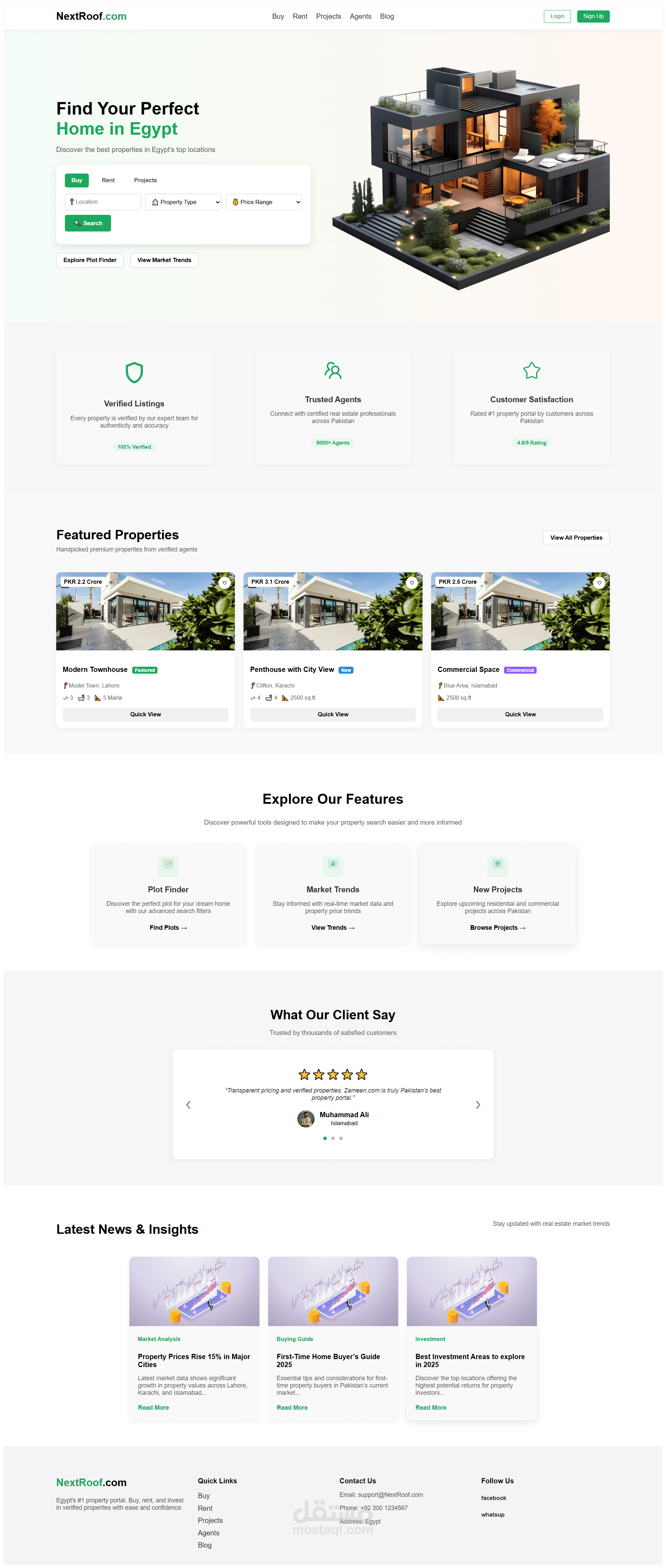 موقع NextRoof هو منصة عقارية حديثة ومتجاوبة تم تصميمها لتسهيل وتسريع عملية البحث عن العقارات بطريقة ذكية وسلسة. يركز المشروع على تقديم واجهة استخدام نظيفة، وسهولة في التصفح، وتنظيم واضح لجميع أنواع العقارات.