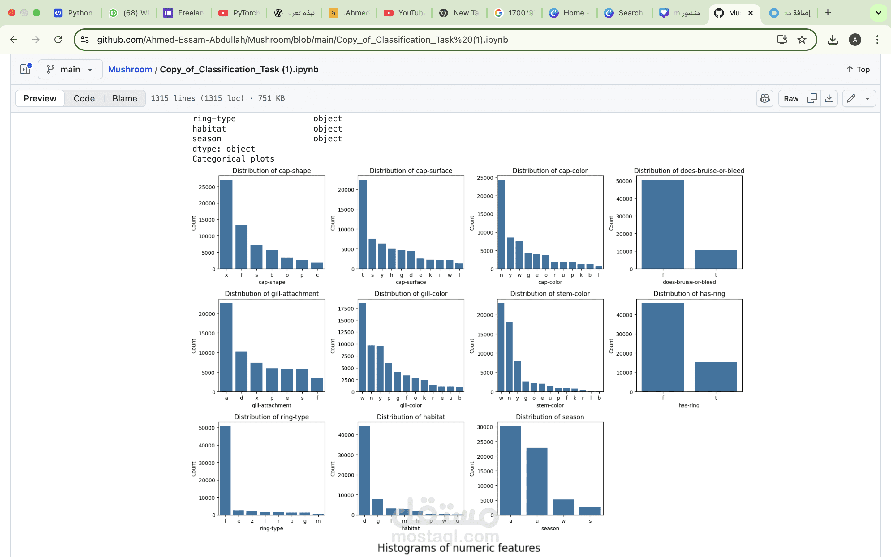 قمت ببناء نموذج ذكاء اصطناعي باستخدام Scikit-learn لتصنيف الفطر (Mushroom Classification) والتفريق بين الفطر الصالح للأكل والفطر السام.