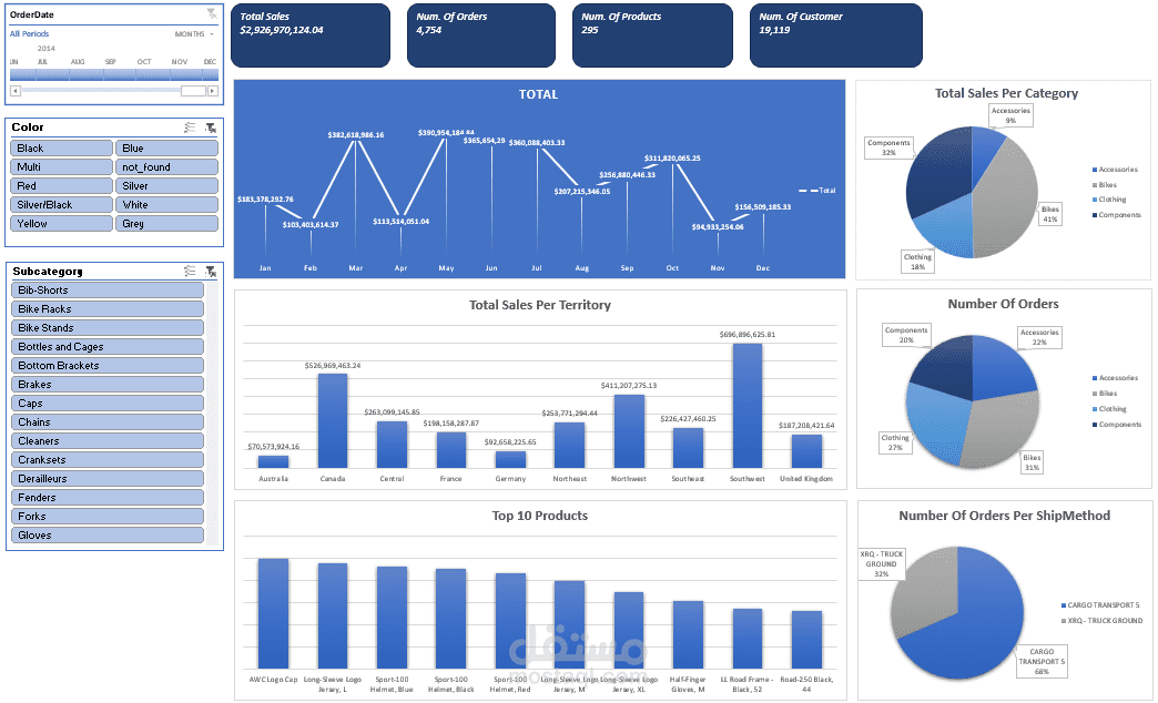 تحليل شامل باستخدام أدوات Excel (Pivot Tables, Power Query, Formulas).