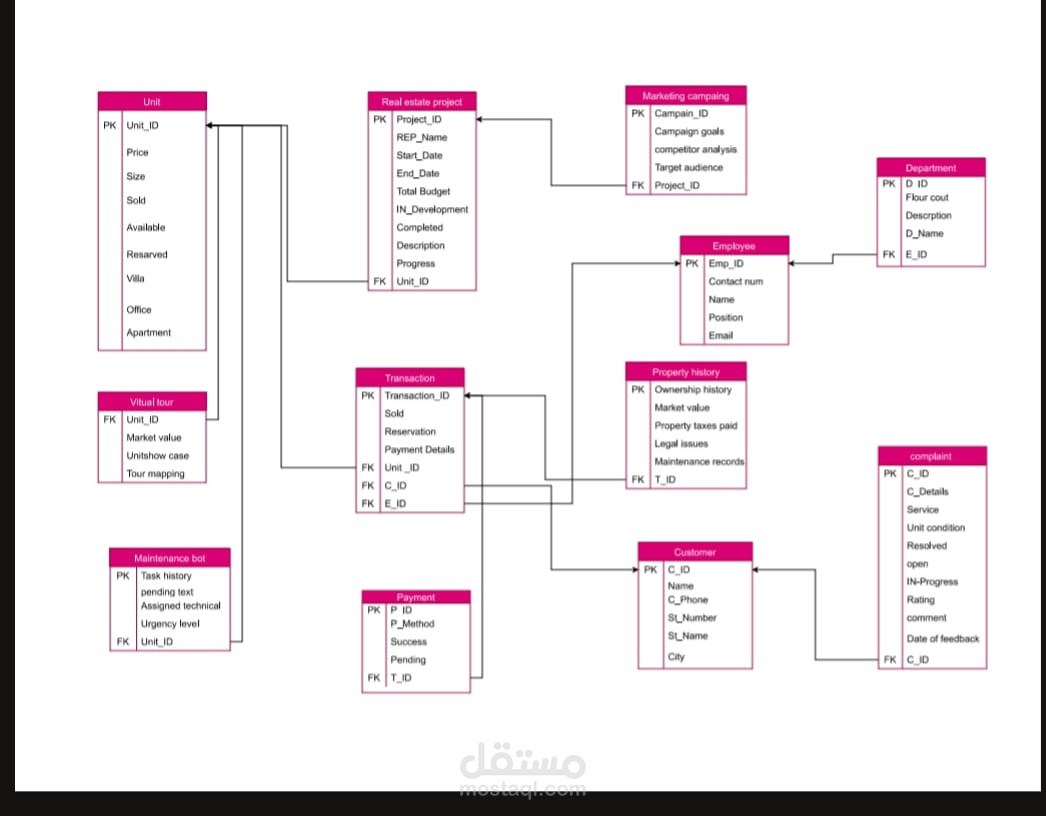 عملت مشروع متكامل في مجال الـ Real Estate، وكان دوري فيه هو إعداد وتحليل متكامل للبيانات والنظام. بدأت أولًا بإنشاء Business Case يوضح الأهداف والمتطلبات وحالات الاستخدام الخاصة بالمشروع. بعد ذلك قمت بتصميم ARD (Application Relationship Diagram) لتوضيح العلاقات والكيانات الأساسية داخل النظام. ثم انتقلت إلى مرحلة Mapping، حيث ربطت جميع المكونات ببعضها بشكل متكامل ومتسلسل.
