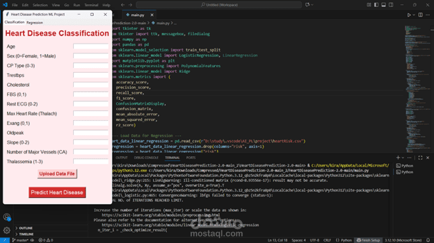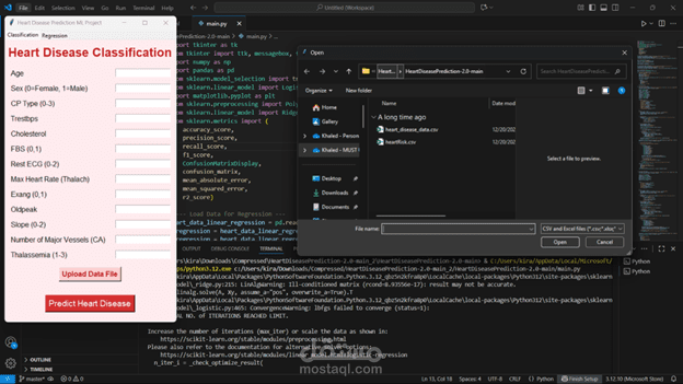 بعد مرحلة التحليل، جربت أكتر من خوارزمية تعلم آلي للمقارنة بينهم بهدف الكشف المبكر (Early Detection) عن أمراض القلب، وده بيساعد الأطباء في اتخاذ قرارات أسرع وأدق.