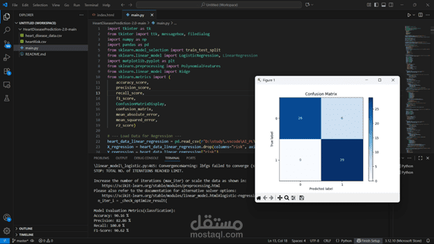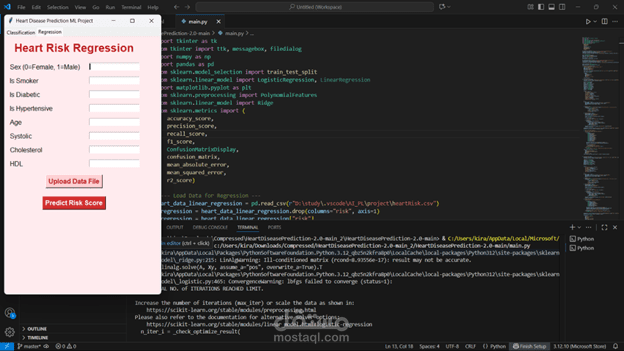 في المشروع دا طوّرت نظام ذكي بيتنبأ باحتمالية إصابة المريض بأمراض القلب اعتمادًا على مجموعة من المؤشرات الصحية (Health Indicators).