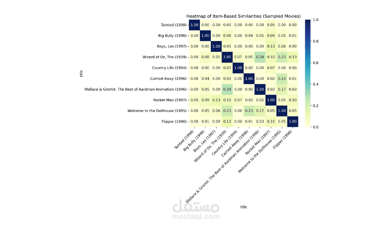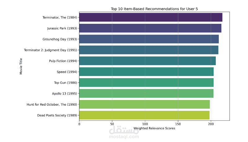 Item-based Collaborative Filtering: اقتراح الأفلام المشابهة لاختيارات المستخدم.