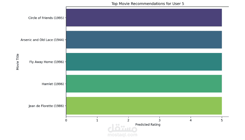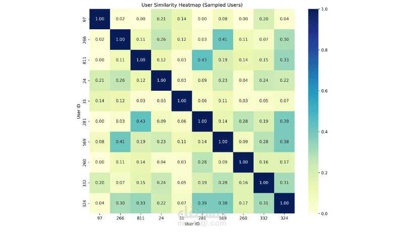 User-based Collaborative Filtering: اقتراح الأفلام بناءً على المستخدمين المشابهين.