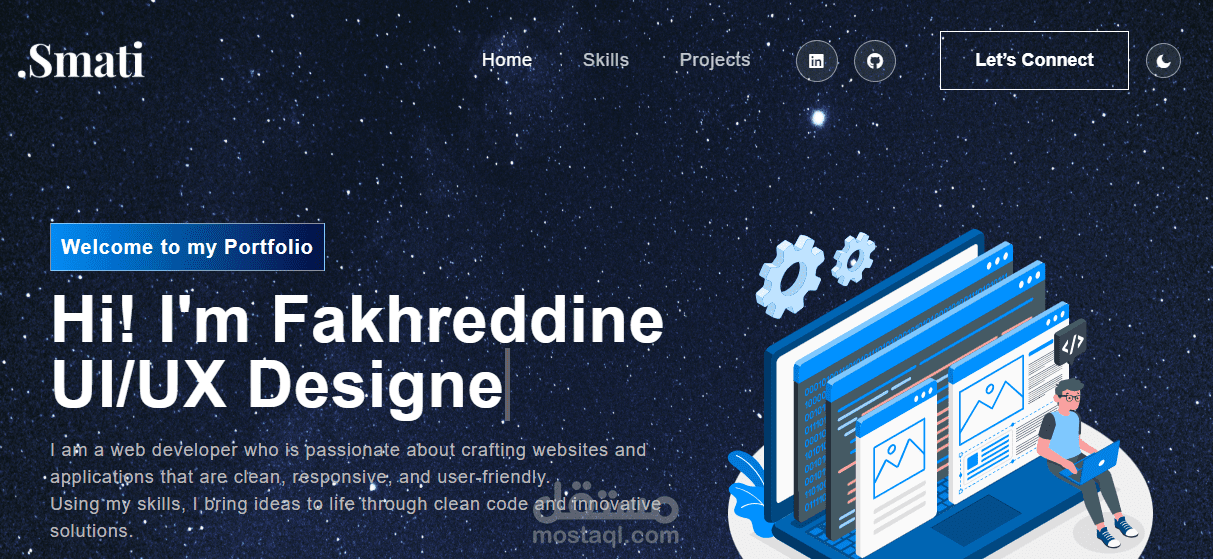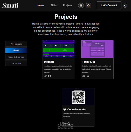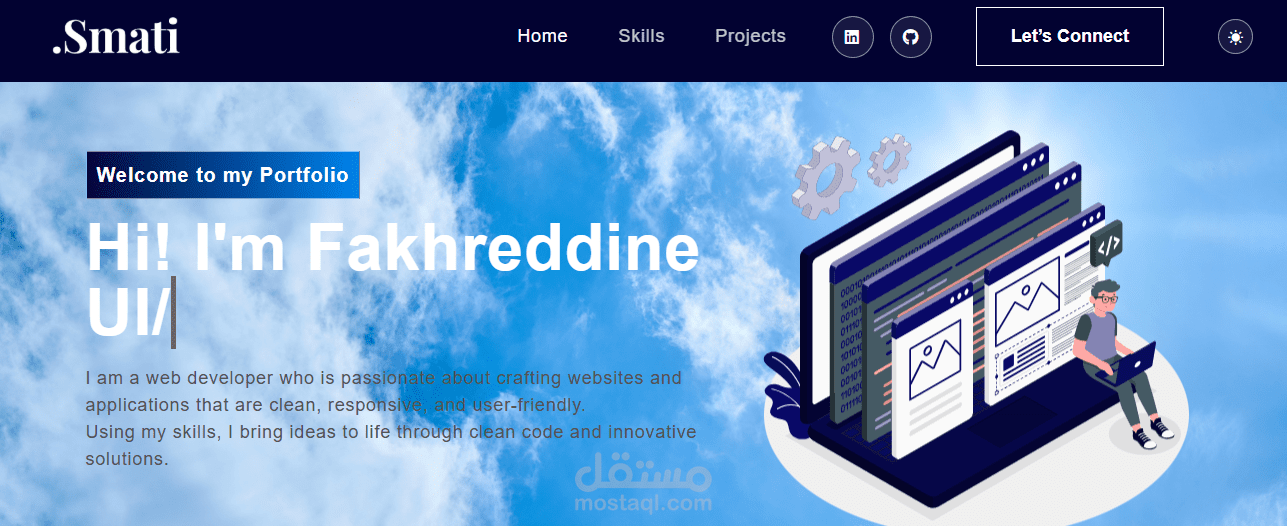 موقع محفظة شخصية حيث أقدم نفسي وأظهر مهاراتي ومشروعي وابتكاراتي الأخيرة.