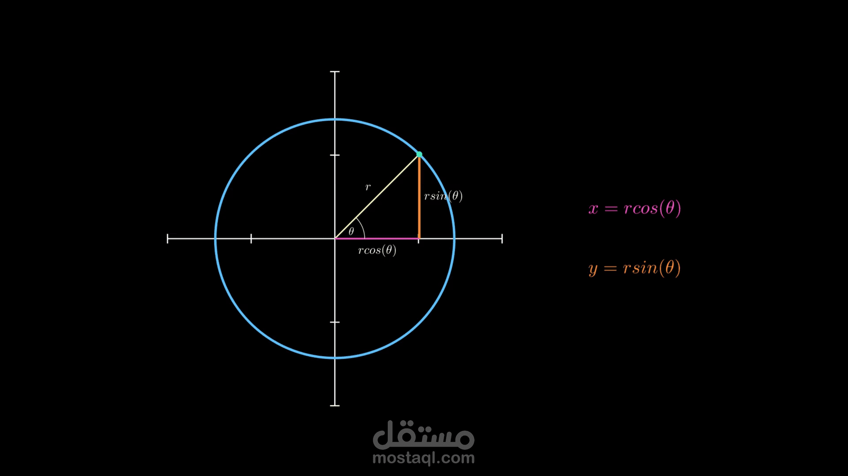 قمت بإظهار حركة نصف القطر مع نقطة متحركة على محيط الدائرة، مع إسقاطات (projections) توضح كيف يتولد منها منحنى جيب و جيب تمام.