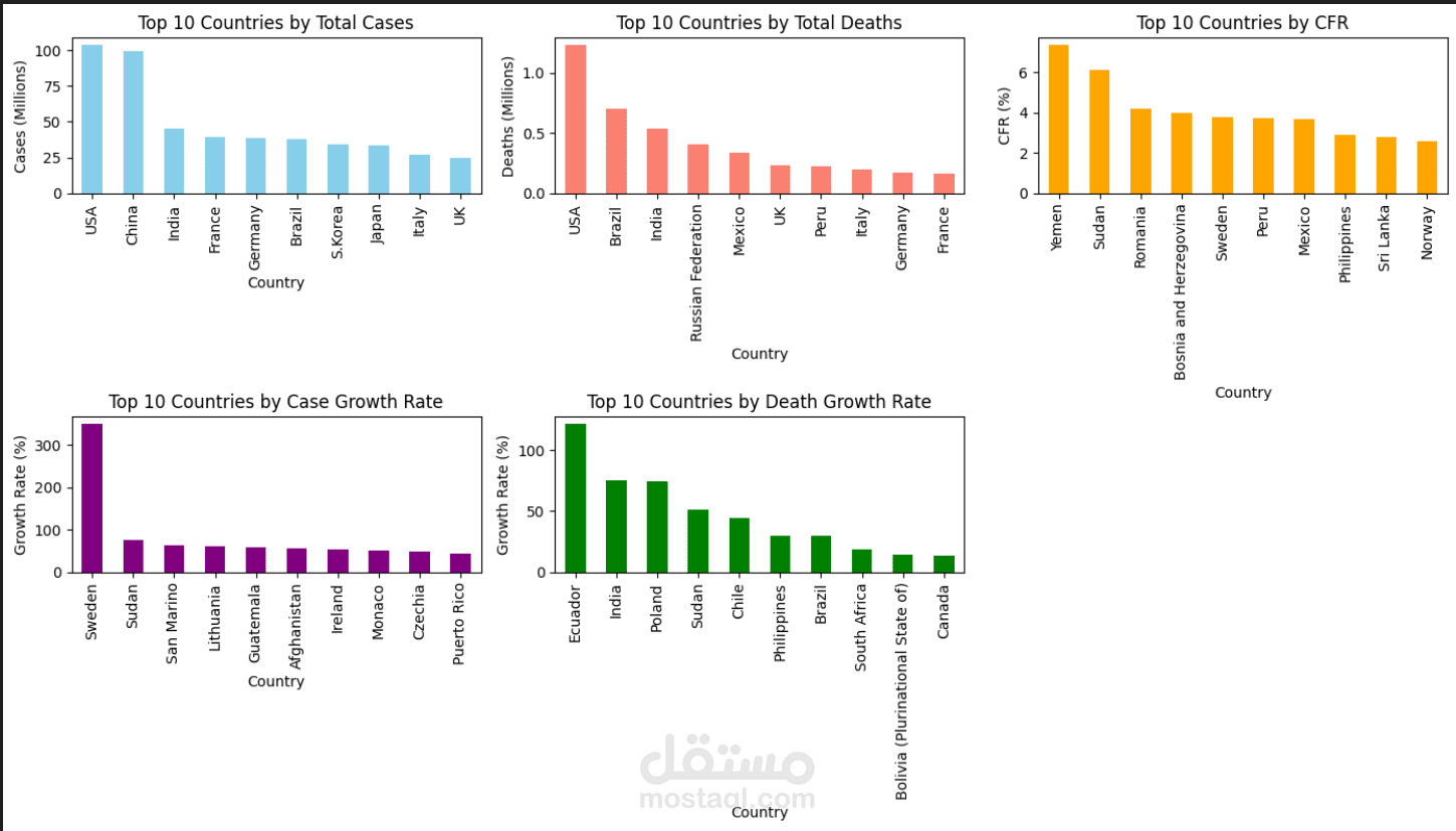Analyzed real-world COVID-19 datasets to uncover trends and patterns in infection and recovery rates. The project involved cleaning and processing data using Python and Pandas, and creating clear and informative visualizations including line charts, bar charts, and heatmaps with Matplotlib and Seaborn. The insights generated helped understand how the pandemic evolved over time and highlighted key patterns in the spread and recovery of the virus.
