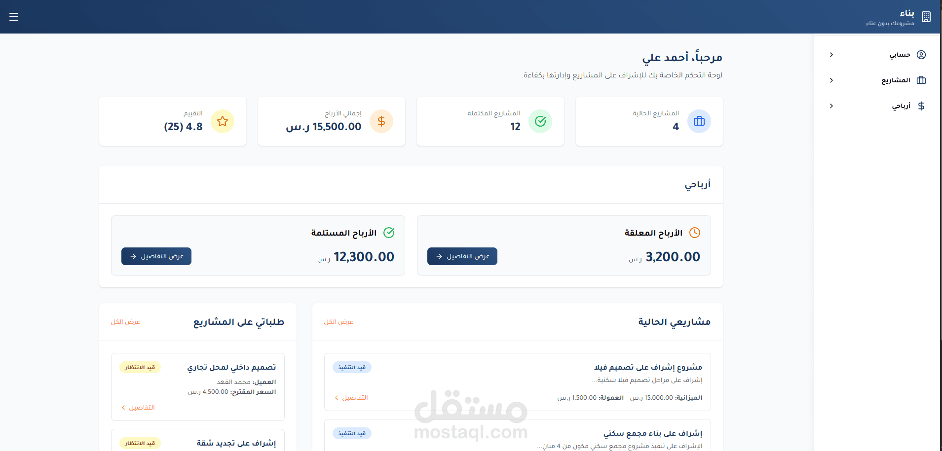 عنوان المشروع: منصة "بناء" للمقاولات والمشاريع