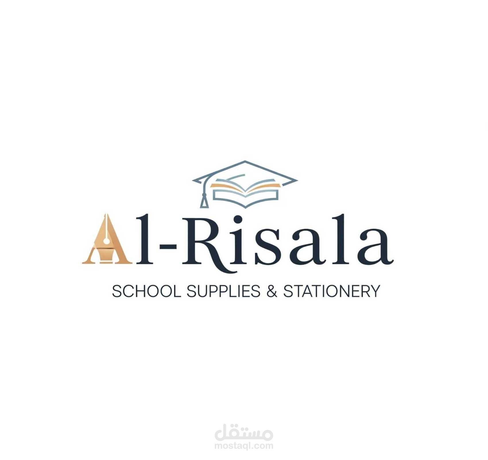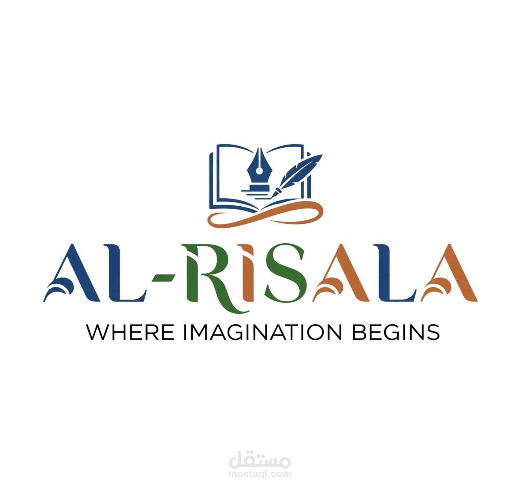 تصميم لوجو لمكتبة Al-Risala يعبر عن الهوية الثقافية والتعليمية للمكان. تم المزج بين الخط الأنيق وعناصر بصرية مثل القلم والحبر لتمثيل المعرفة والكتابة، مع اختيار ألوان هادئة (ذهبي وأزرق داكن) تعكس الرصانة والاحترافية. الشعار مصمم ليكون واضح، بسيط وسهل التذكر، ويعكس رسالة المكتبة في نشر العلم والثقافة.
