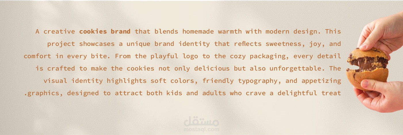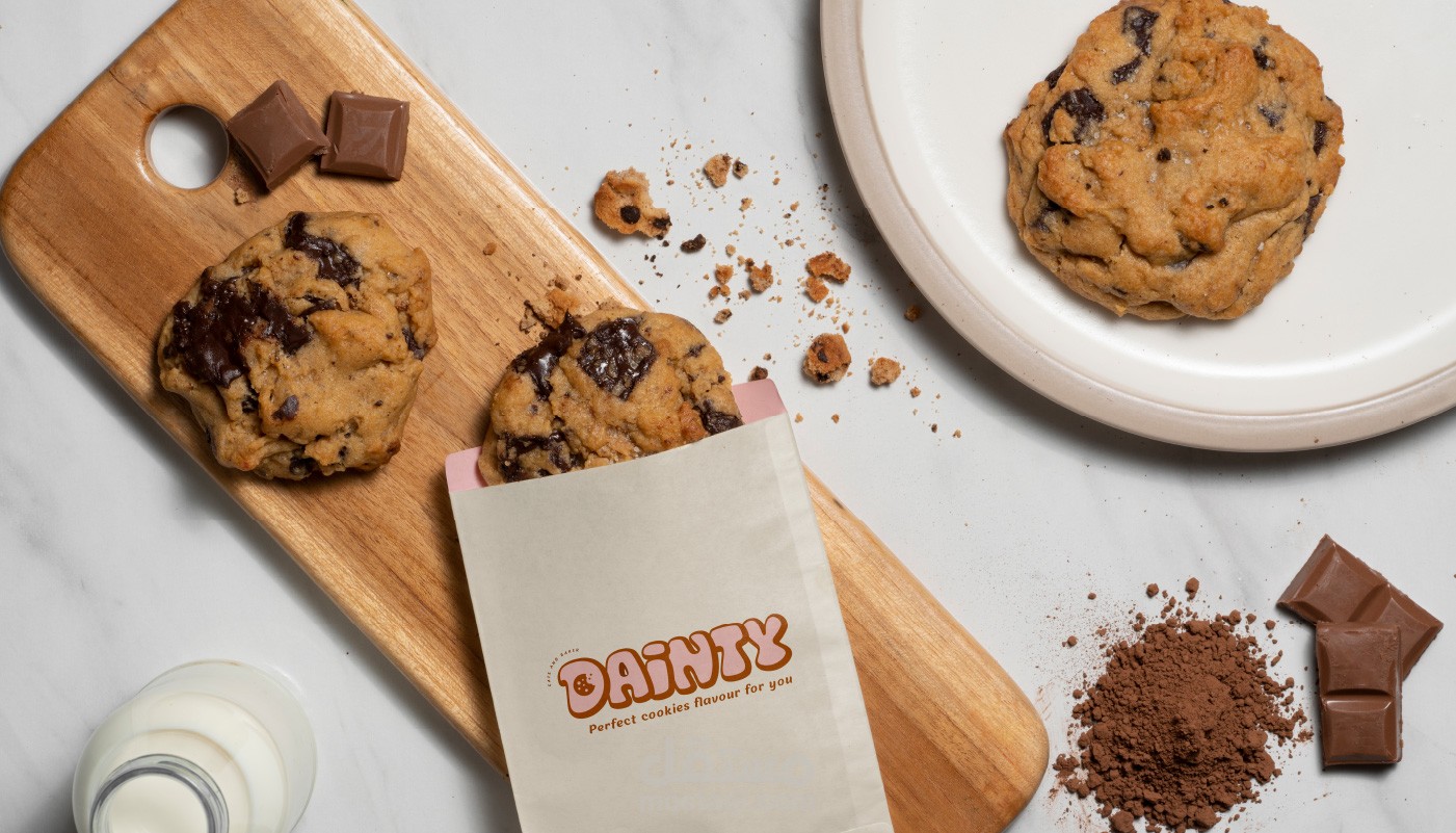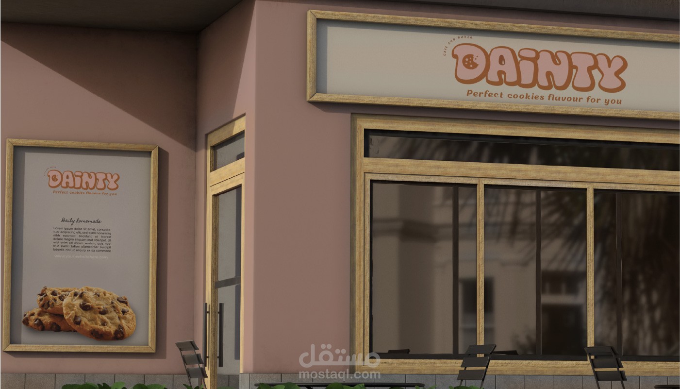 شعار “Dainty” هو تصميم تايبوغرافي مبتكر يعكس هوية محل الكوكيز بروح ناعمة وشهية. تم تنفيذ الحروف بأسلوب منتفخ ومرح ليحاكي ملمس الكوكيز الطرية وانتفاخها عند الخَبز، مما يمنح الشعار مظهراً ودوداً وجذاباً. الخطوط المستديرة تنقل إحساس الدفء والبهجة، بينما الطابع الإنجليزي الأنيق يضفي لمسة عصرية تحافظ على بساطة وجاذبية العلامة. النتيجة هي شعار يجمع بين اللطف واللذة ليعكس شخصية العلامة التجارية ويجعلها قريبة من قلوب عشاق الحلويات.