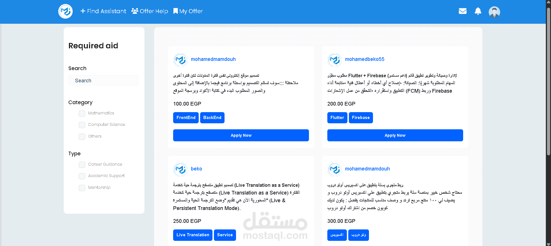نشر خدماتهم المتاحة (مثل: برمجة، دروس خصوصية).