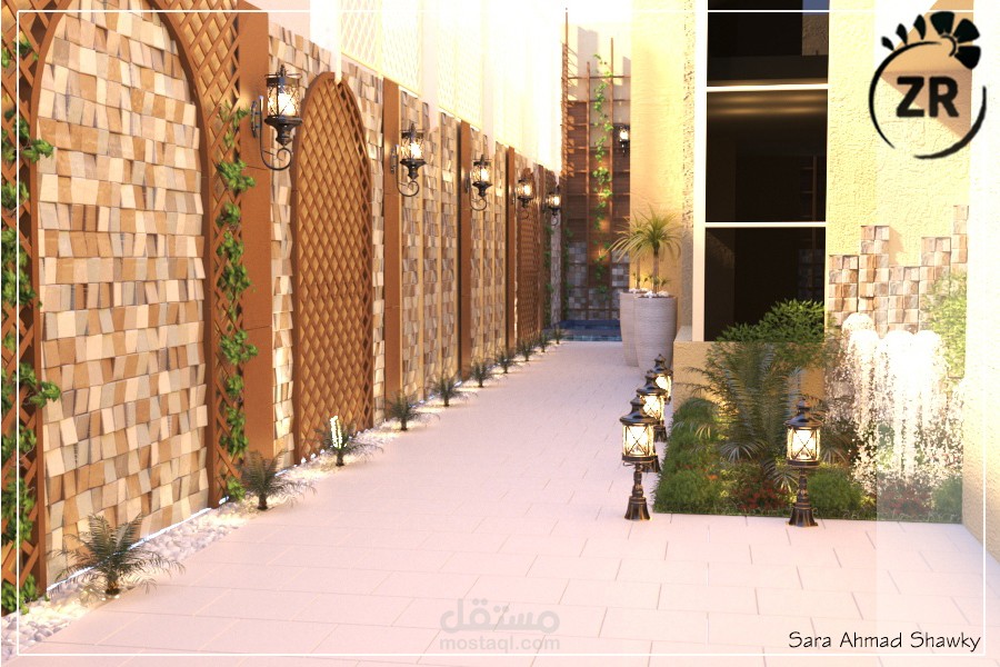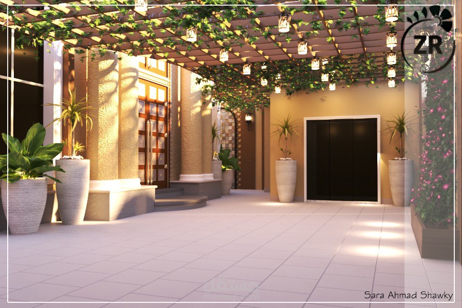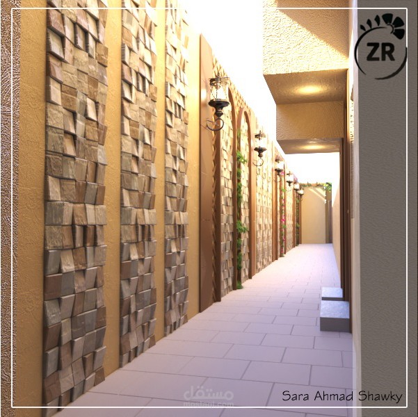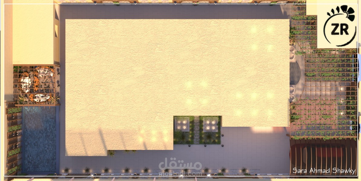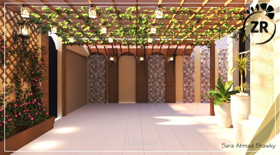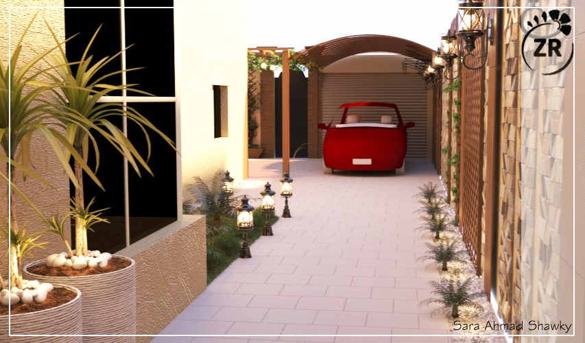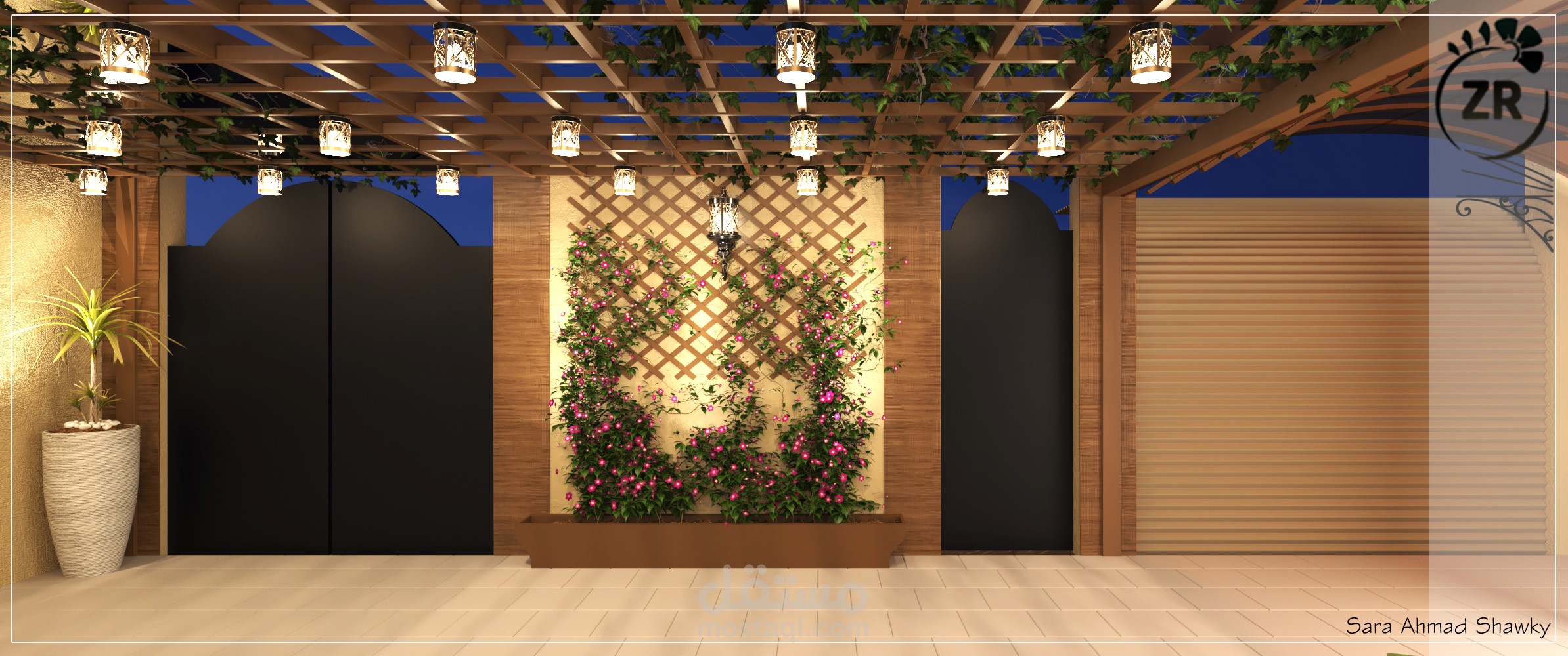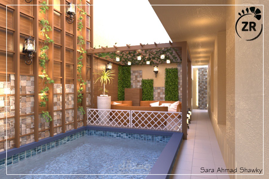 تصميم تفاصيل سور و مجلس بجوار حمام سباحة و وضع مظلات بفيلا مقامة بالفعل... تم التصميم بمراعاة ألوان الفيلا الحقيقية ومواد التشطيب و التعامل مع الموديول الموجودة و محاولة محاكاة الطراز