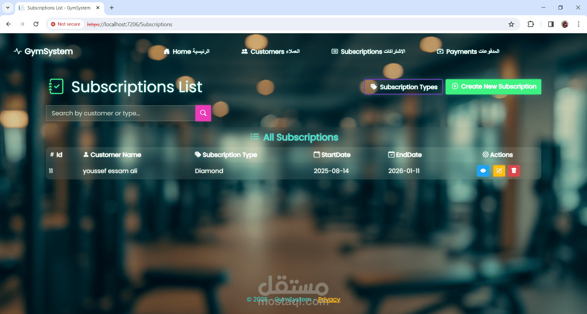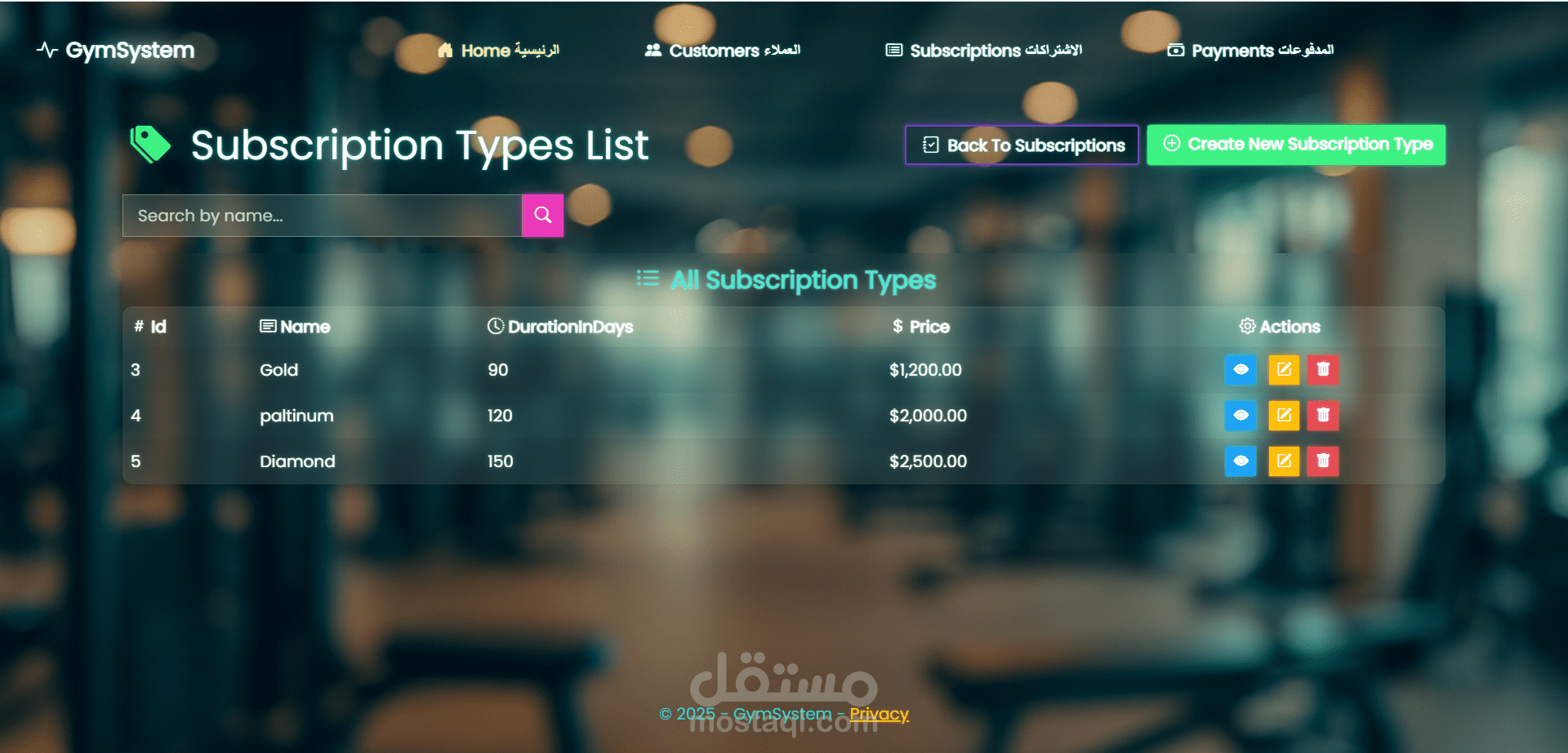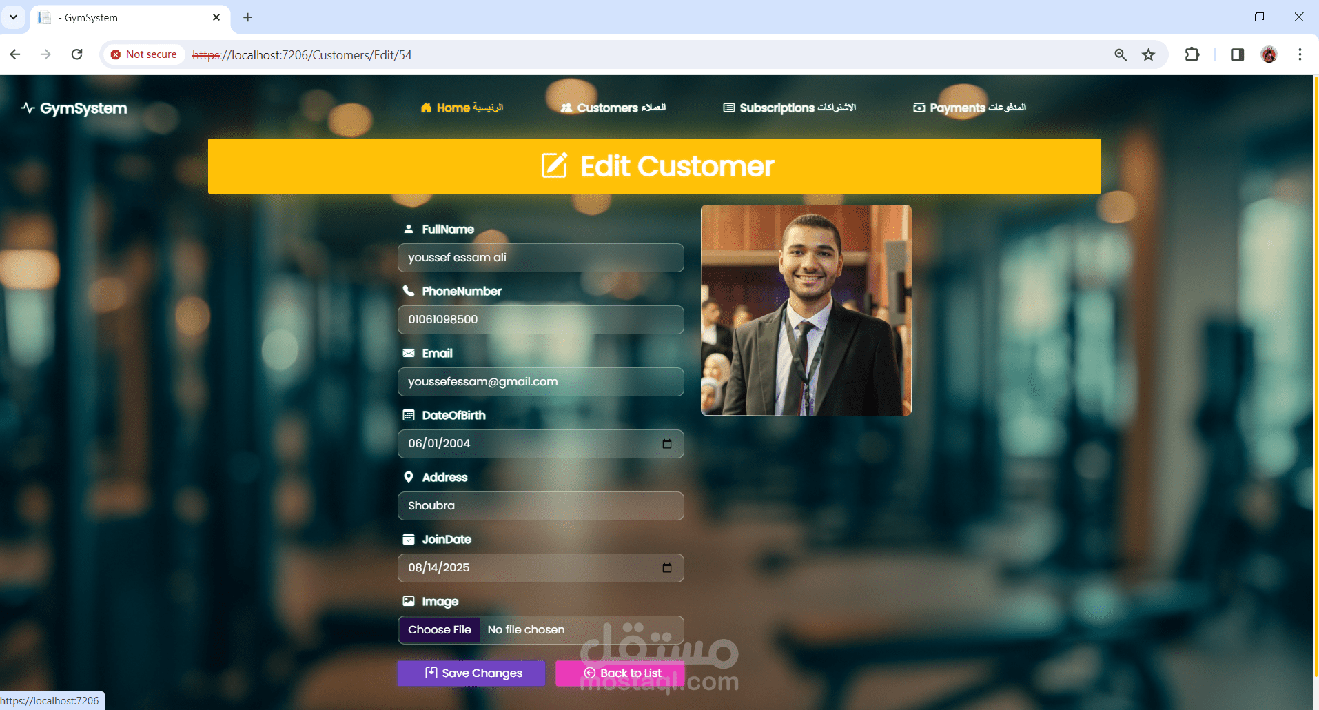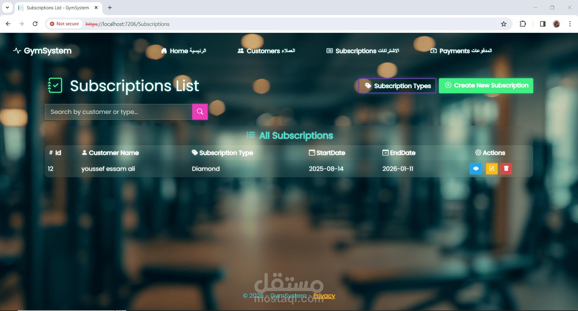 نظام إدارة عضويات لصالة رياضية (Gym Management System)