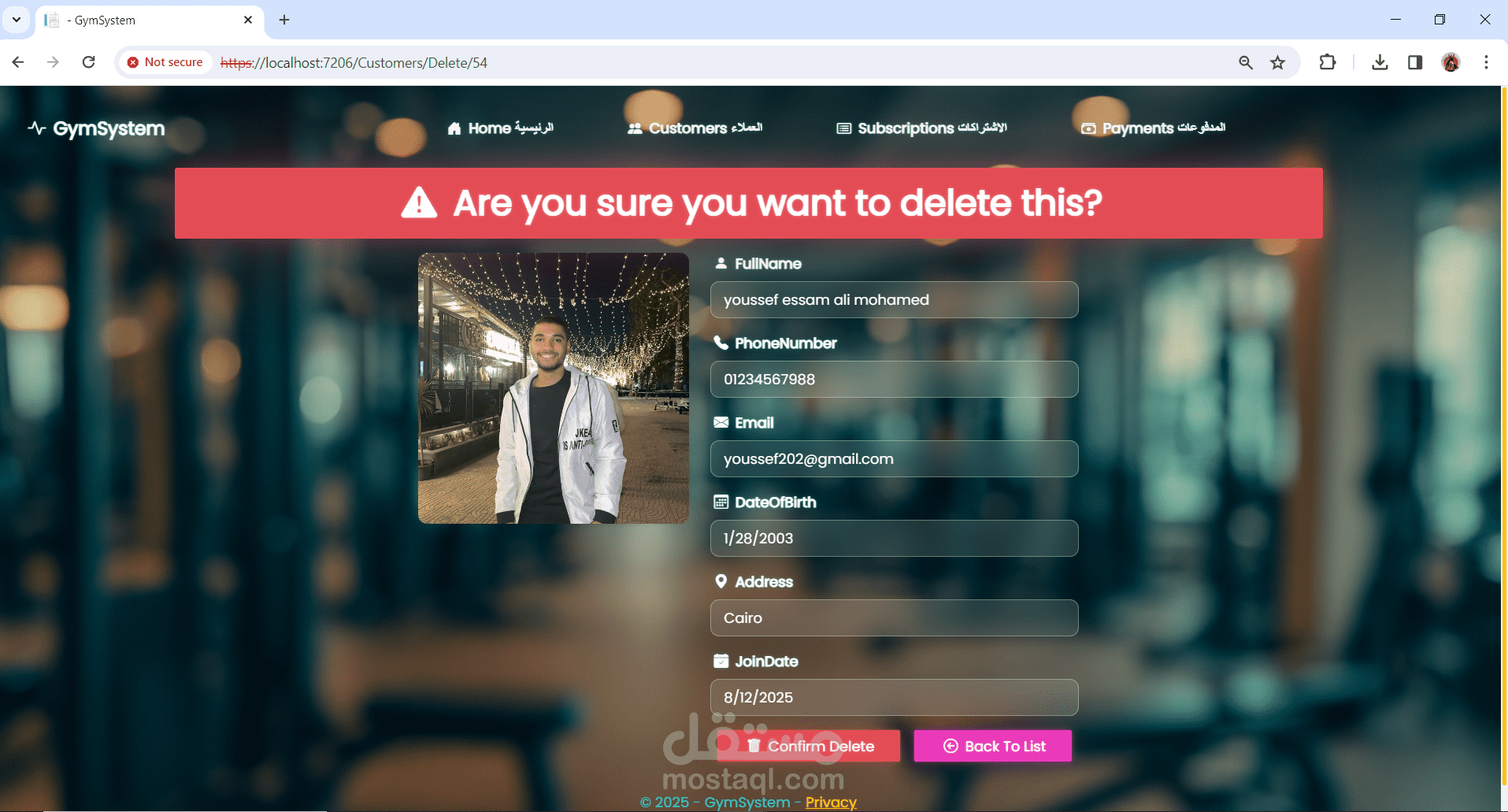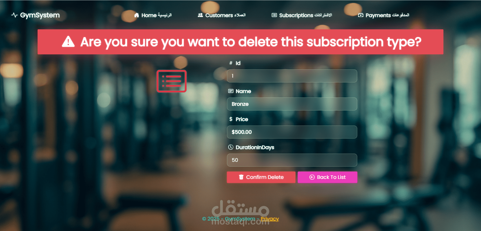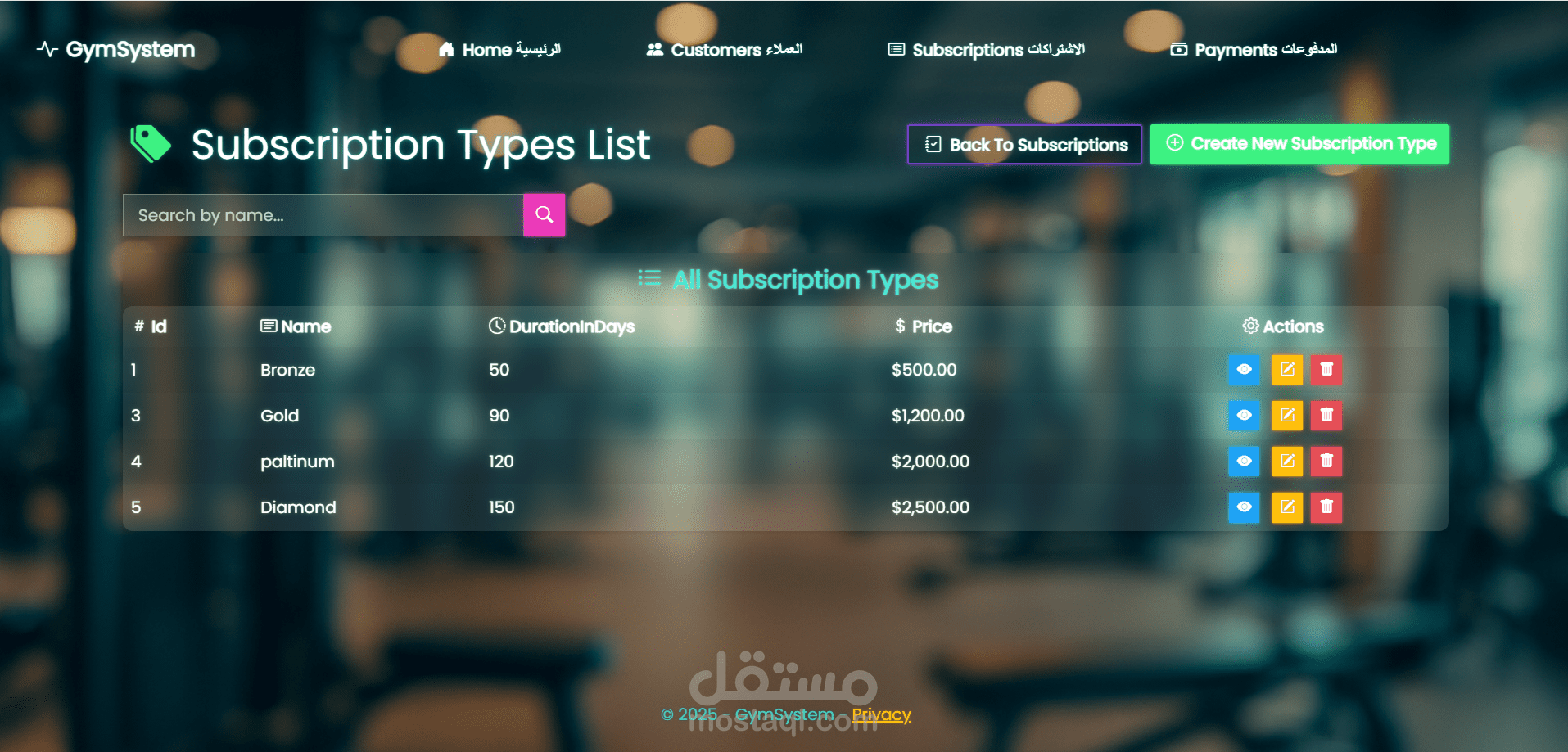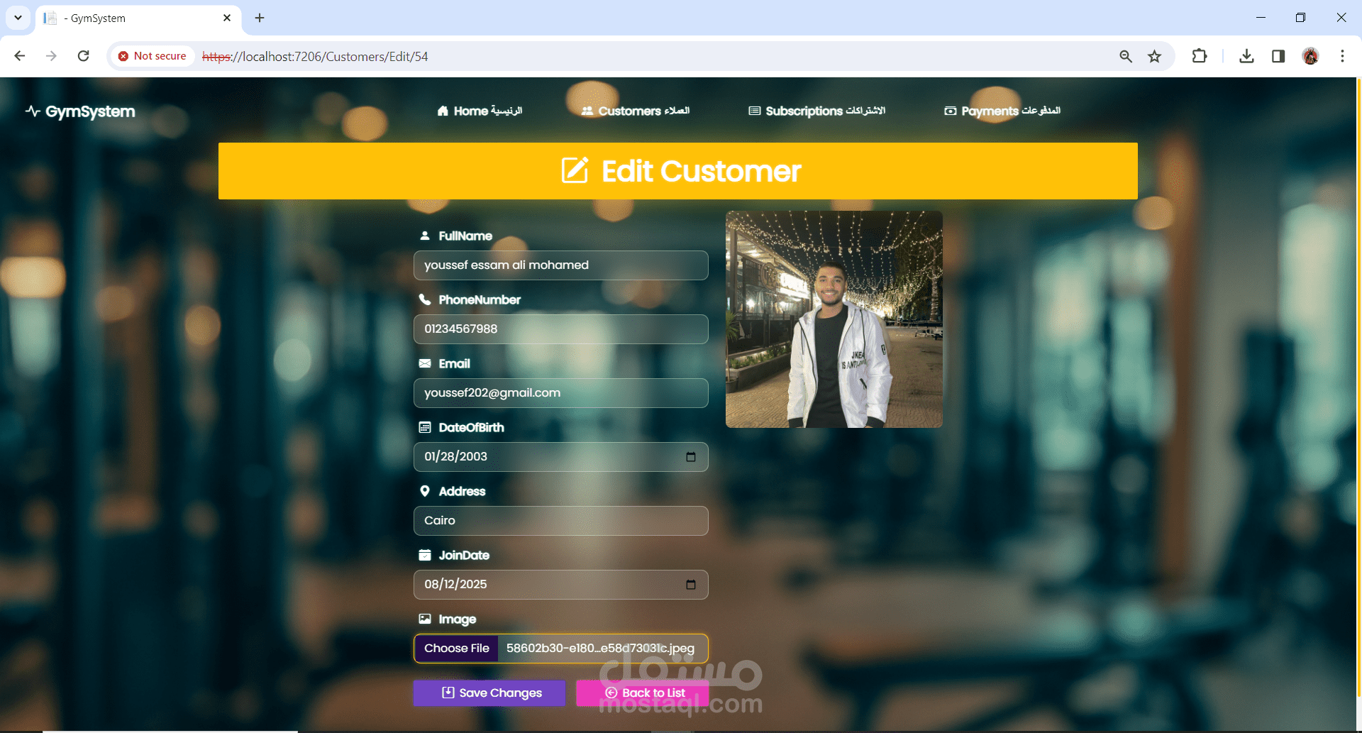 نظام إدارة عضويات لصالة رياضية (Gym Management System)