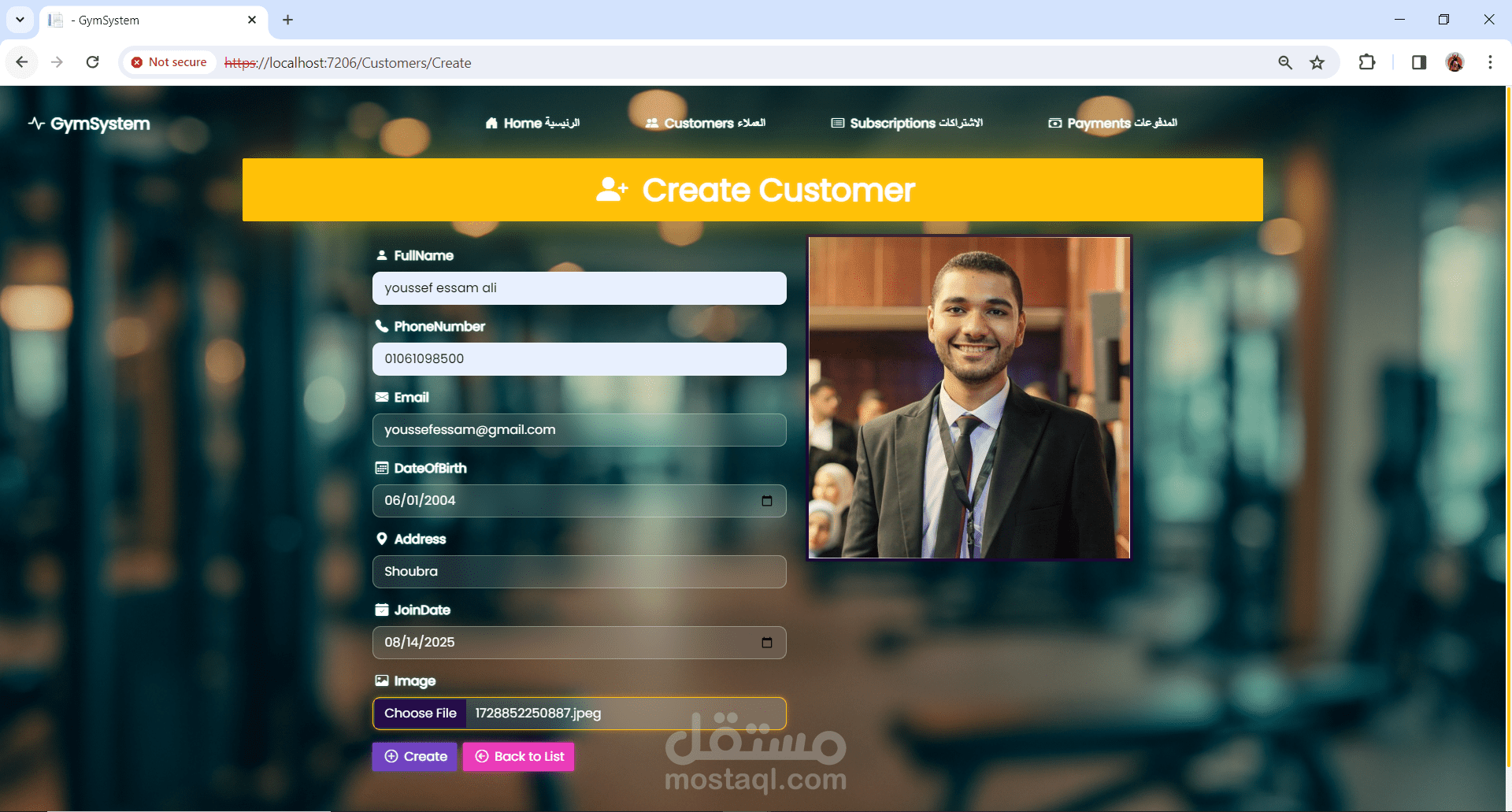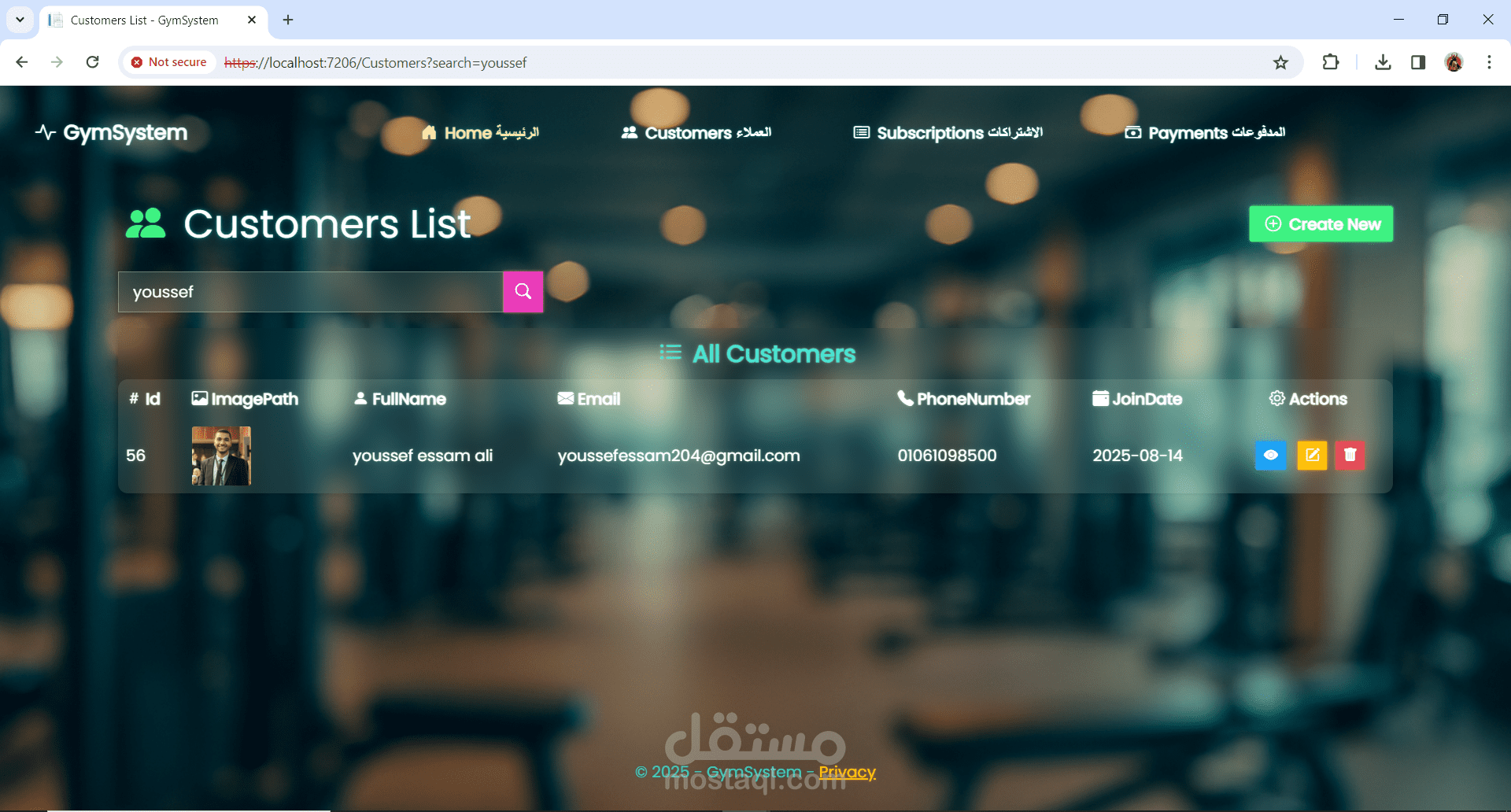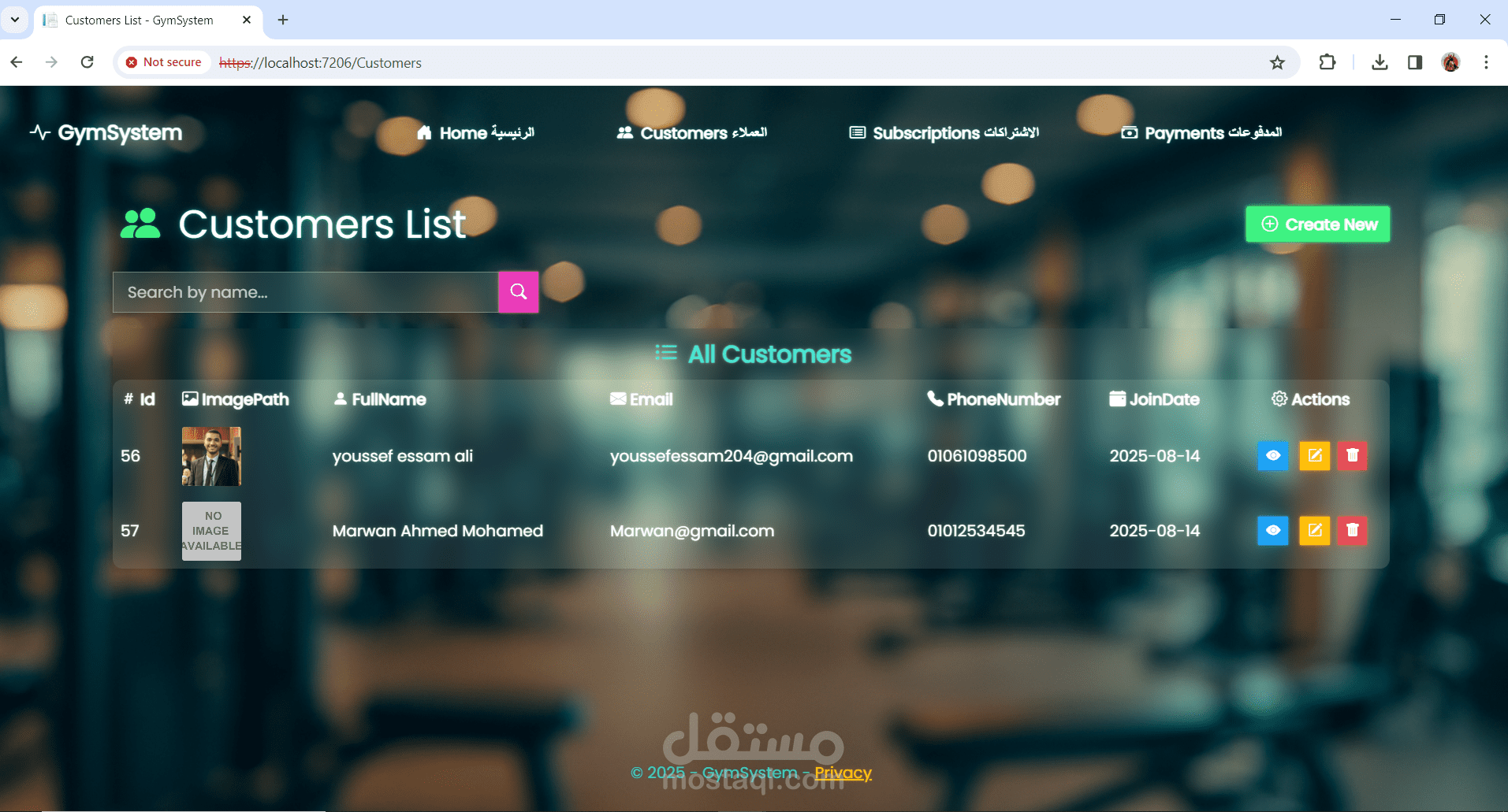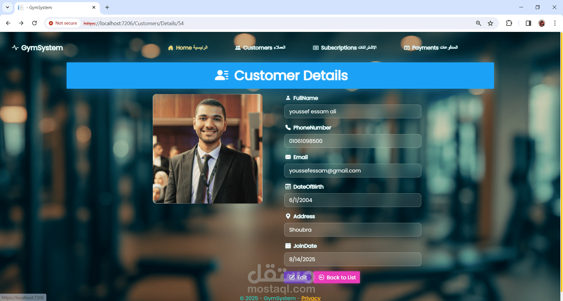 نظام إدارة عضويات لصالة رياضية (Gym Management System)