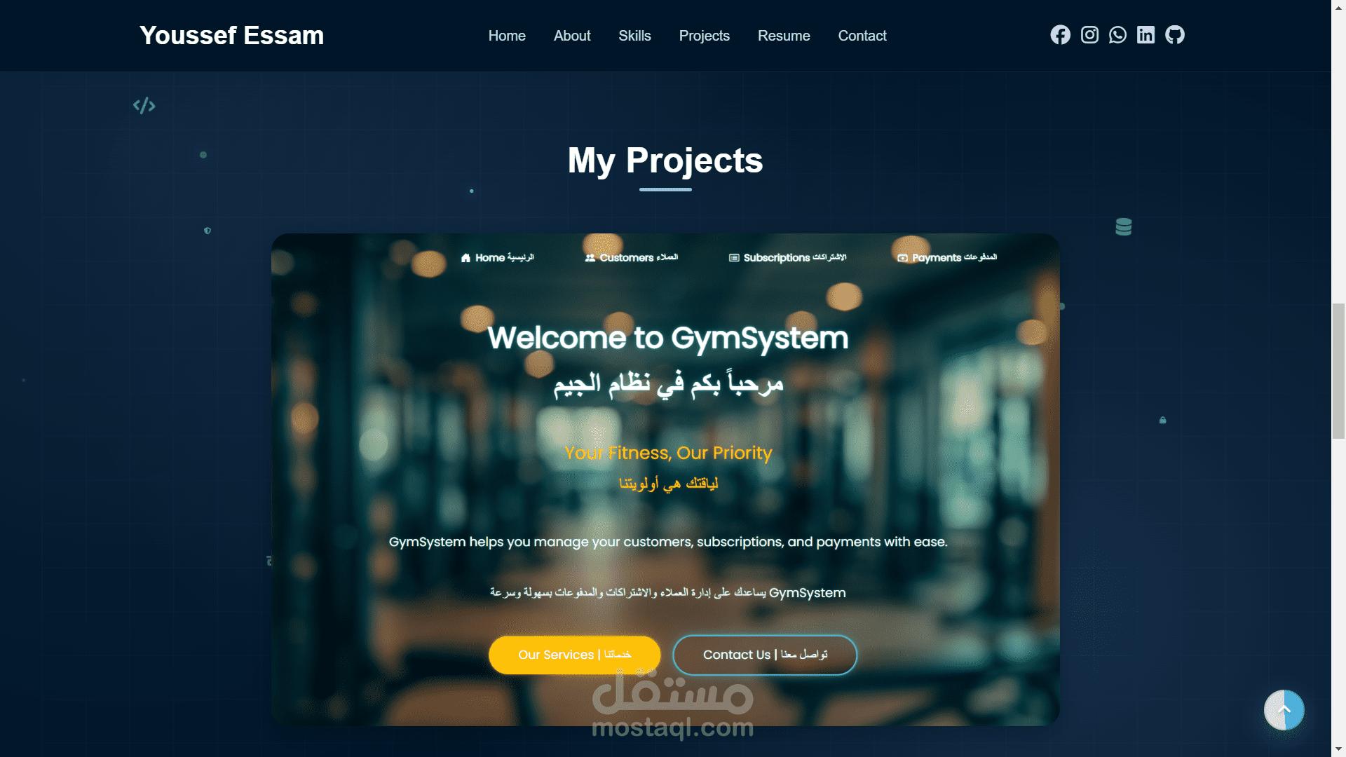 نظام ويب متكامل لإدارة العملاء والاشتراكات والمدفوعات بصلاحيات متعددة للمستخدمين يتيح إنشاء تقارير مفصلة وتحكم كامل بالبيانات ويتميز بواجهة سهلة الاستخدام وأمان عالي وقابلية التوسع