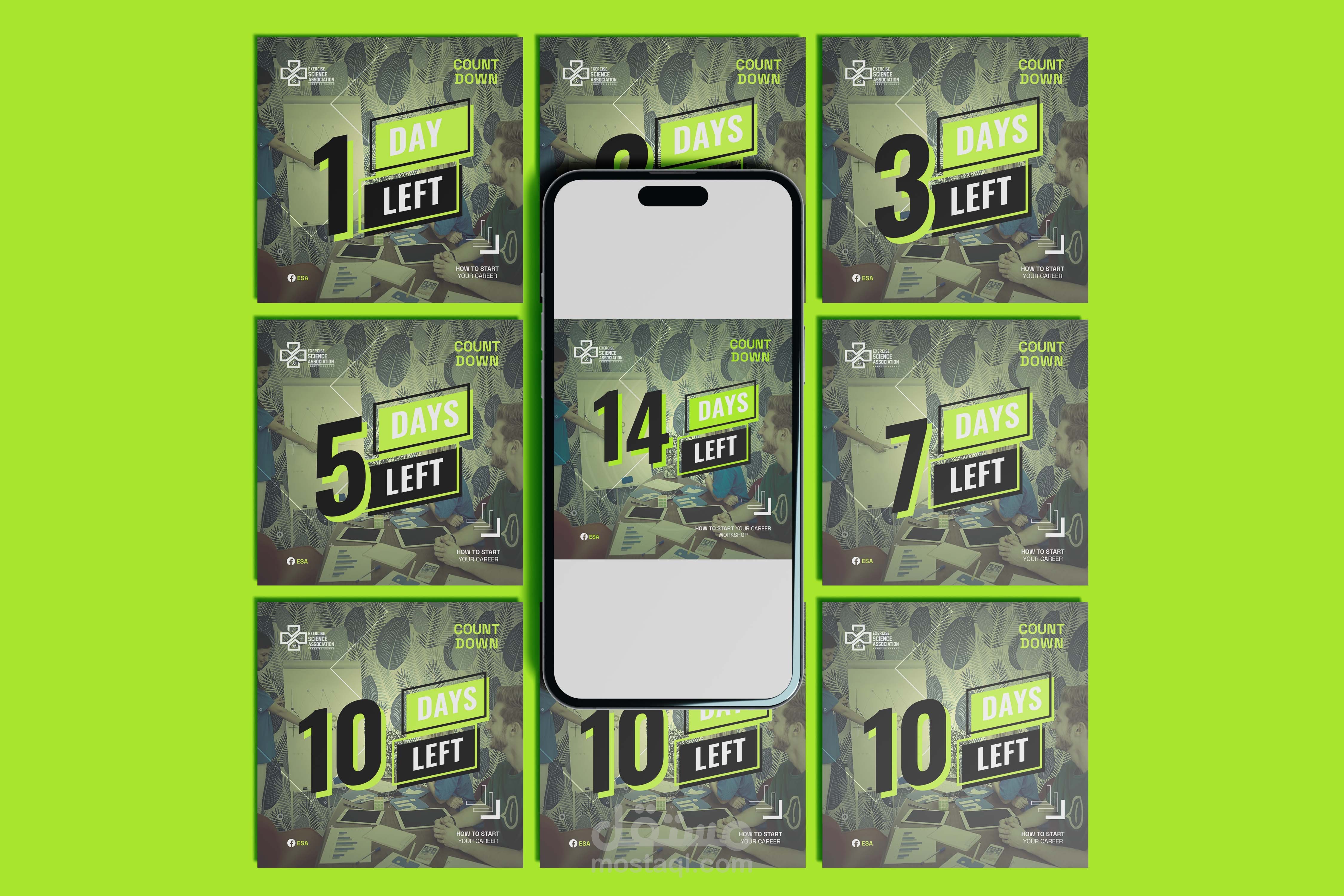 تصميم مجموعة من البوستات الدعائية المخصصة للعدّ التنازلي قبل انطلاق حدث تدريبي بعنوان How to Start Your Career.