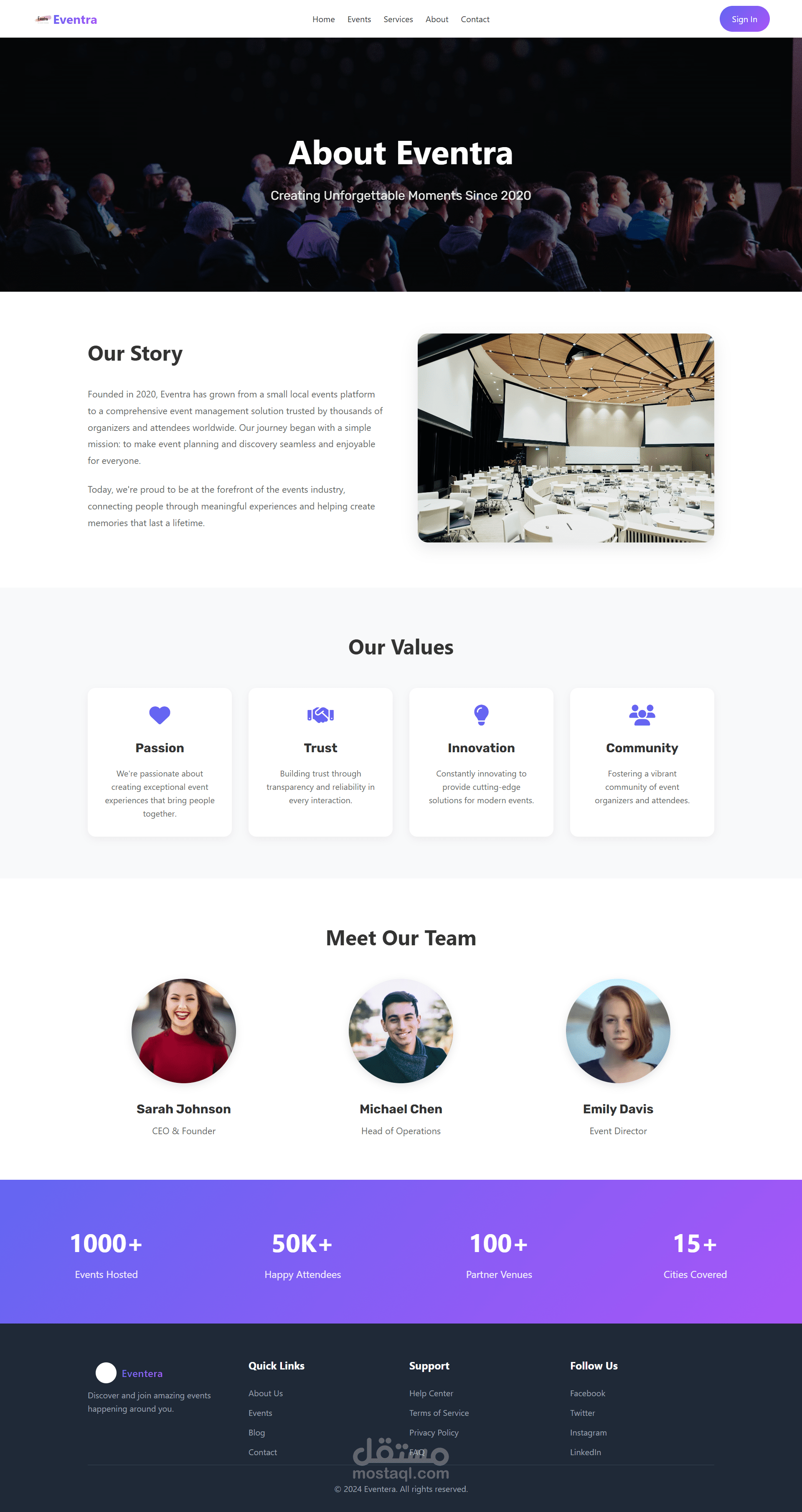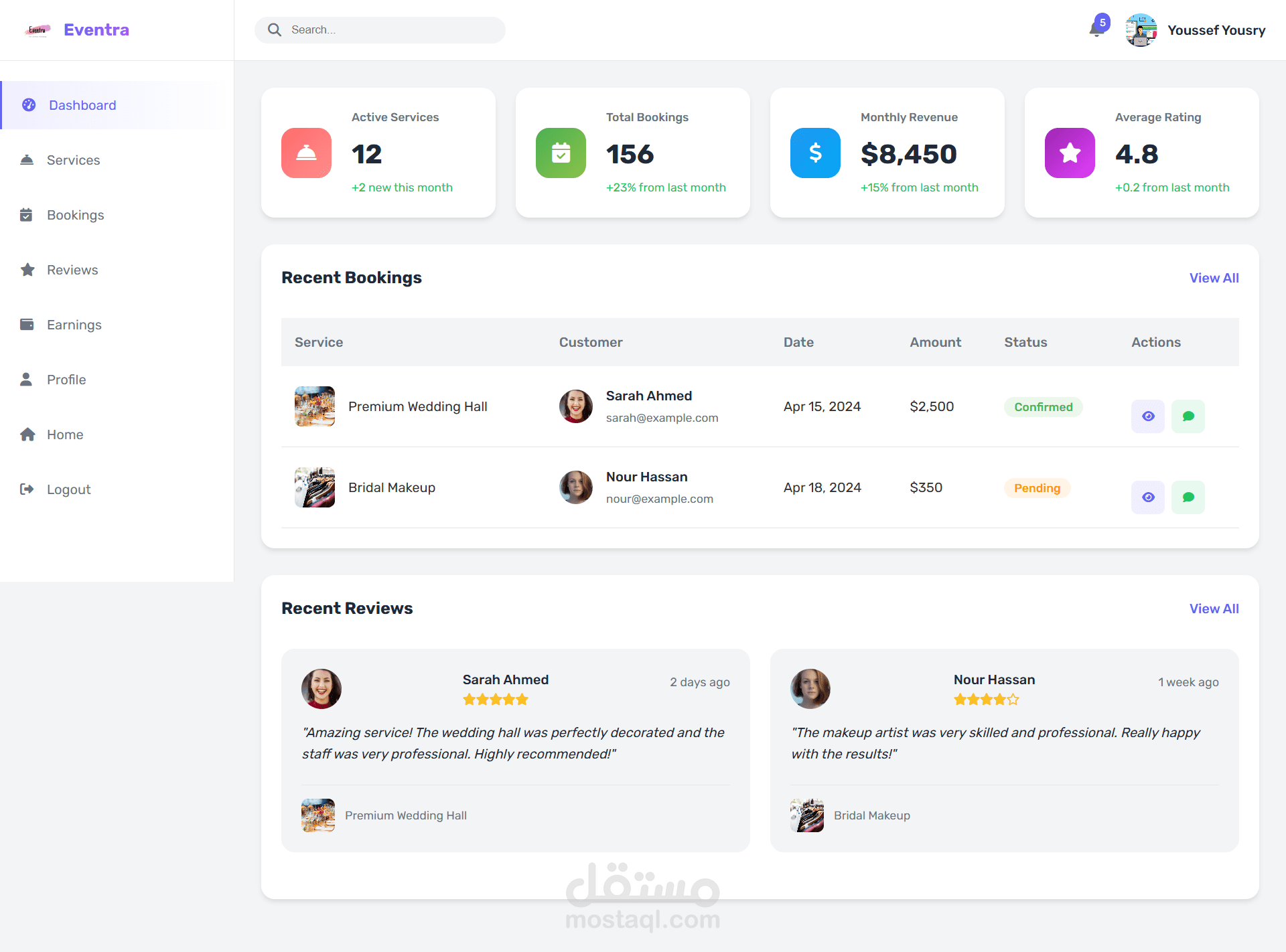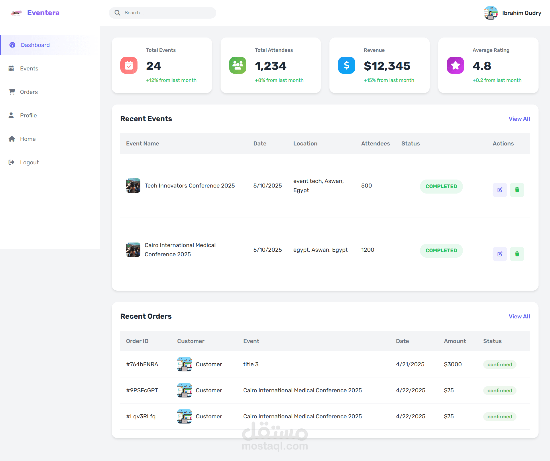 قمت بتطوير منصة Eventra وهي موقع إلكتروني وتطبيق ويب متعدد الأدوار يهدف إلى مساعدة المستخدمين في اكتشاف الفعاليات القريبة منهم والتفاعل معها بسهولة.