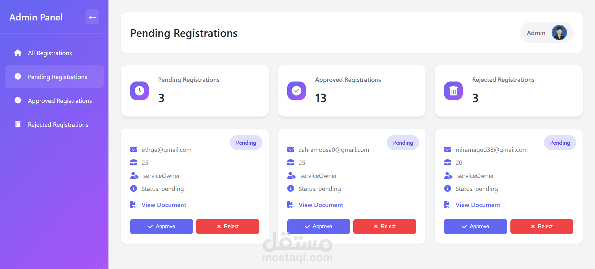 المسؤول (Admin): لإدارة النظام ومتابعة كافة العمليات.