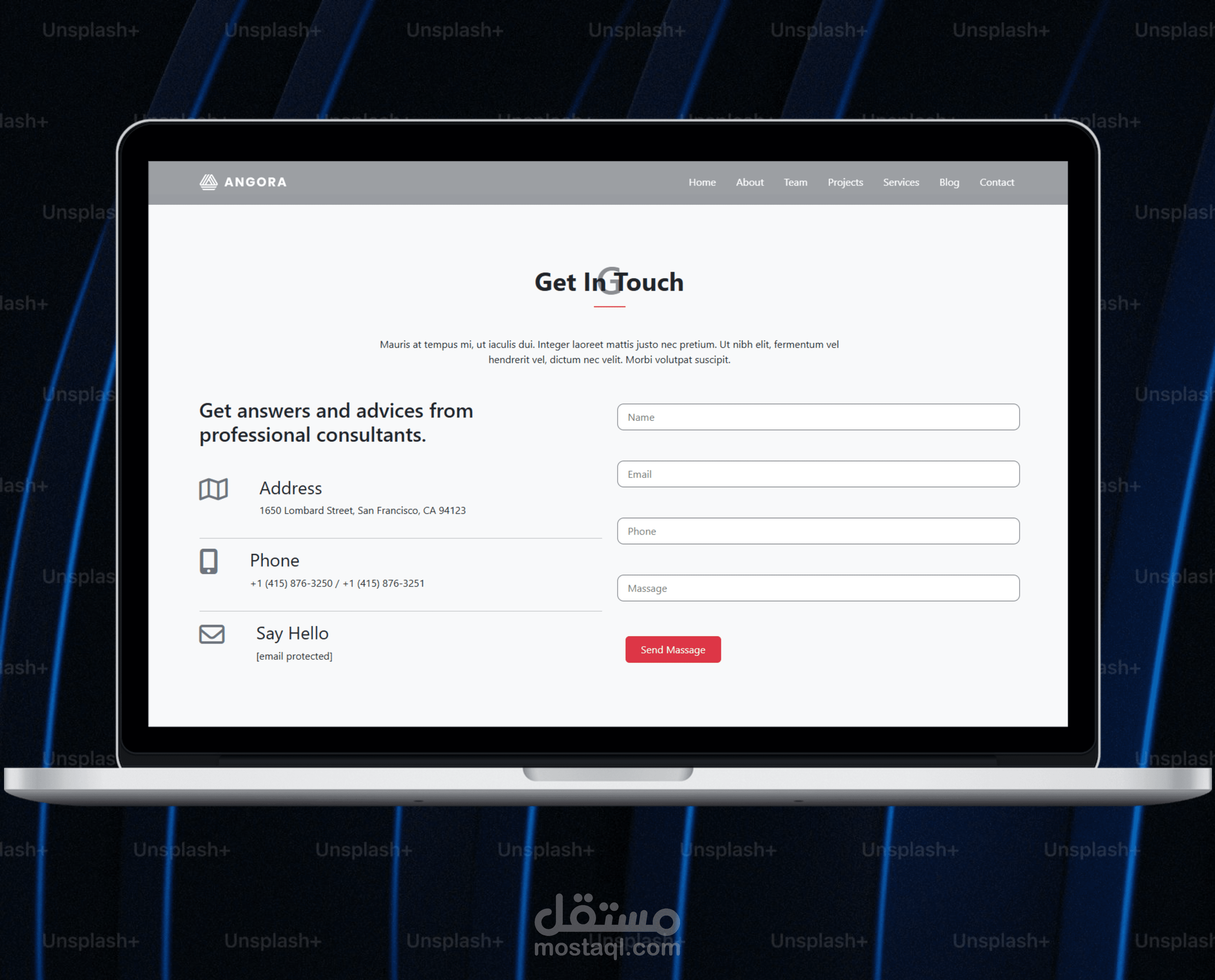 Angora هو موقع متعدد الأغراض (Multipurpose Website) تم تصميمه باستخدام HTML, CSS, و Bootstrap مع مراعاة تصميم واجهة مستخدم حديثة وجذابة.