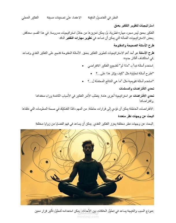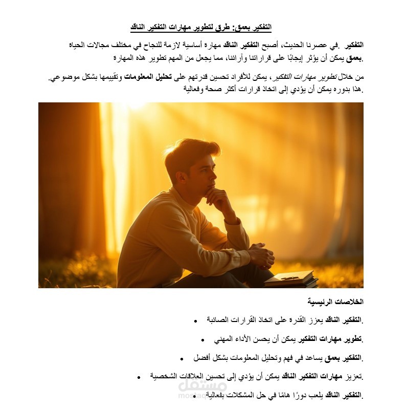 يتكلم الموضوع عن التفكير بعمق أى يعنى أن تأخذ الموضوع وتفكر وتتعمق فيه وتدرسه بالتفصيل حتى يتم أخذ القرار الحاسم طبعا بعد دراسه وتفكير وبحث وتحليل وفيه صور تفصيليه تشرح عن كل ما هو يمكن فعله على هذا النحو تنفيذ هذا الموضوع هو أن تهدأ مع نفسك وتفكر بشكل إيجابى وتدرسه بمعنى أن تفكر فى كل ما حول هذا الشئ الذى تفكر فيه