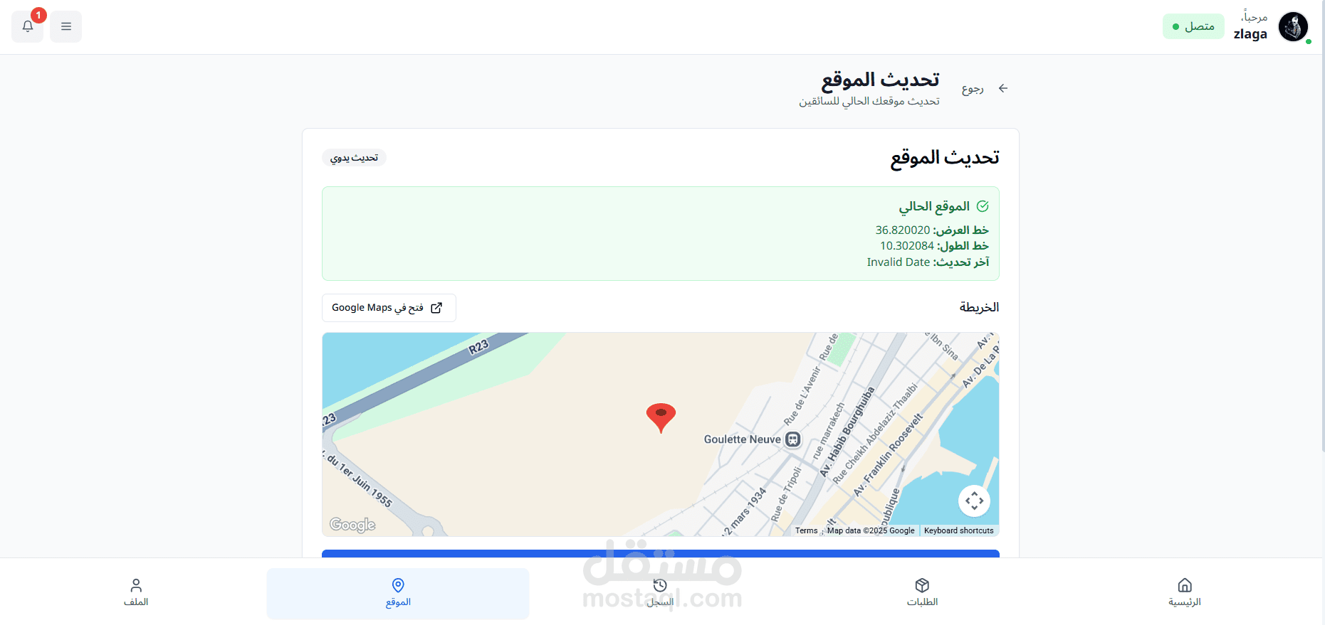 نظام توصيل ذكي: تتبع مباشر للطلبات مع خرائط Google Maps