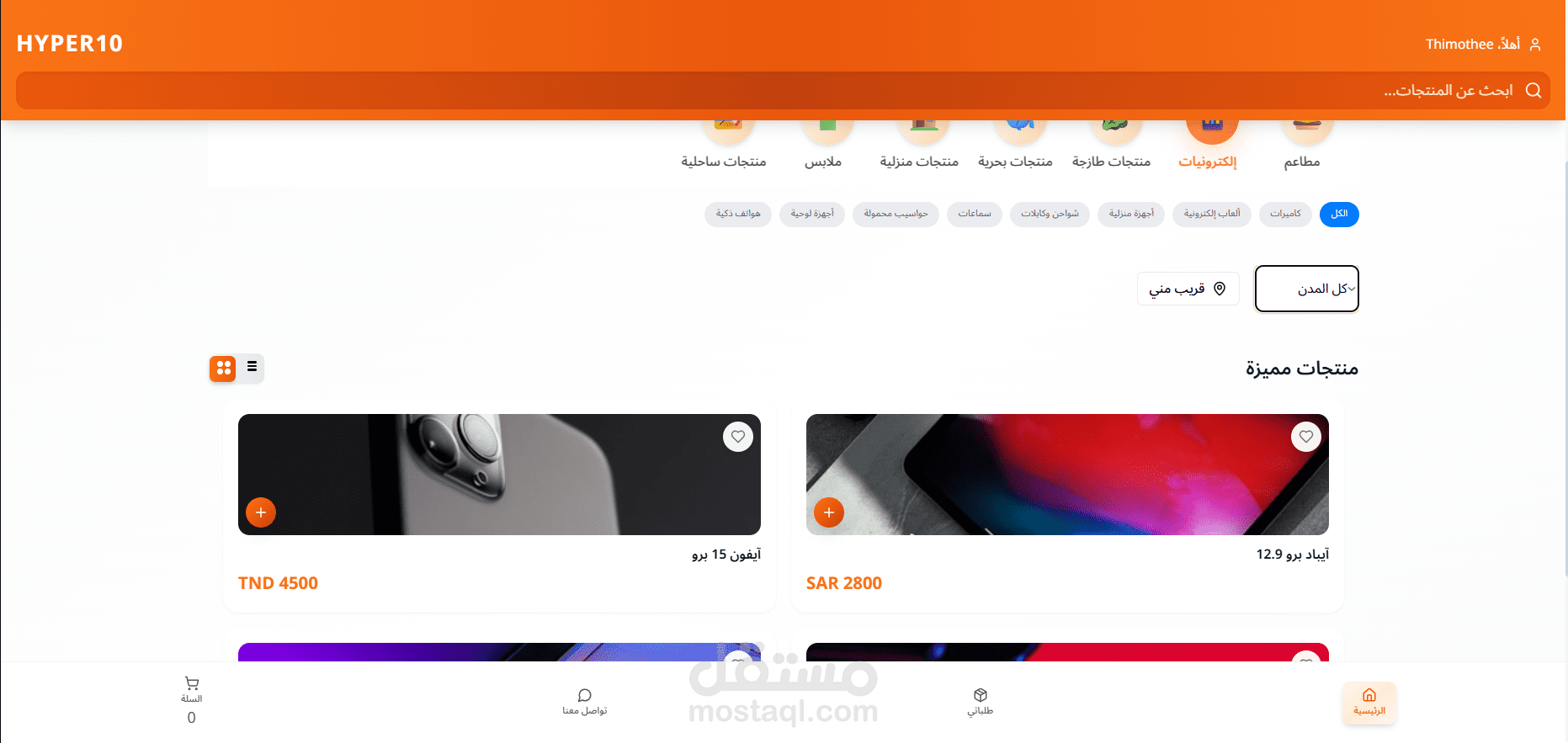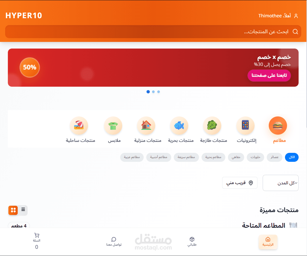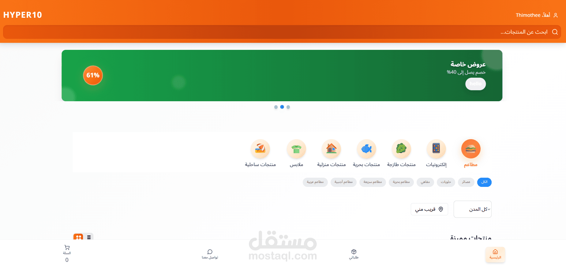 مرحباً! أقدم لكم مشروع منصة توصيل متكاملة وشاملة، عبارة عن تطبيق ويب متطور يجمع بين التجارة الإلكترونية وخدمات التوصيل في مكان واحد.