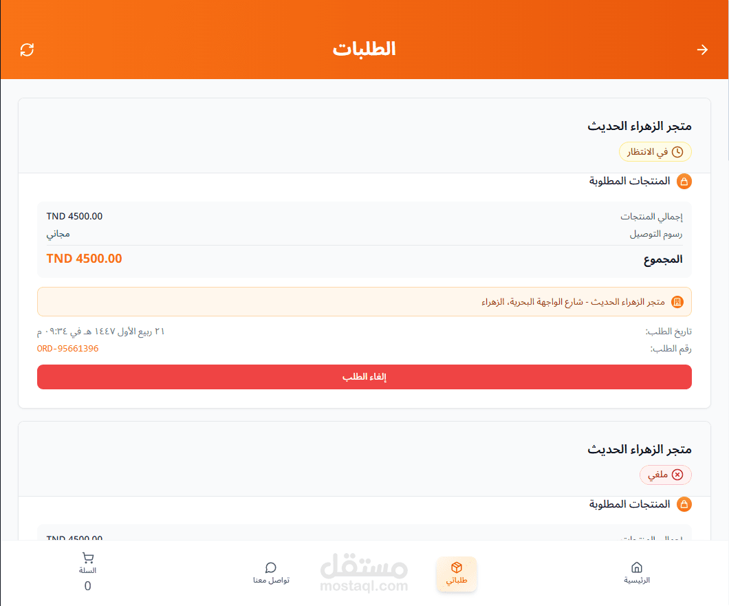 مشروع منصة توصيل متكاملة - تطبيق ويب متطور للتجارة الإلكترونية