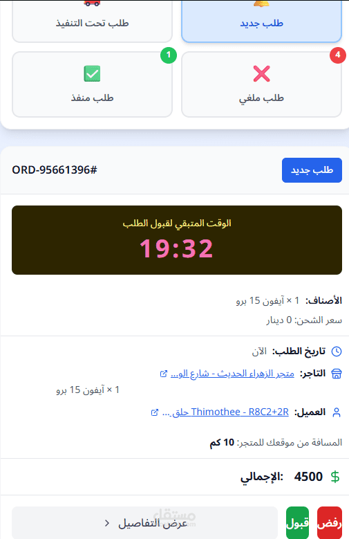 للسائقين: لوحة تحكم متطورة، إشعارات فورية، تتبع الموقع، إدارة الطلبات