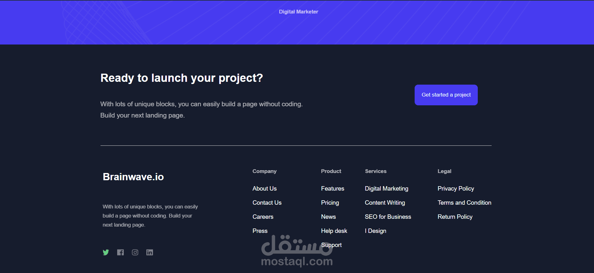 مشروع صفحة هبوط (Landing Page) لوكالة تم بناؤها باستخدام HTML و CSS اعتماداً على تصميم من Figma.