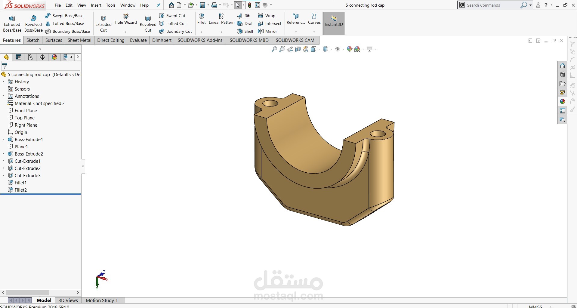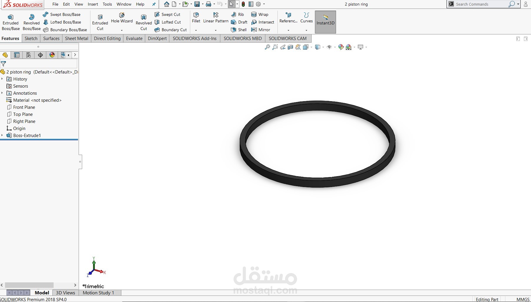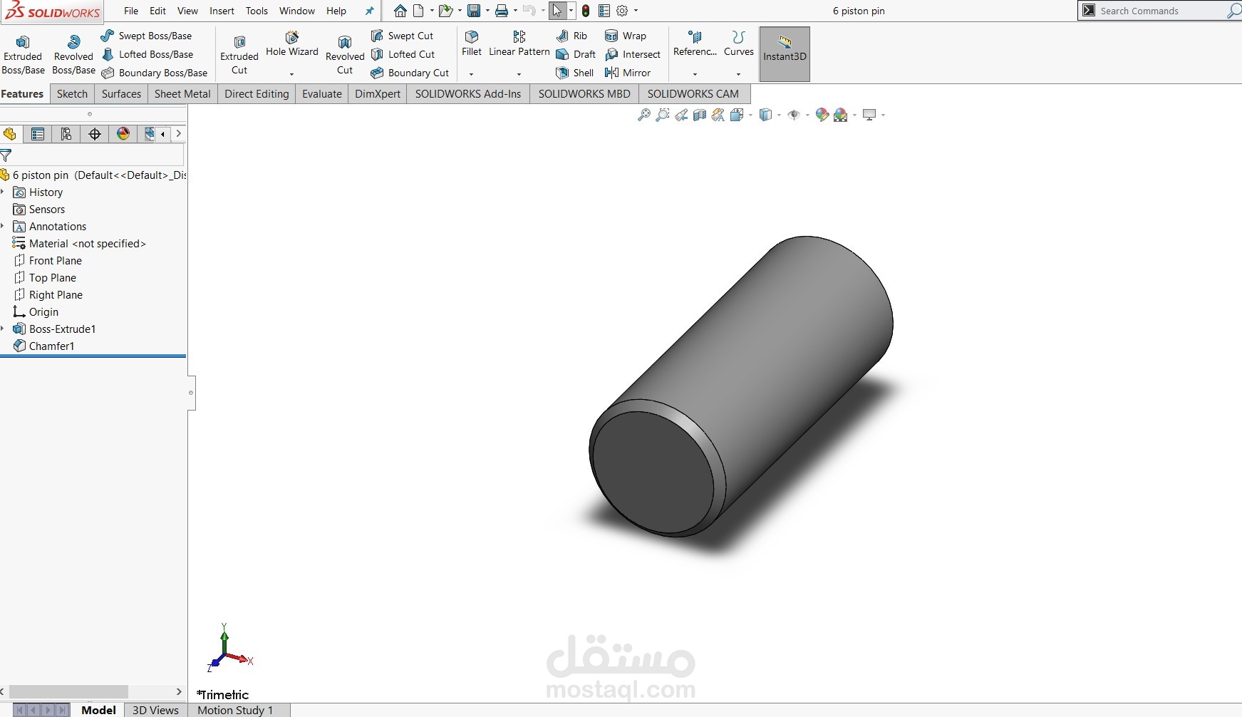 This SolidWorks model represents a four-cylinder inline engine crankshaft–piston assembly.