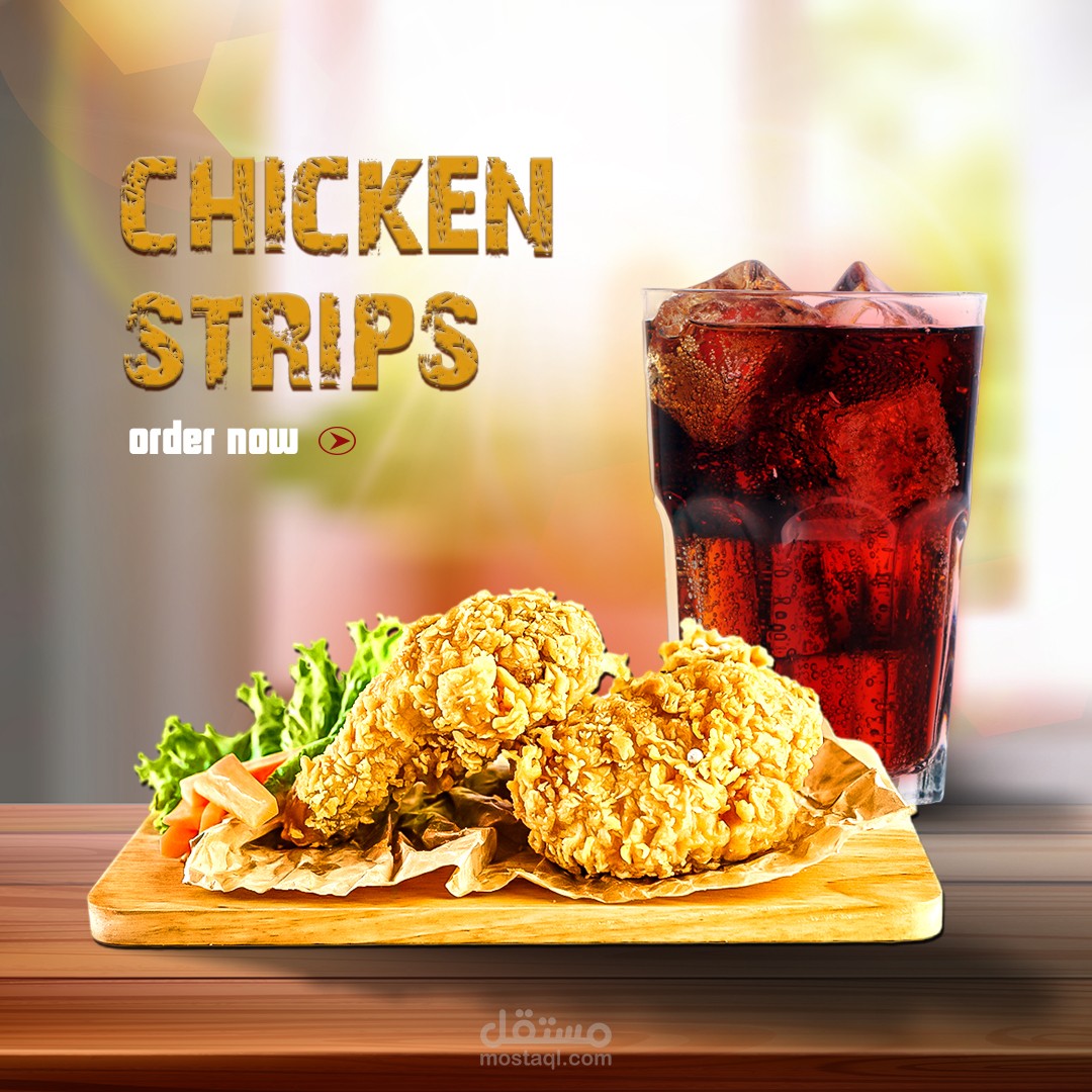 تصميم إعلان سوشيال ميديا لمطعم يقدم وجبات سريعه تم استخدام الفوتشوب لاضافه العناصر الغذائية والتعديل بها لإظهارها بأفضل شكل ممكن
