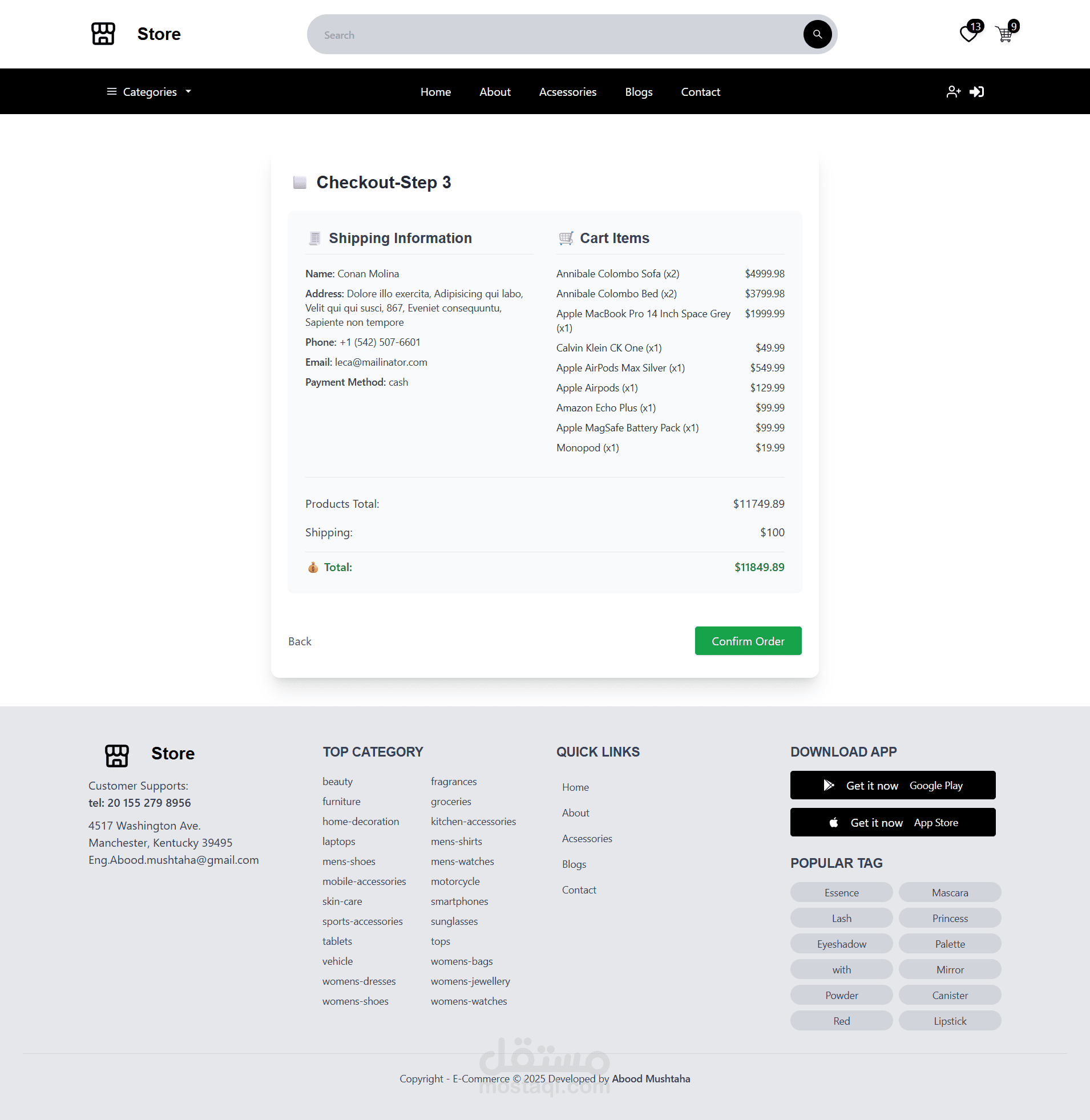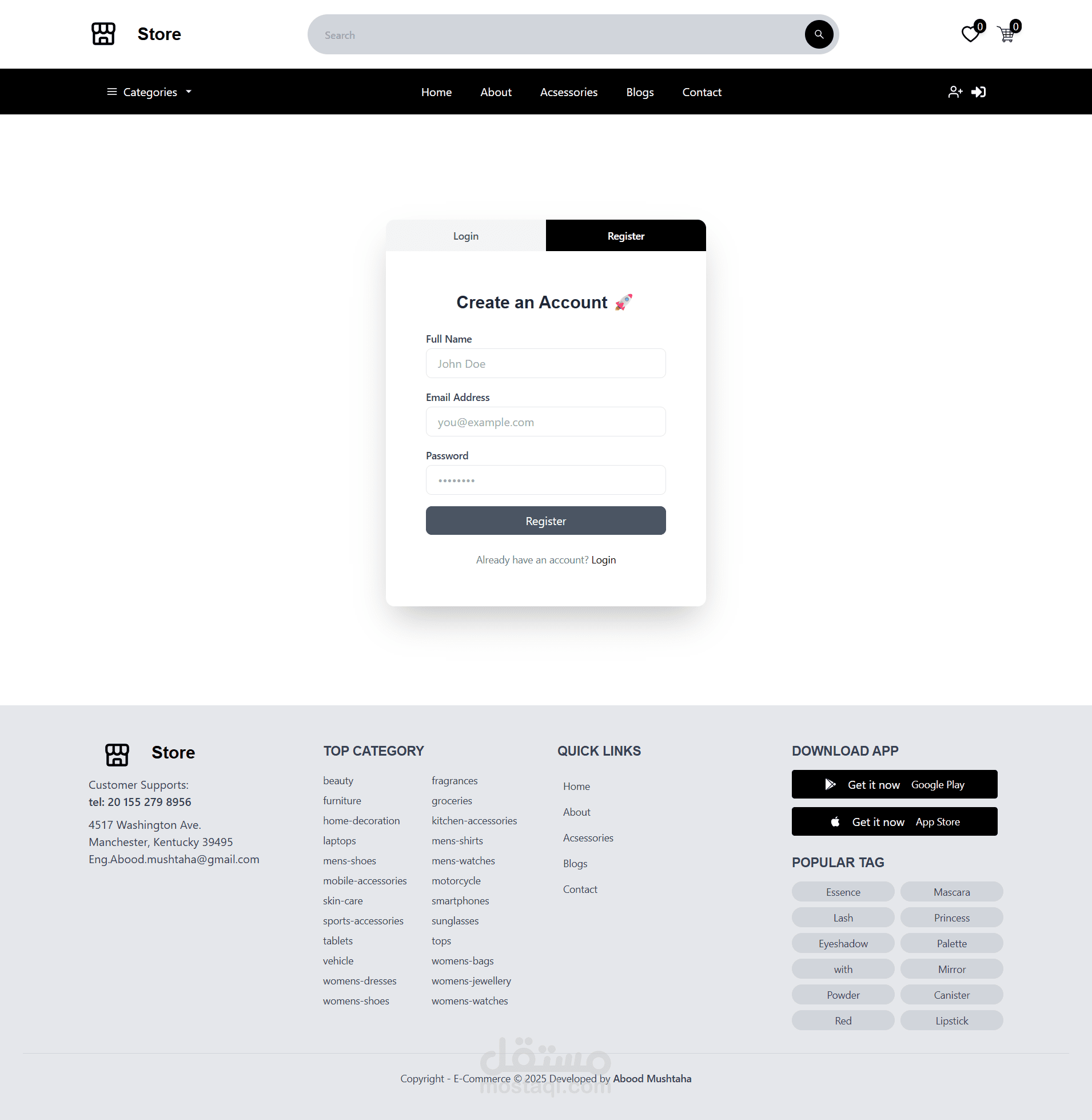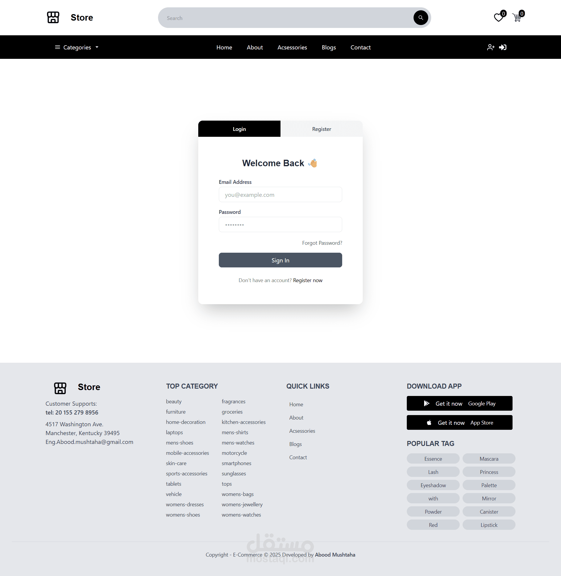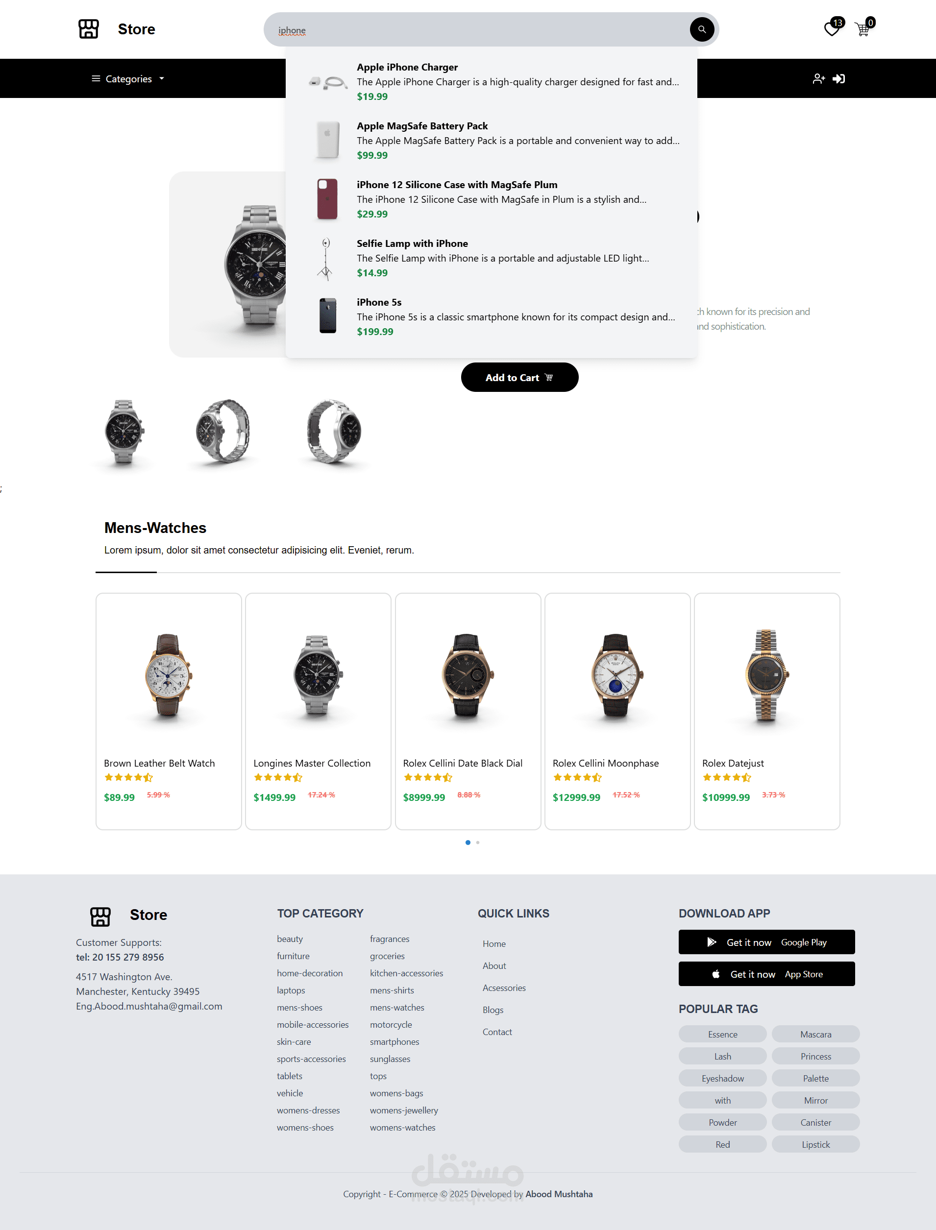 قمت بتطوير موقع E-Commerce احترافي باستخدام Tailwind, React FrameWork، يتميز بالسرعة، الأمان، وسهولة الاستخدام على جميع الأجهزة (موبايل – تابلت – كمبيوتر).