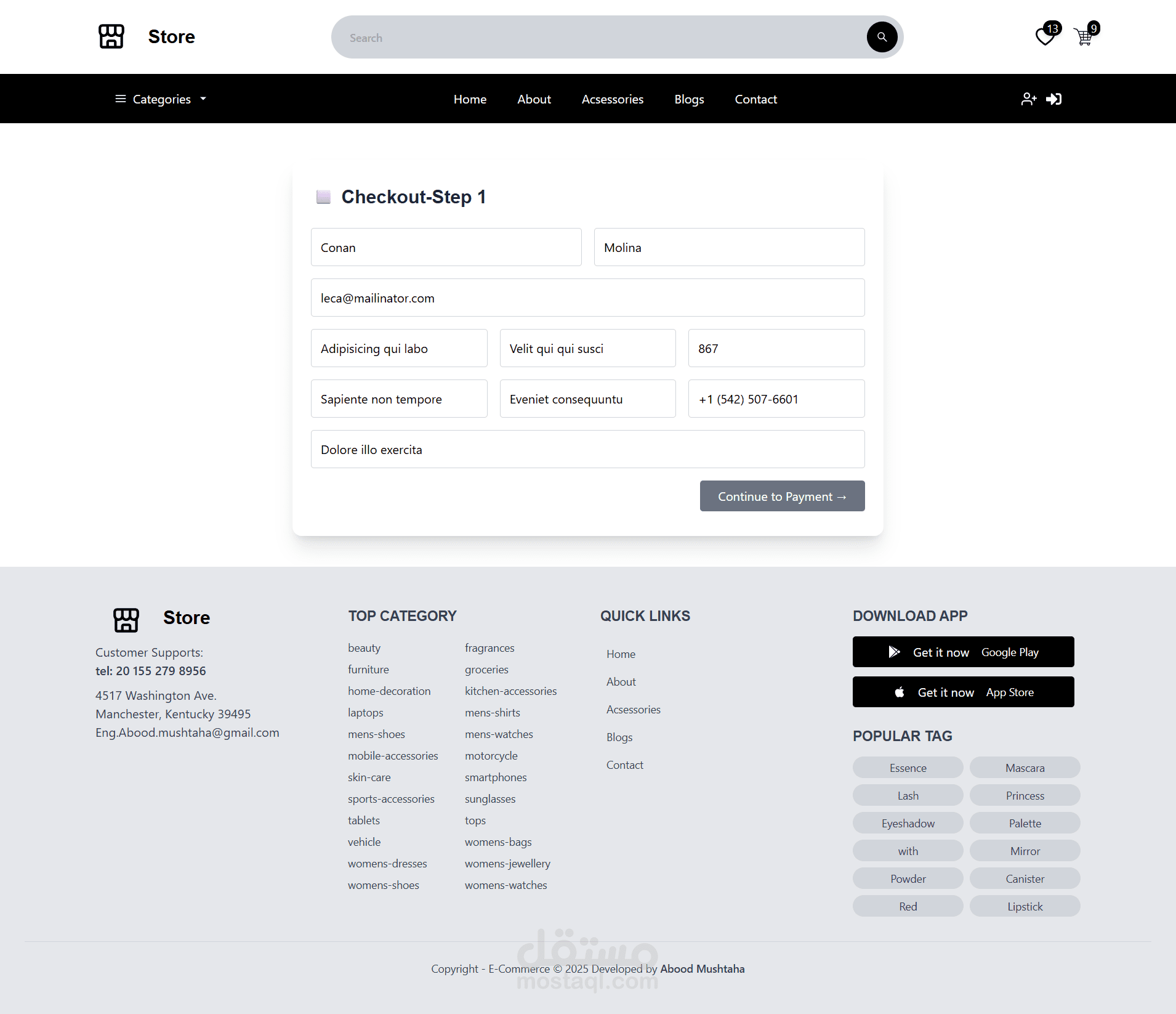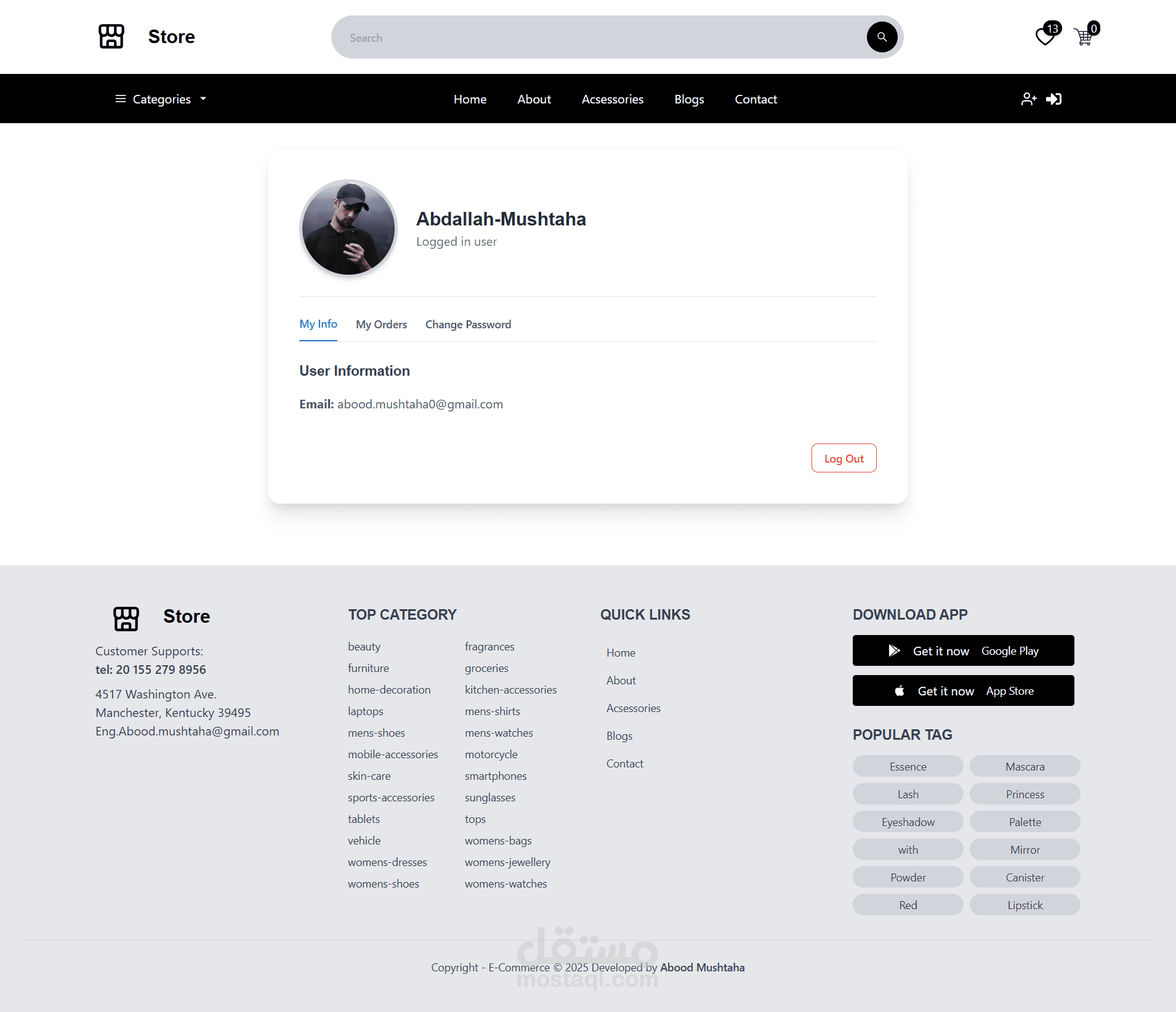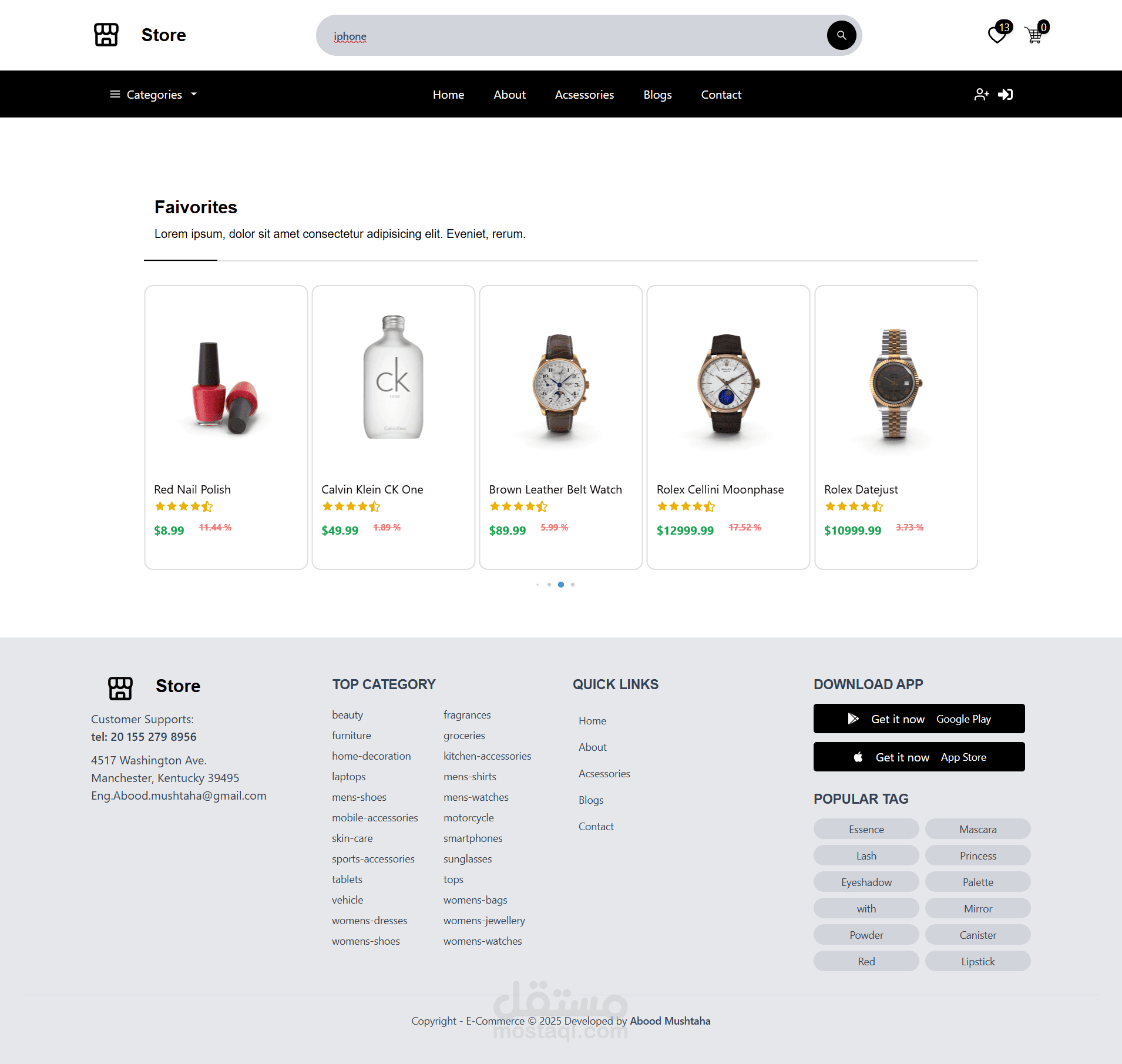 قمت بتطوير موقع E-Commerce احترافي باستخدام Tailwind, React FrameWork، يتميز بالسرعة، الأمان، وسهولة الاستخدام على جميع الأجهزة (موبايل – تابلت – كمبيوتر).