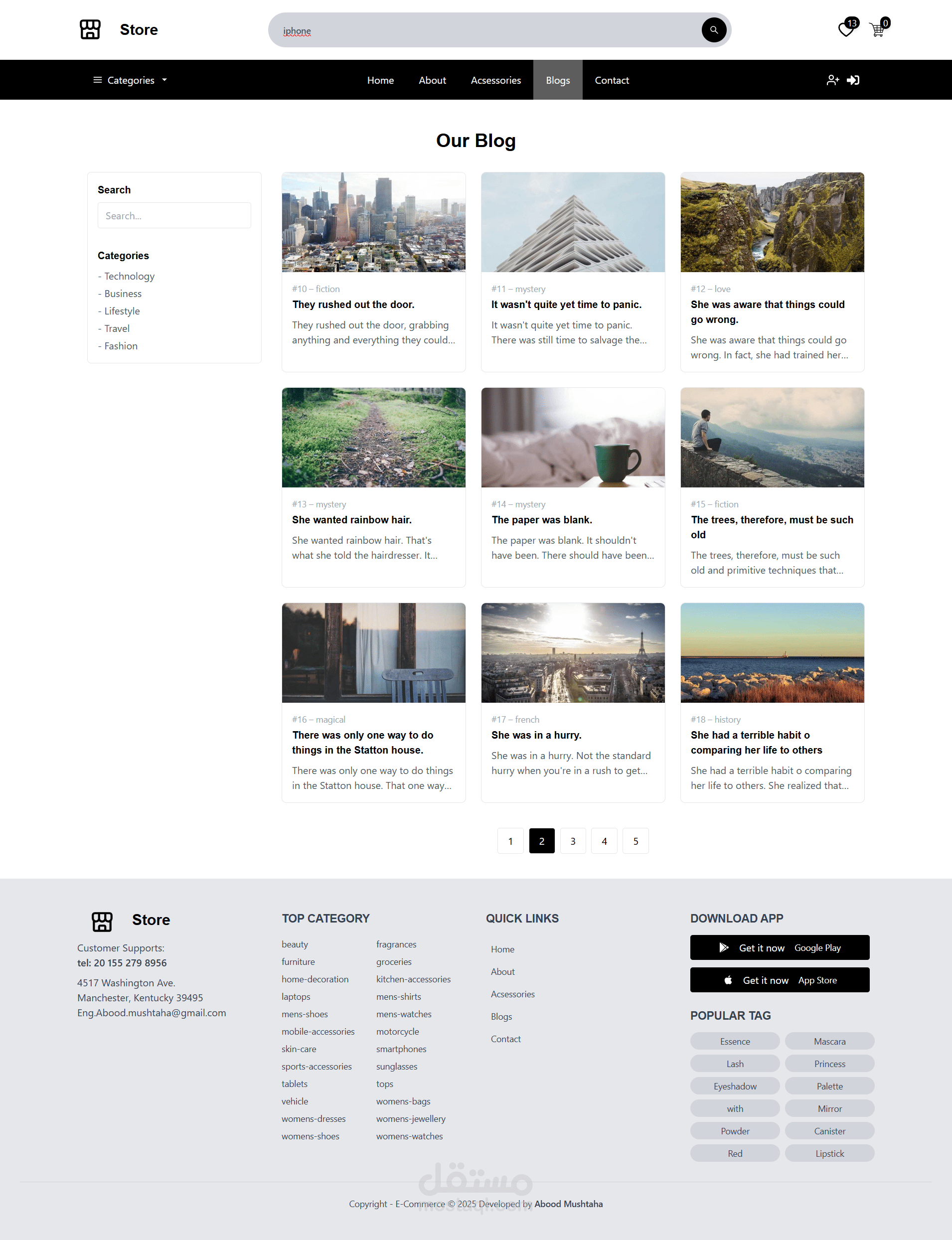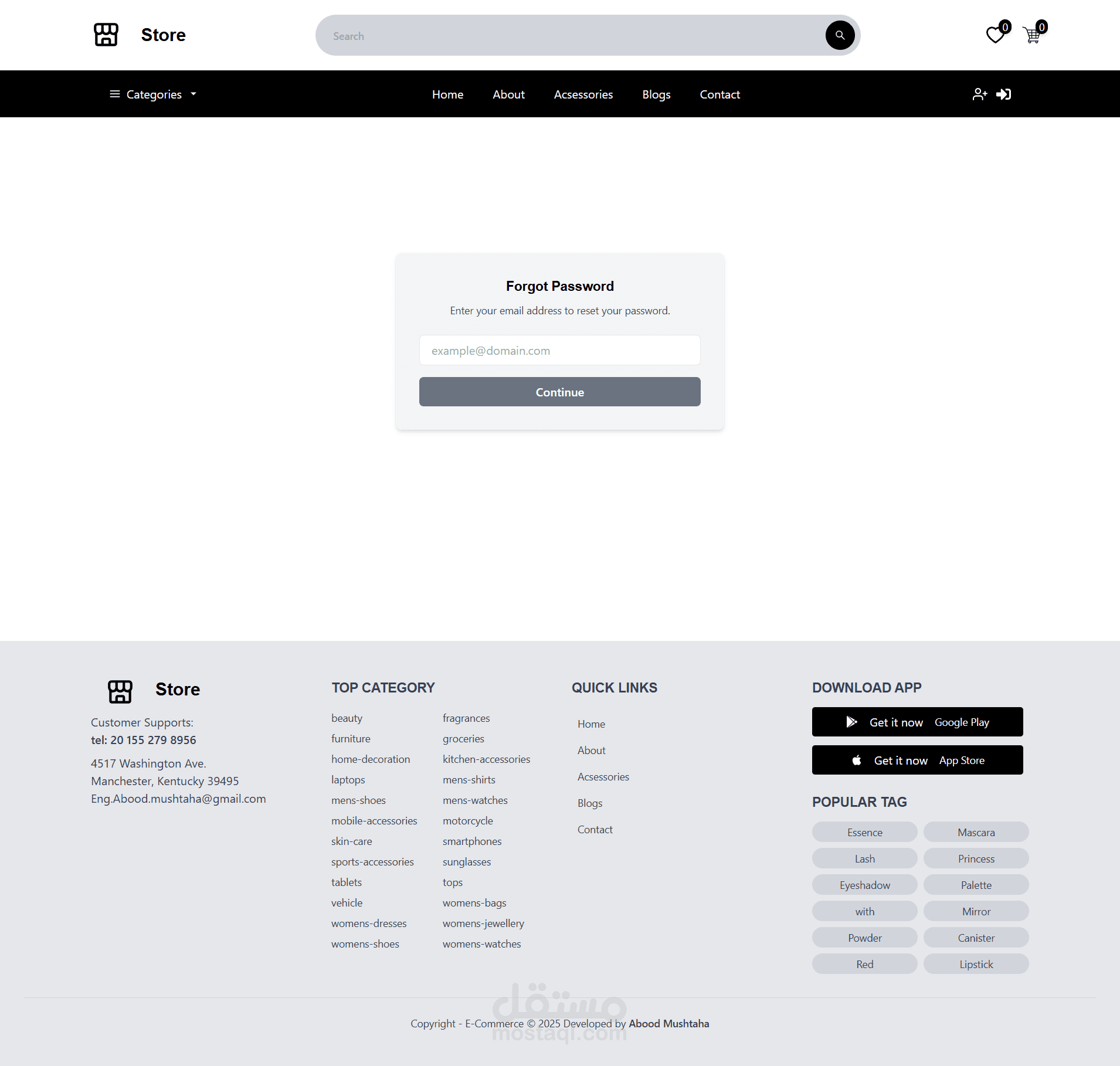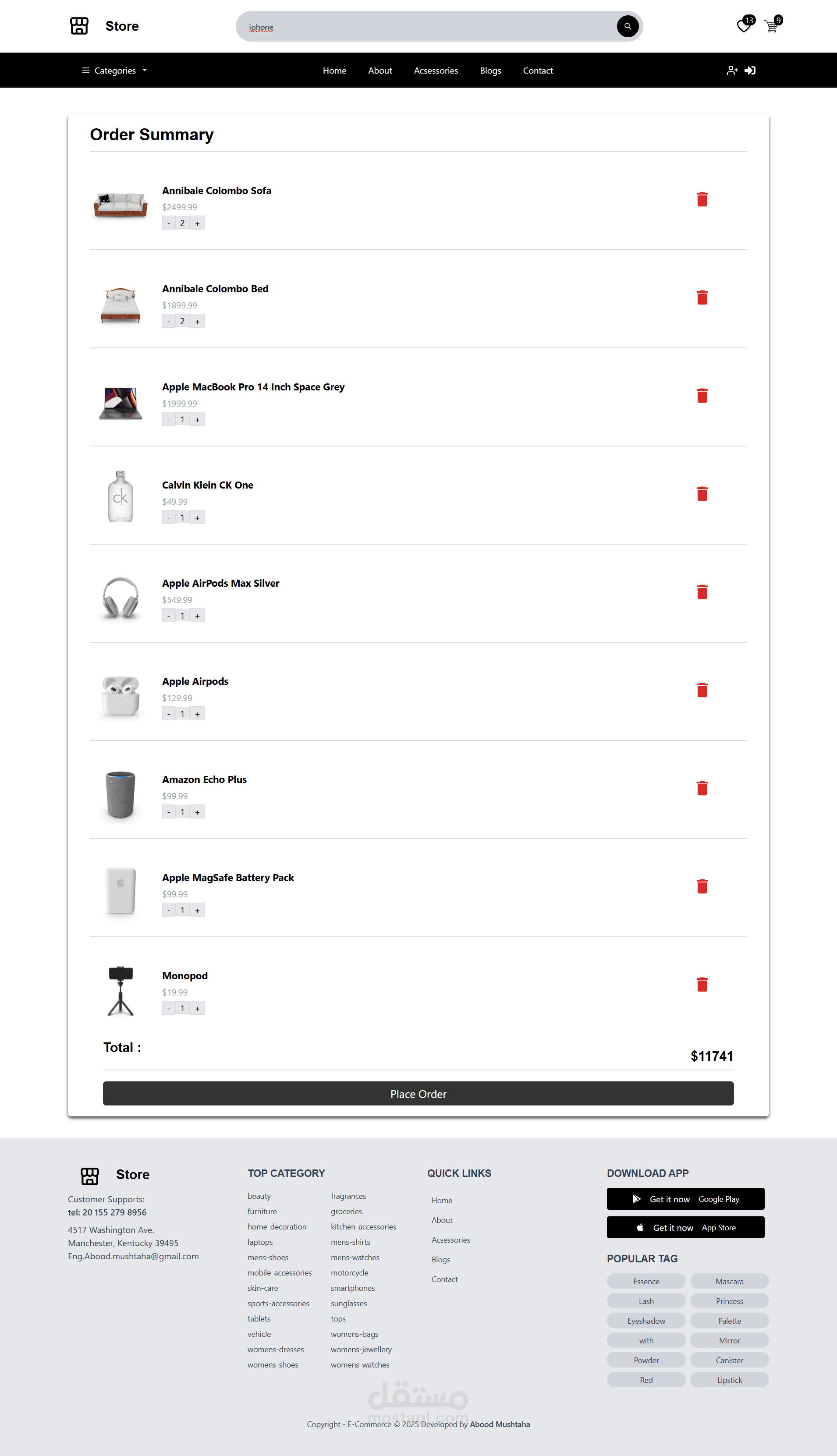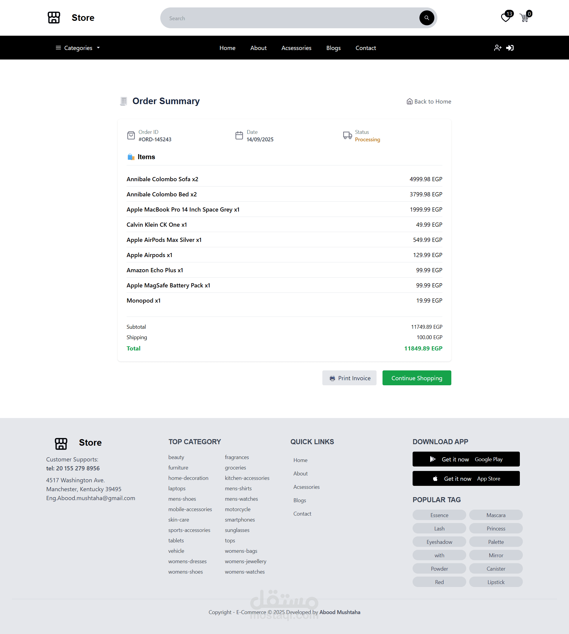 قمت بتطوير موقع E-Commerce احترافي باستخدام Tailwind, React FrameWork، يتميز بالسرعة، الأمان، وسهولة الاستخدام على جميع الأجهزة (موبايل – تابلت – كمبيوتر).