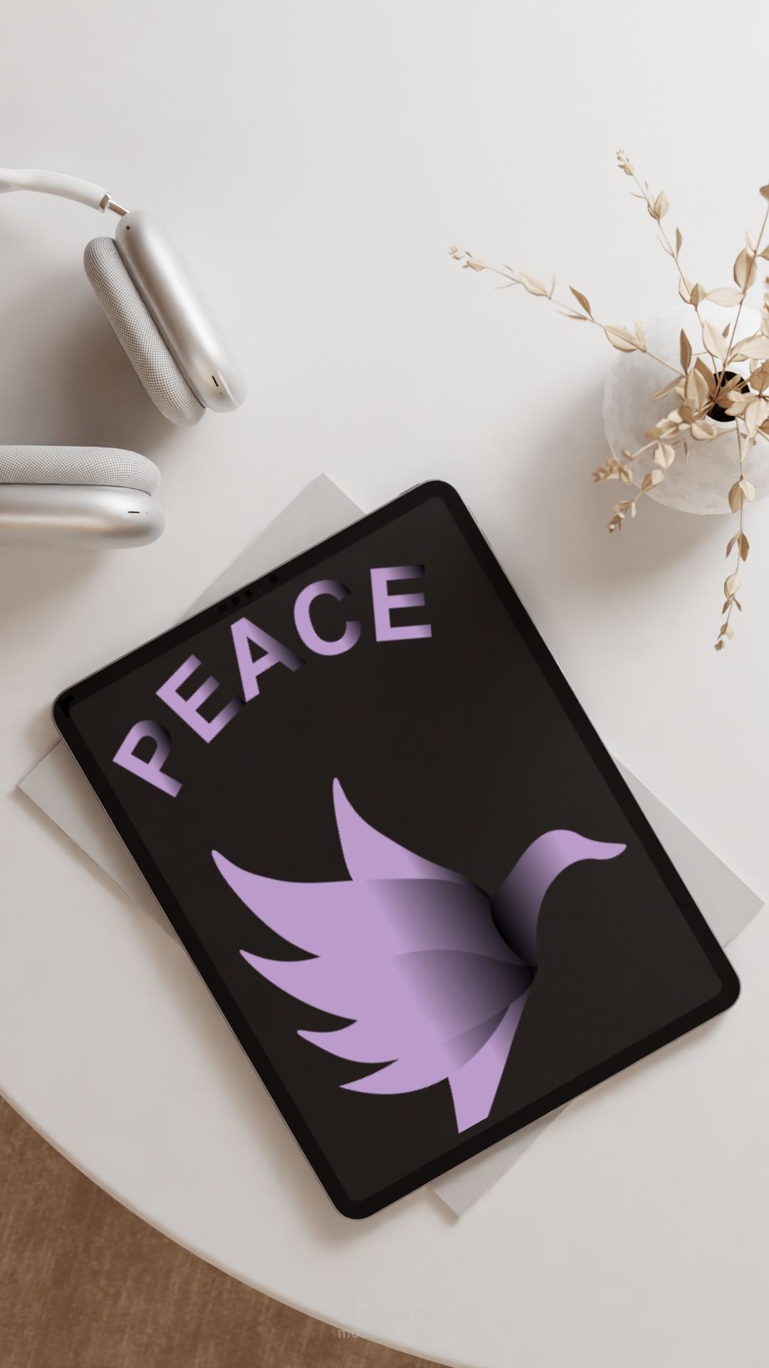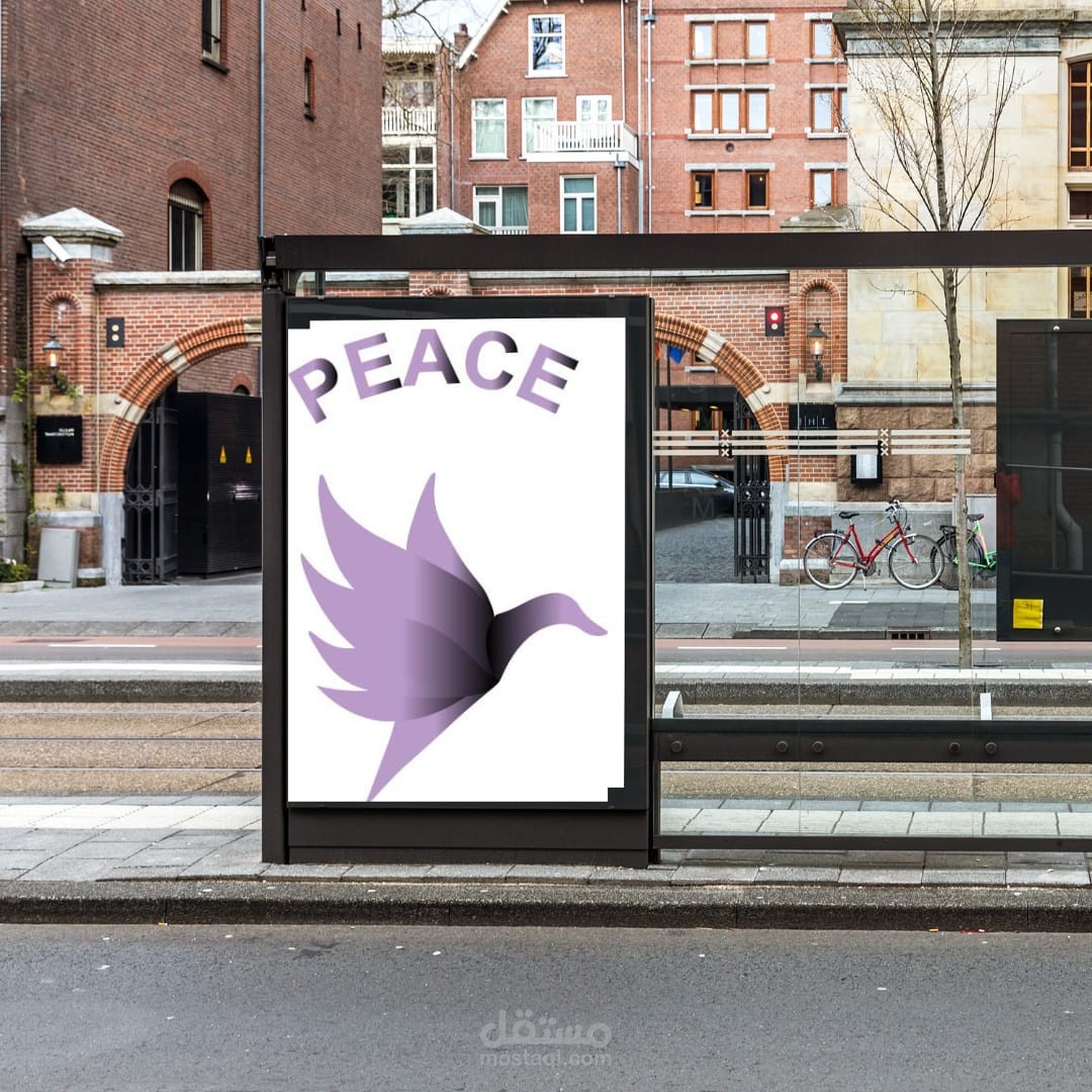 تصميم شعار (لوجو) بسيط باستخدام Abode Illustrator يدل على السلام و عرضه على موكاب جذاب باستخدام Canva.