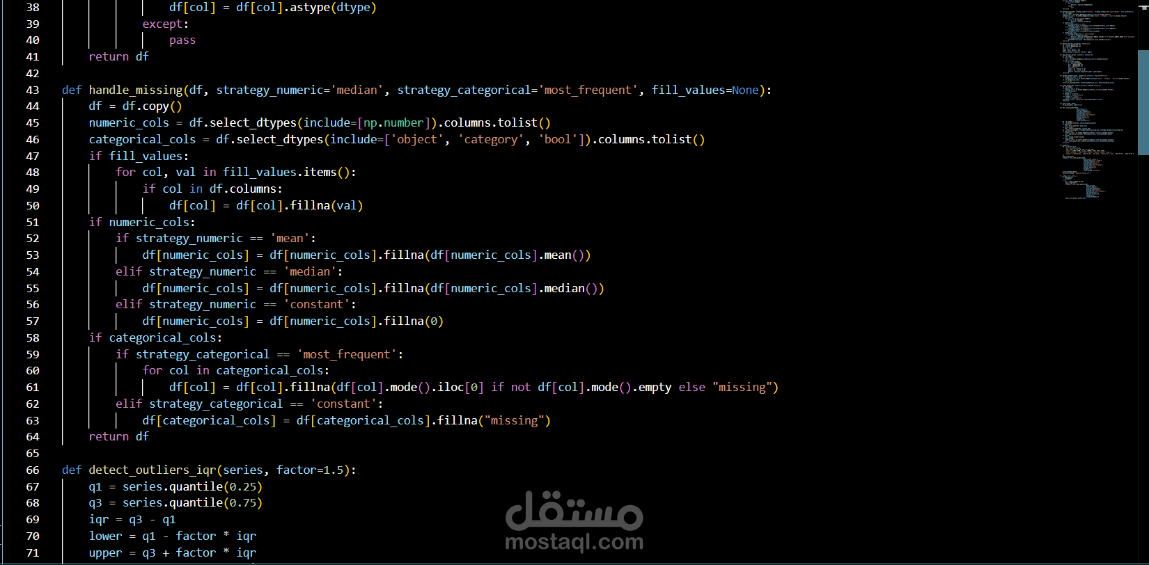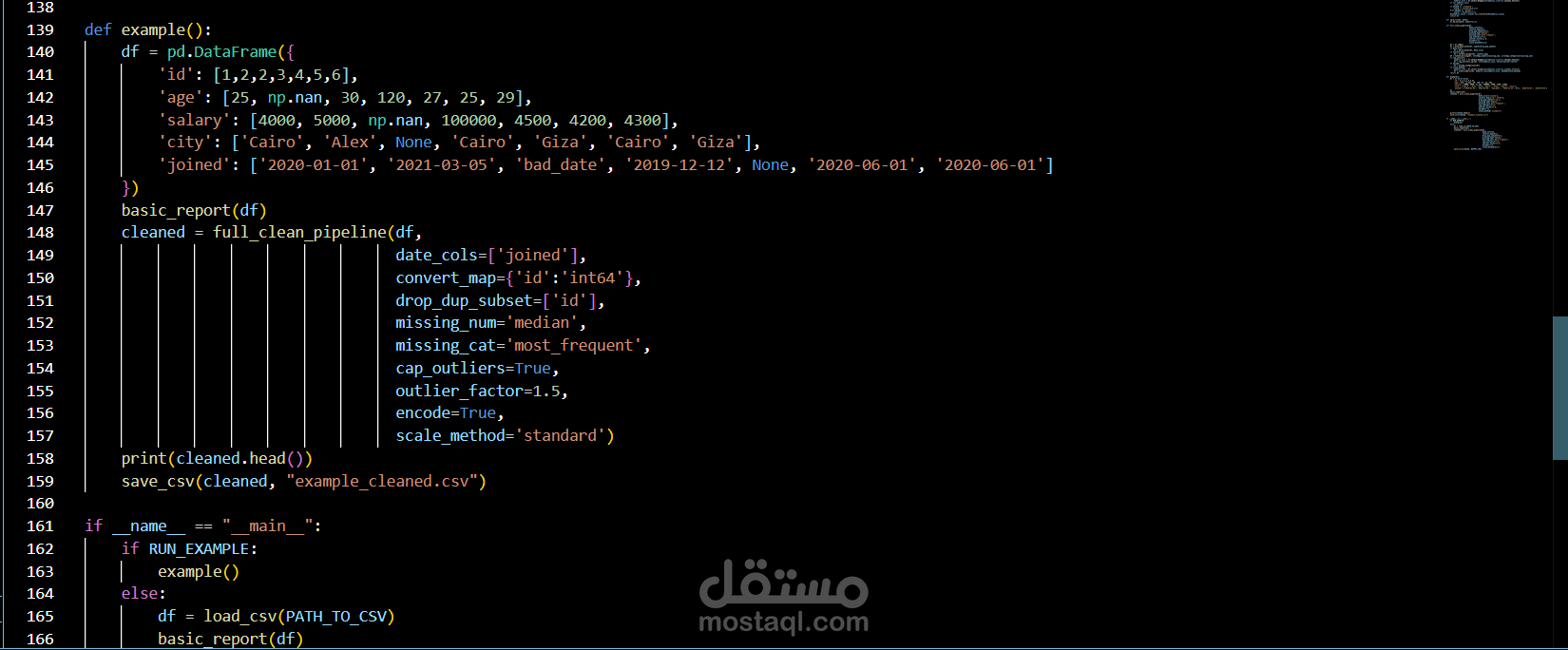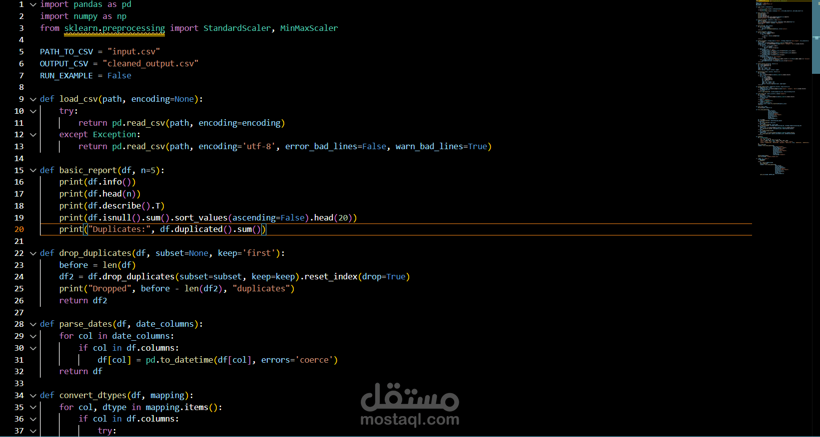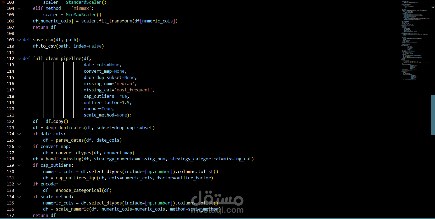 مشروع يهدف إلى تنظيف ومعالجة البيانات الخام باستخدام لغة Python، وتجهيزها للاستخدام في عمليات التحليل أو النمذجة. الكود يقوم بتنفيذ خطوات متكاملة تشمل: