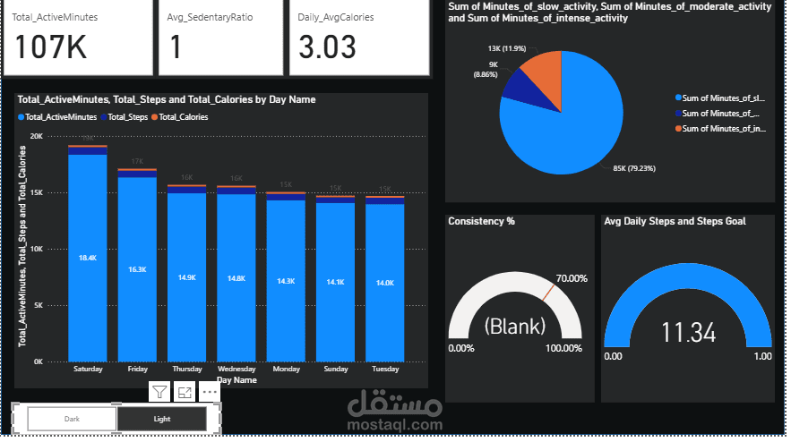 إظهار مؤشرات نمط الحياة مثل: معدل النشاط، ساعات النوم، عدد الأيام النشطة.