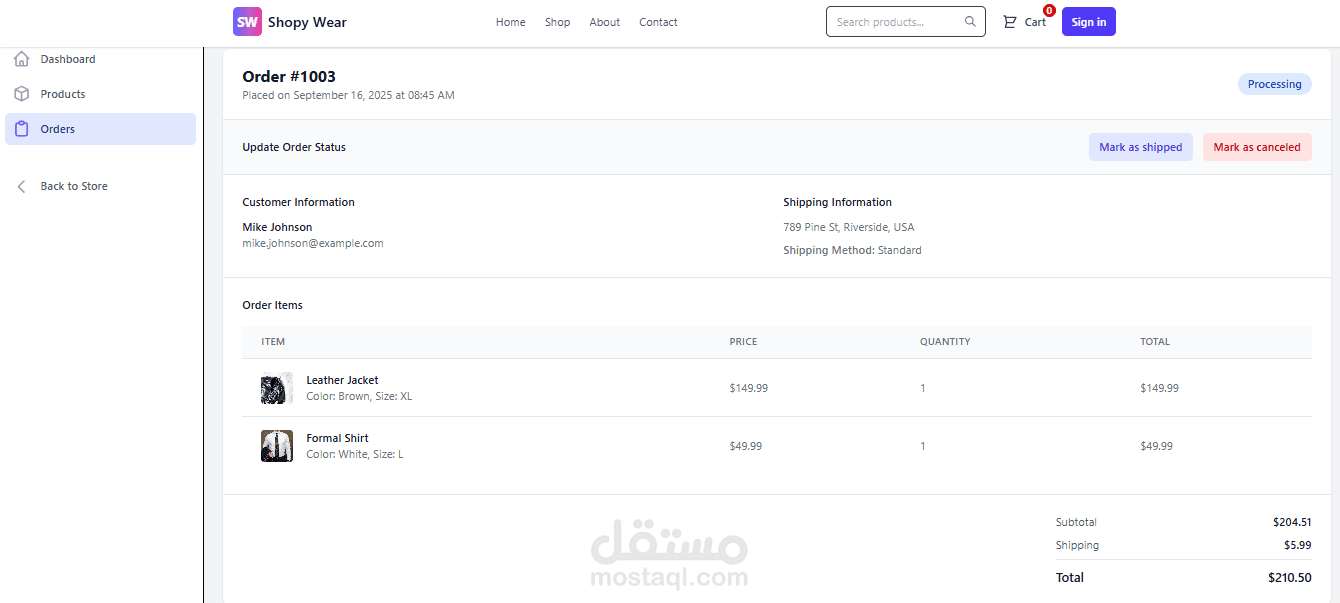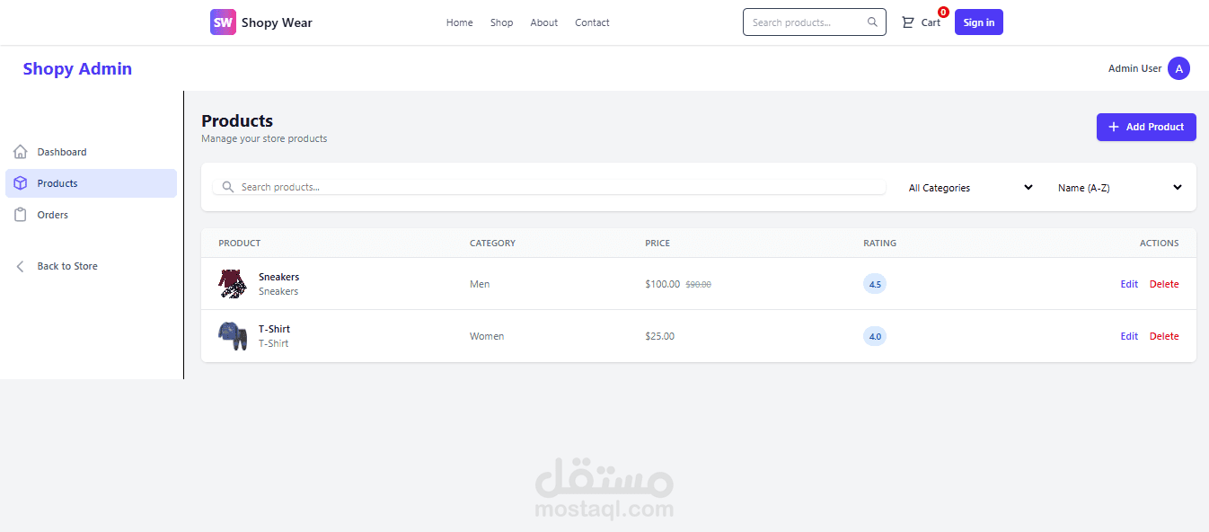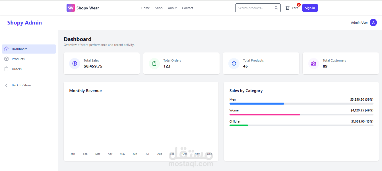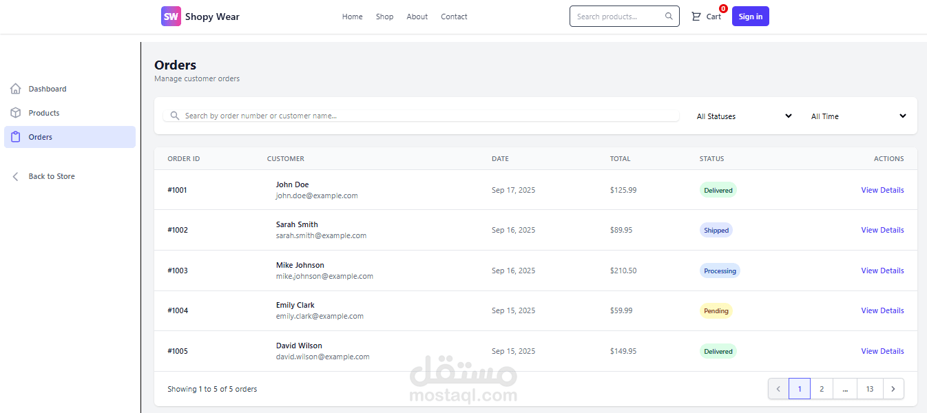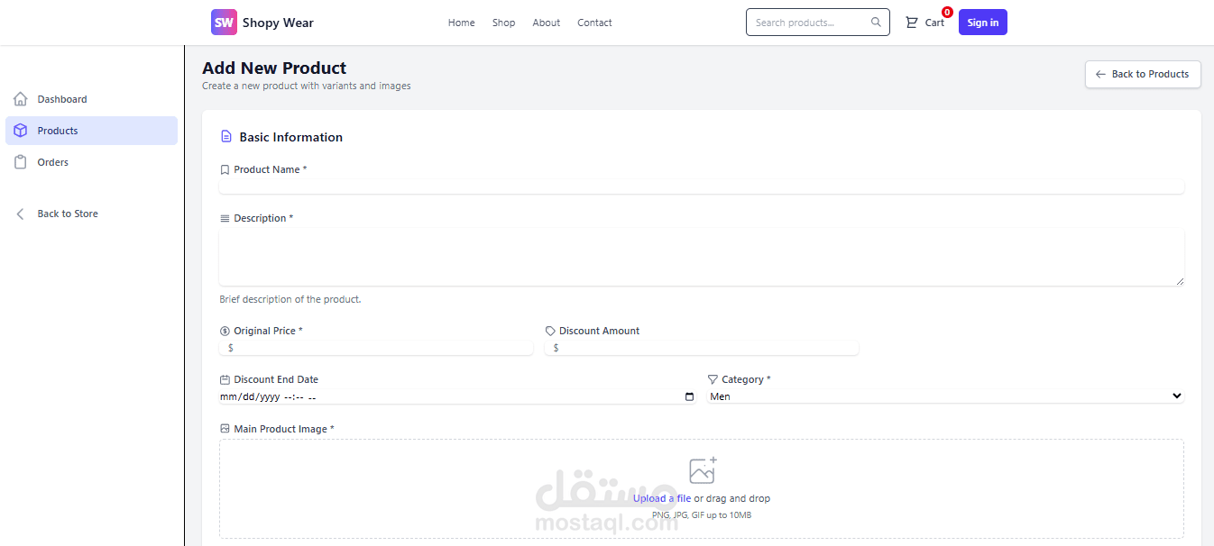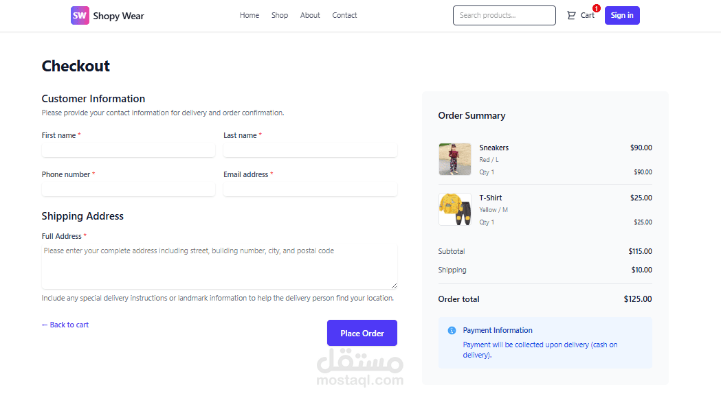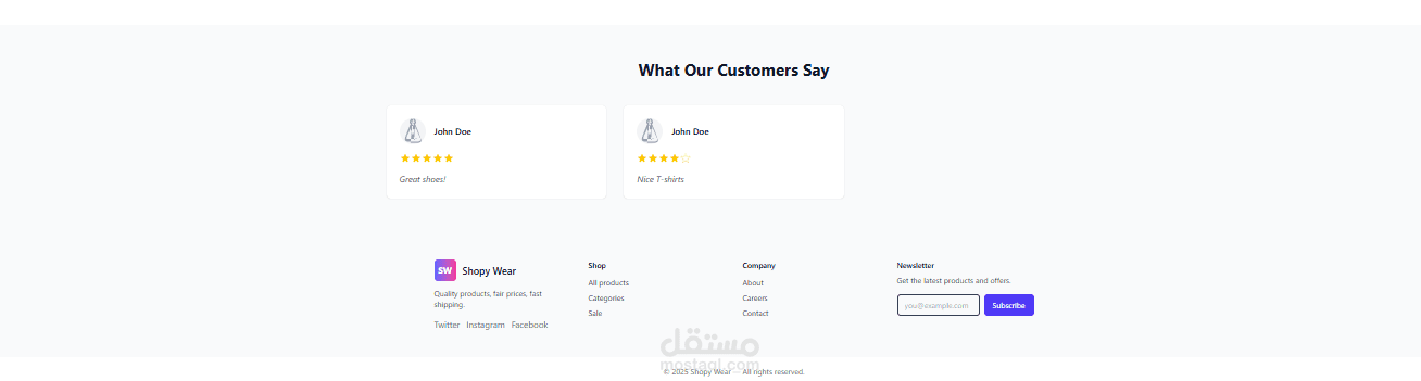 ShopyWear، وهو تطبيق ويب متكامل للتجارة الإلكترونية خاص بالملابس. تُمكّن المنصة العملاء من: