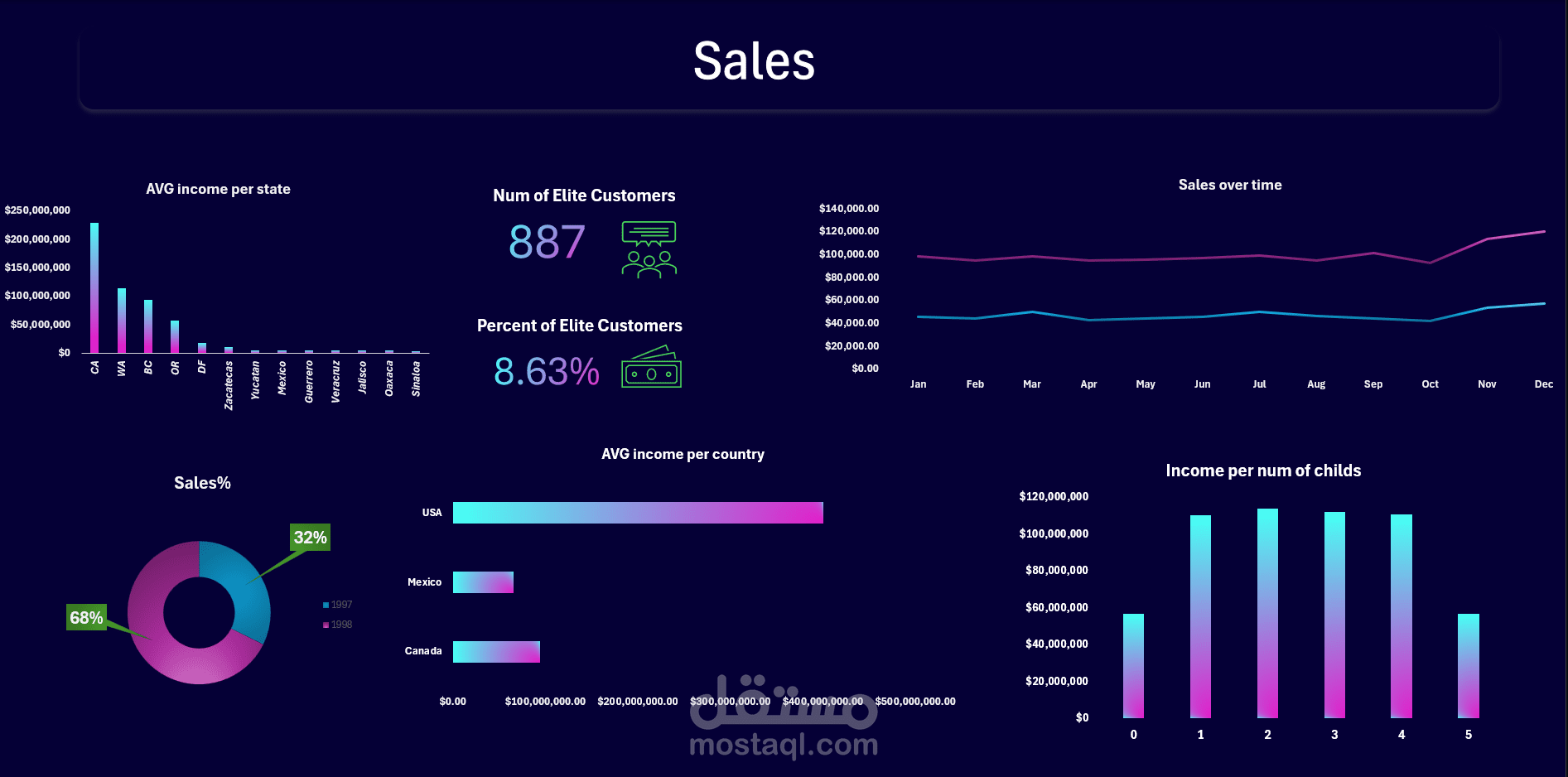 تطوير 3 لوحات معلومات تفاعلية (Dashboards) لعرض سلوك العملاء، اتجاهات المنتجات، والأداء الإقليمي.